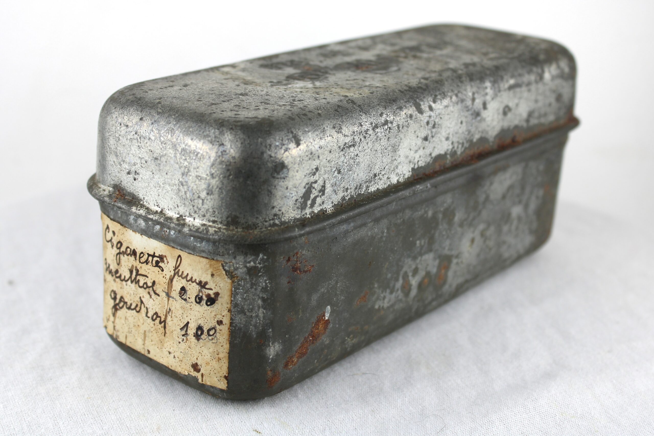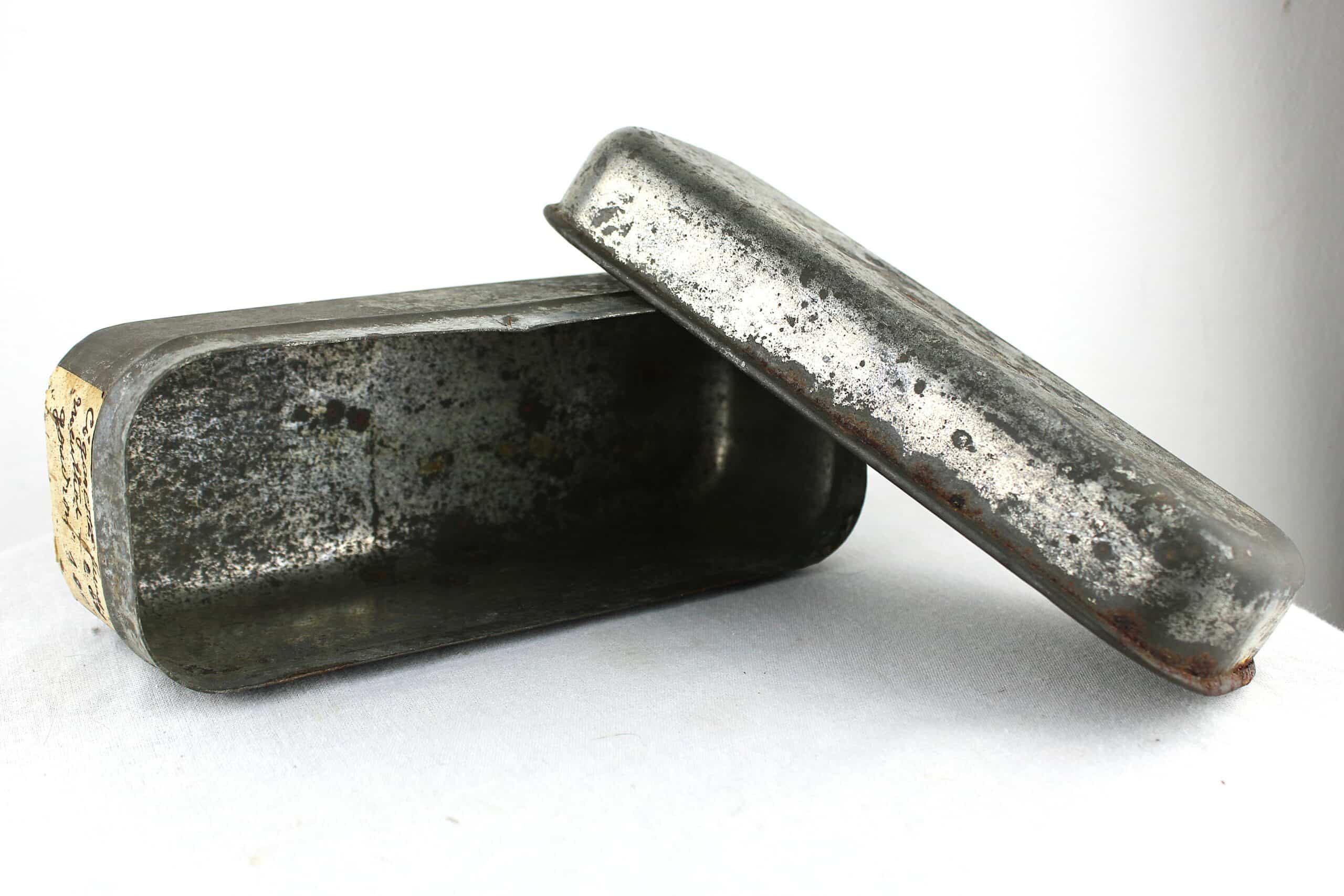 Boite en acier étamé pour 3 jours de ration US de la WW1, couvercle bien marqué “Model of 1916” et fabrication WG Co de 1918.