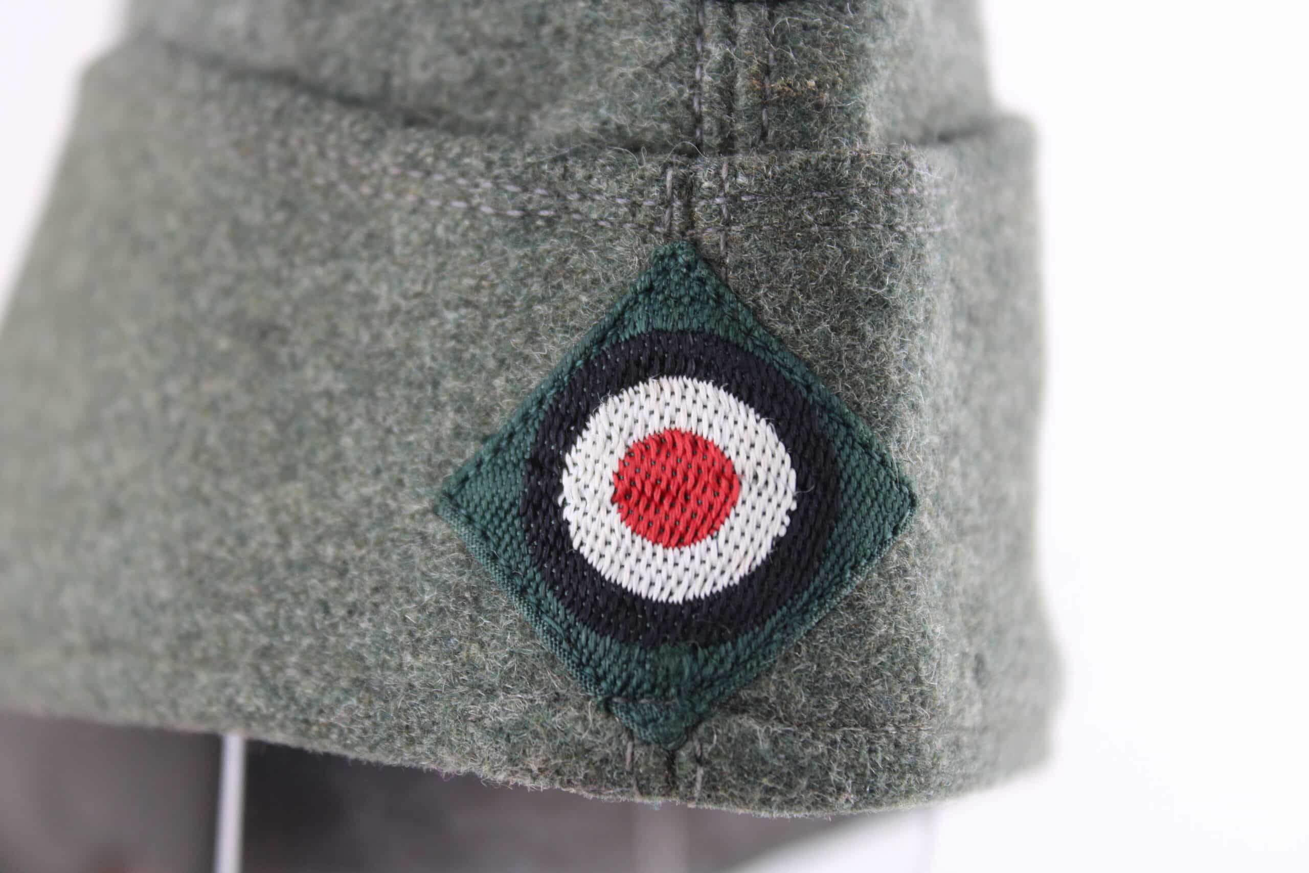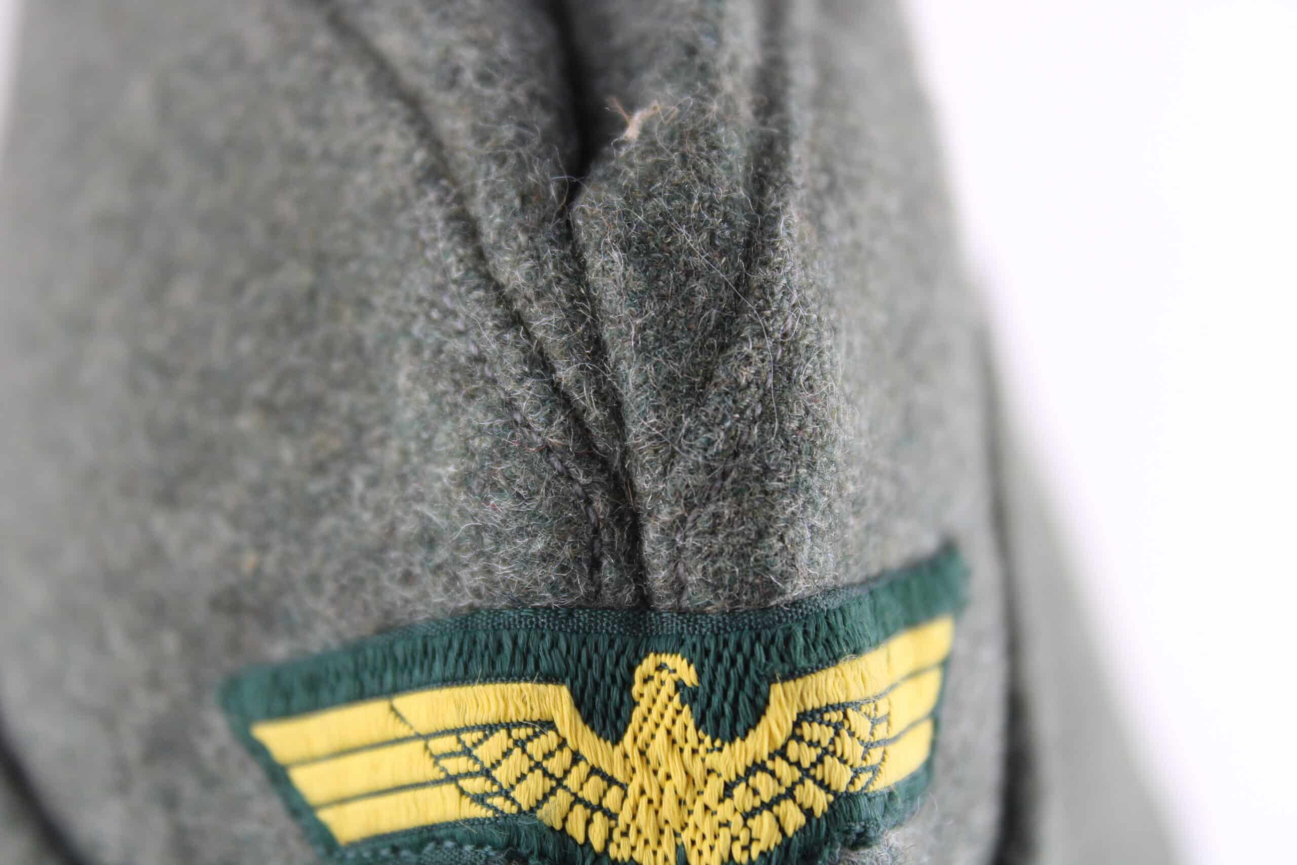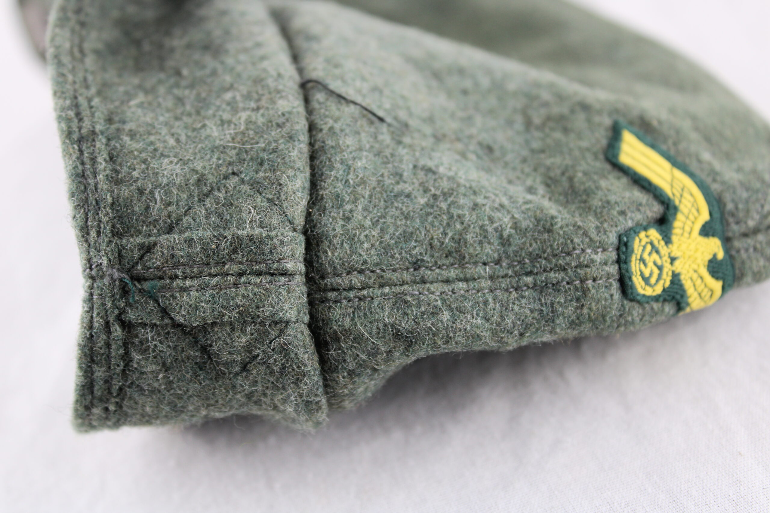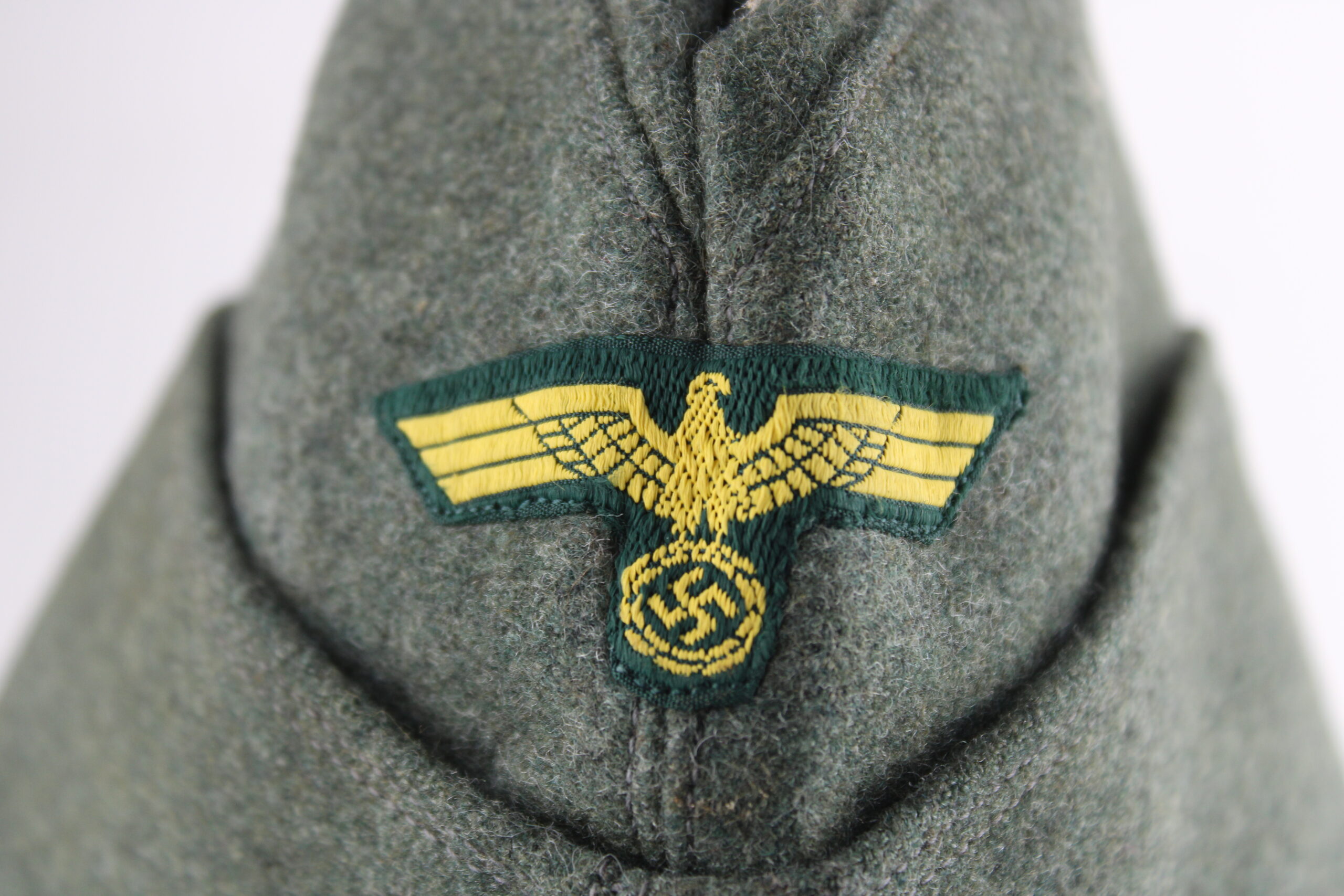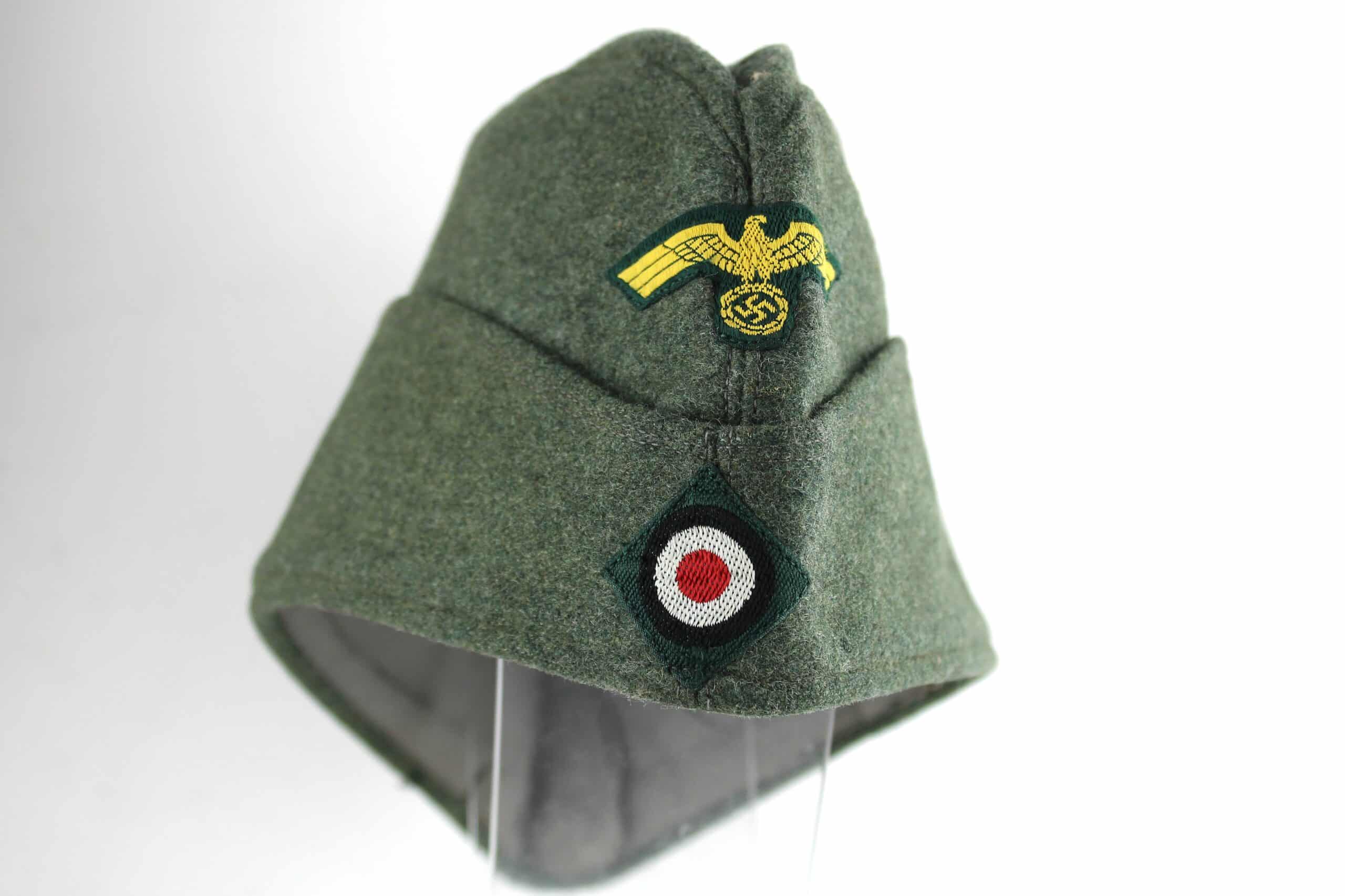 Superbe calot de la Kustenartillerie de la Kriegsmarine dans un état neuf de stock. Belle fabrication avec sa doublure grise, aigle et cocarde cousus machine d’origine, forme du calot typique des fabrications de la kriegsmarine. Pas de marquage fabricant.