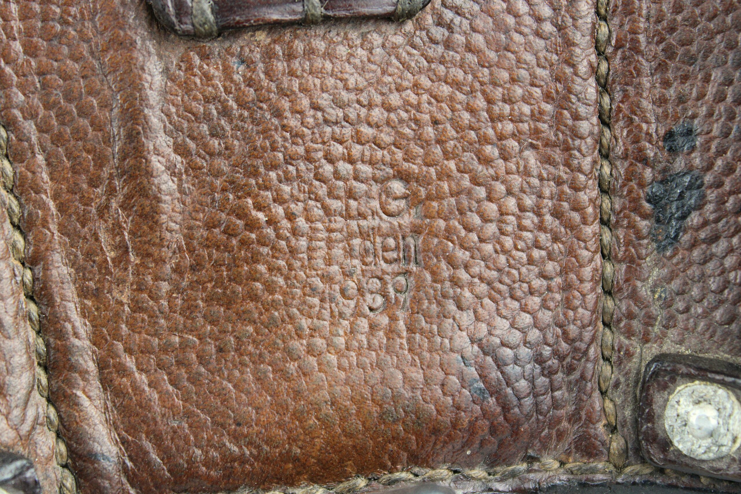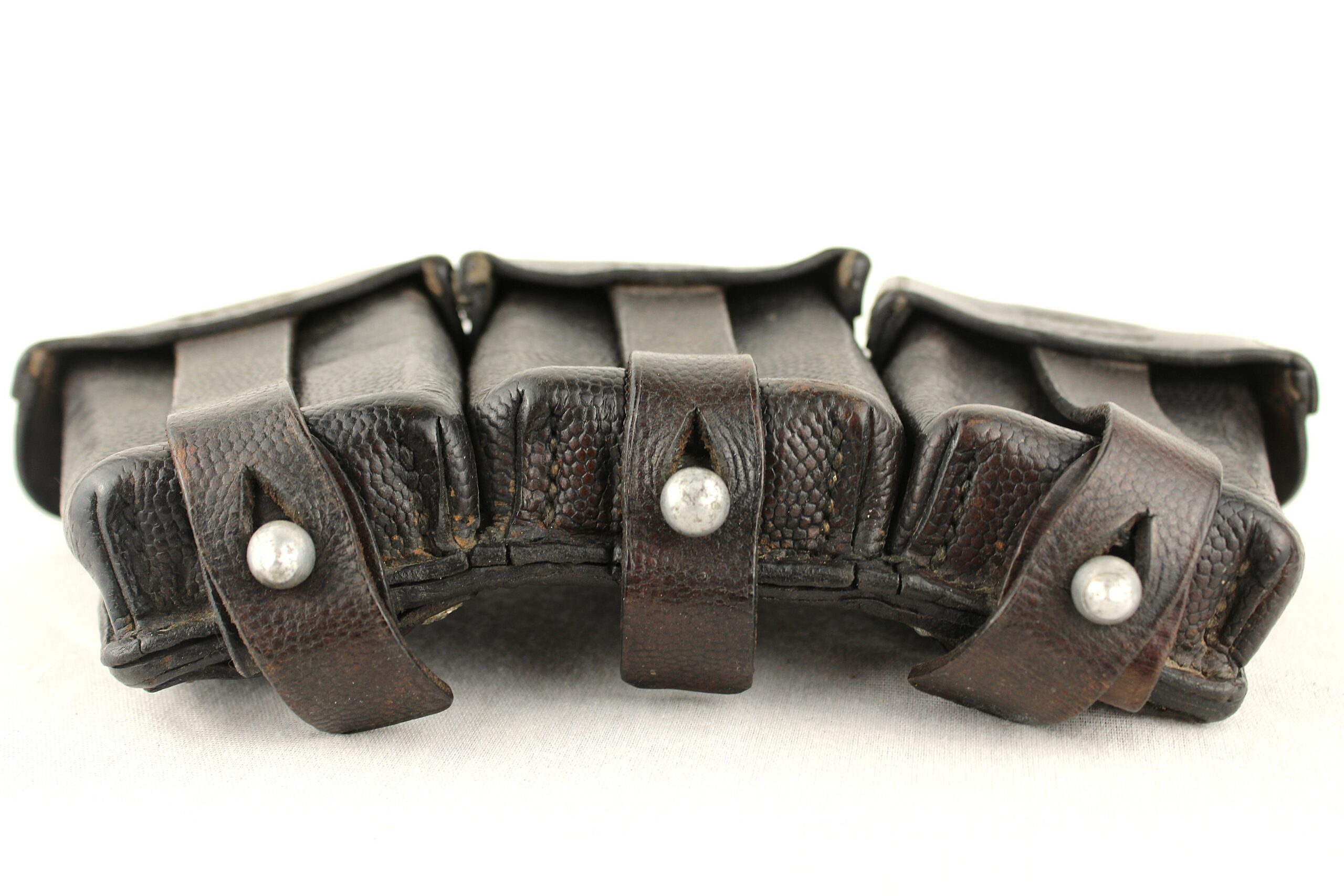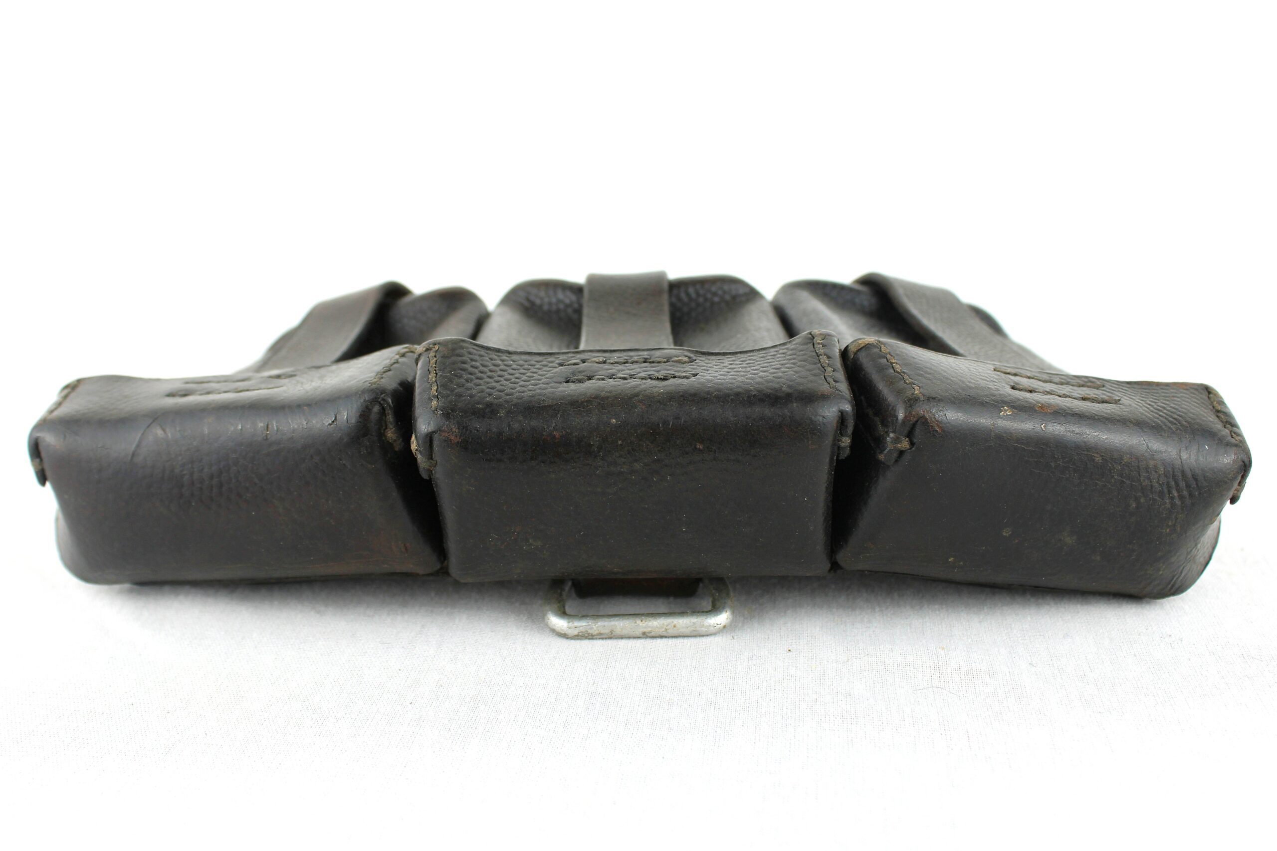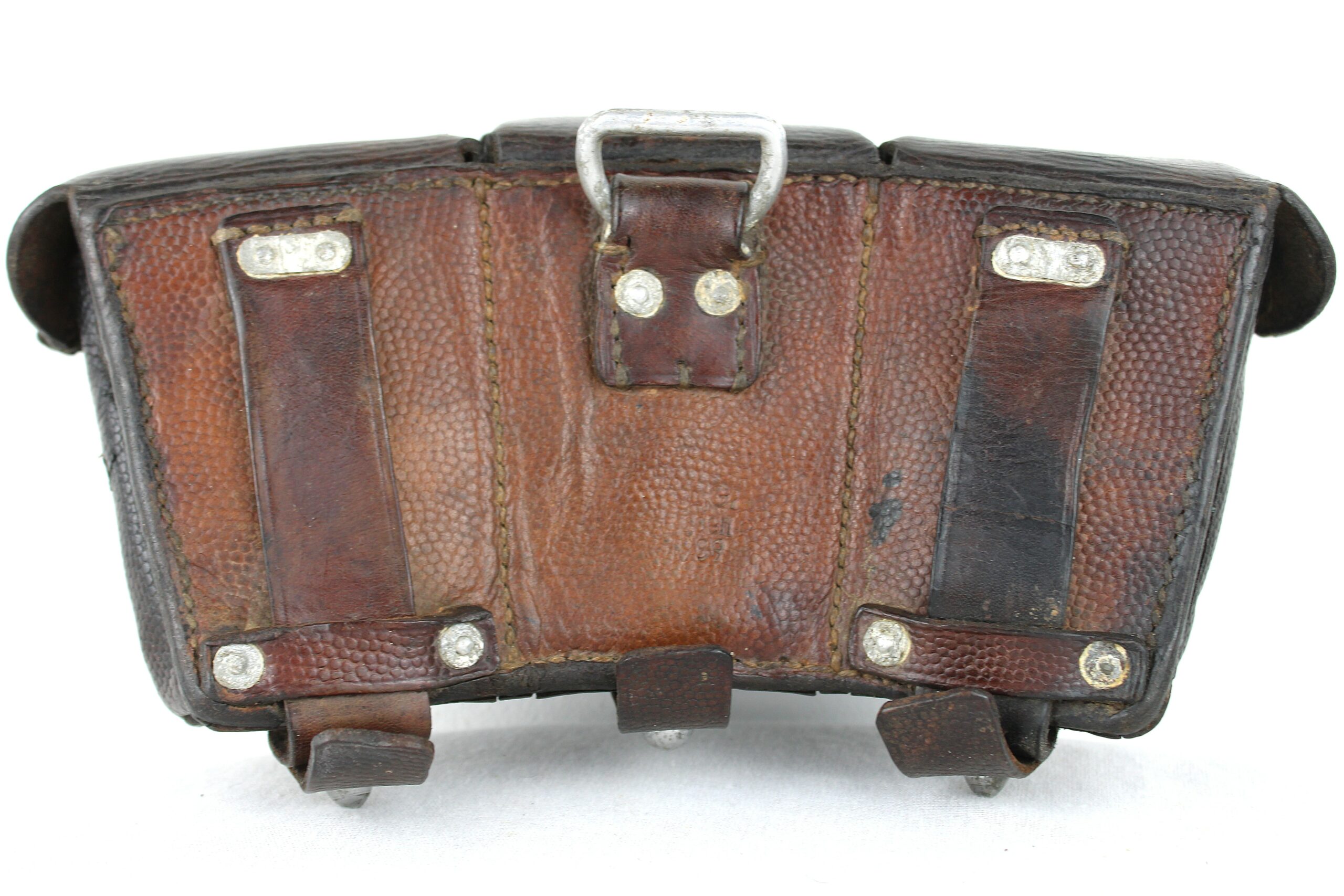 Cartouchière pour 98K allemande de fabrication début de guerre dans un bon état. Fabrication en cuir brun naturel puis teinté noir sur la face avant, les 3 compartiments sont en bon état avec leurs séparations, beau marquage fabricant « LLG » de 1939 . Celle-ci à été trouvée très récemment en Lozère.