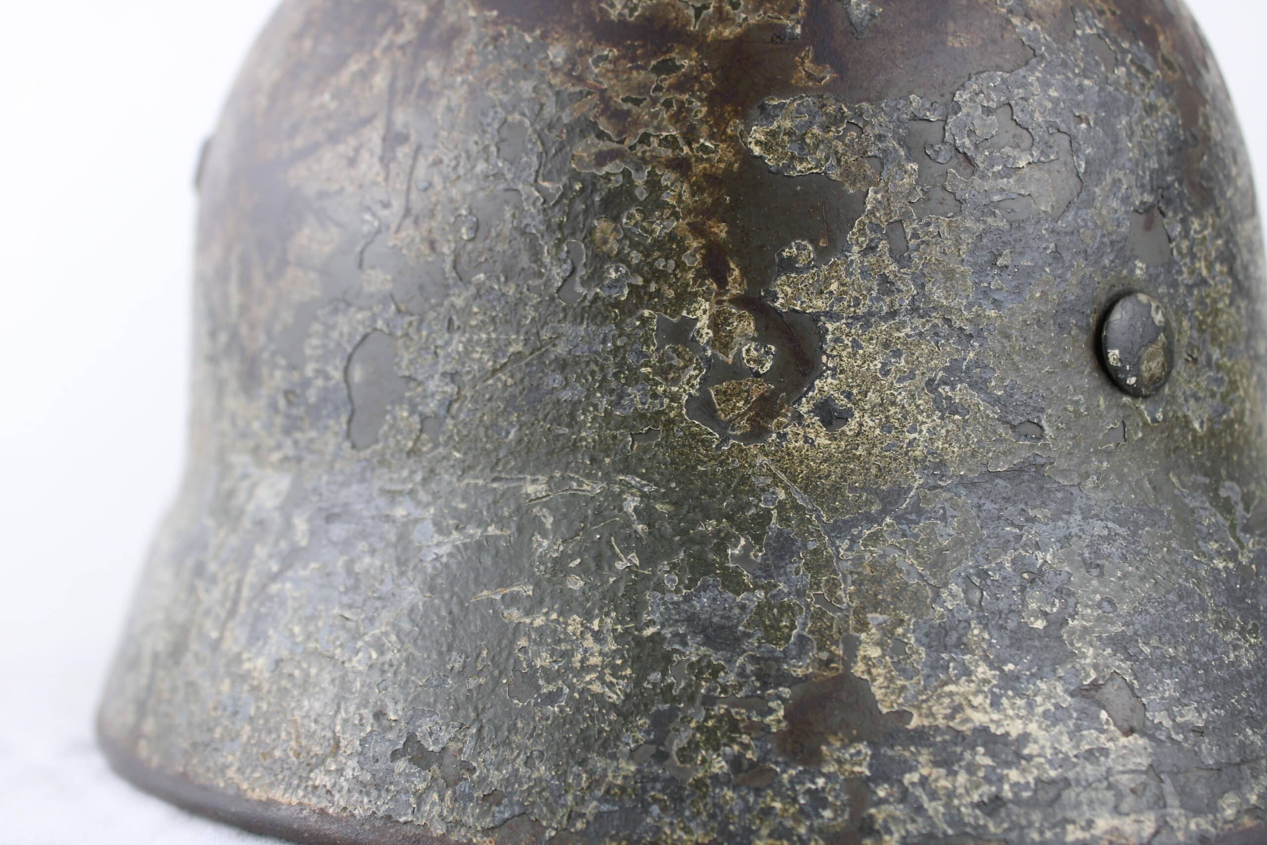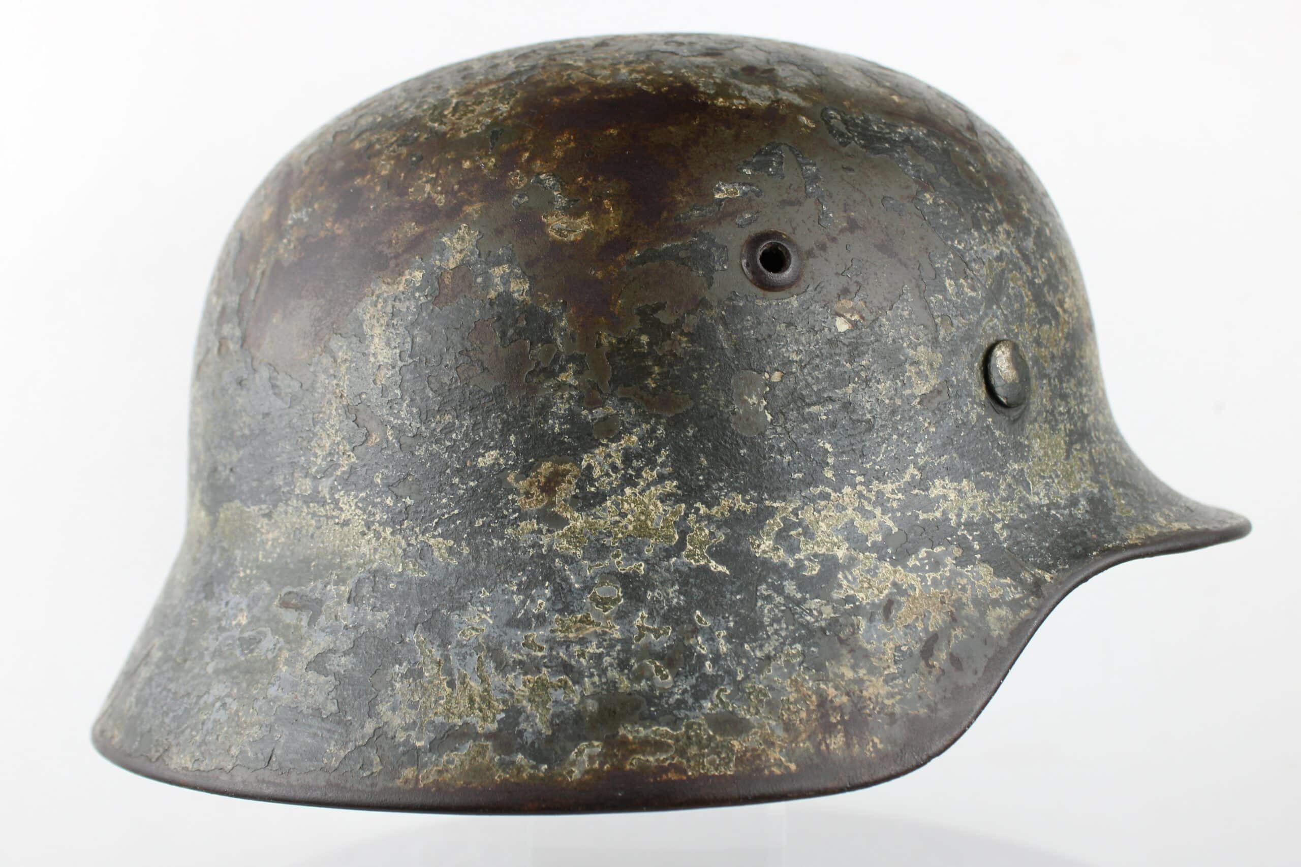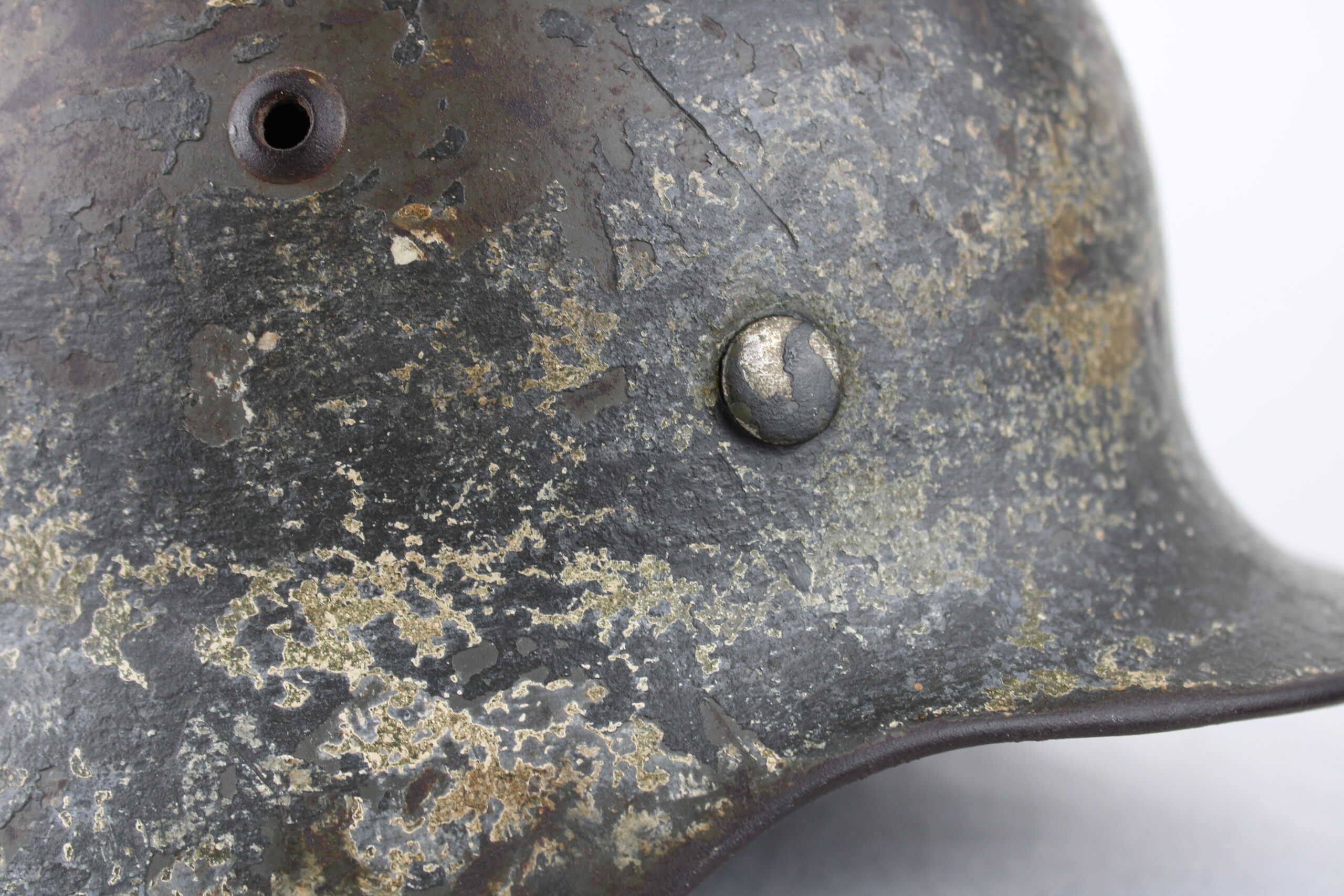 (Français) Casque allemand de la Heer Modèle 35 avec très beaux restes de camouflage deux tons.