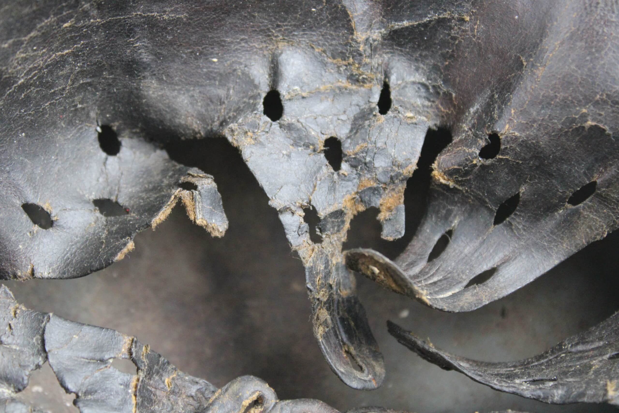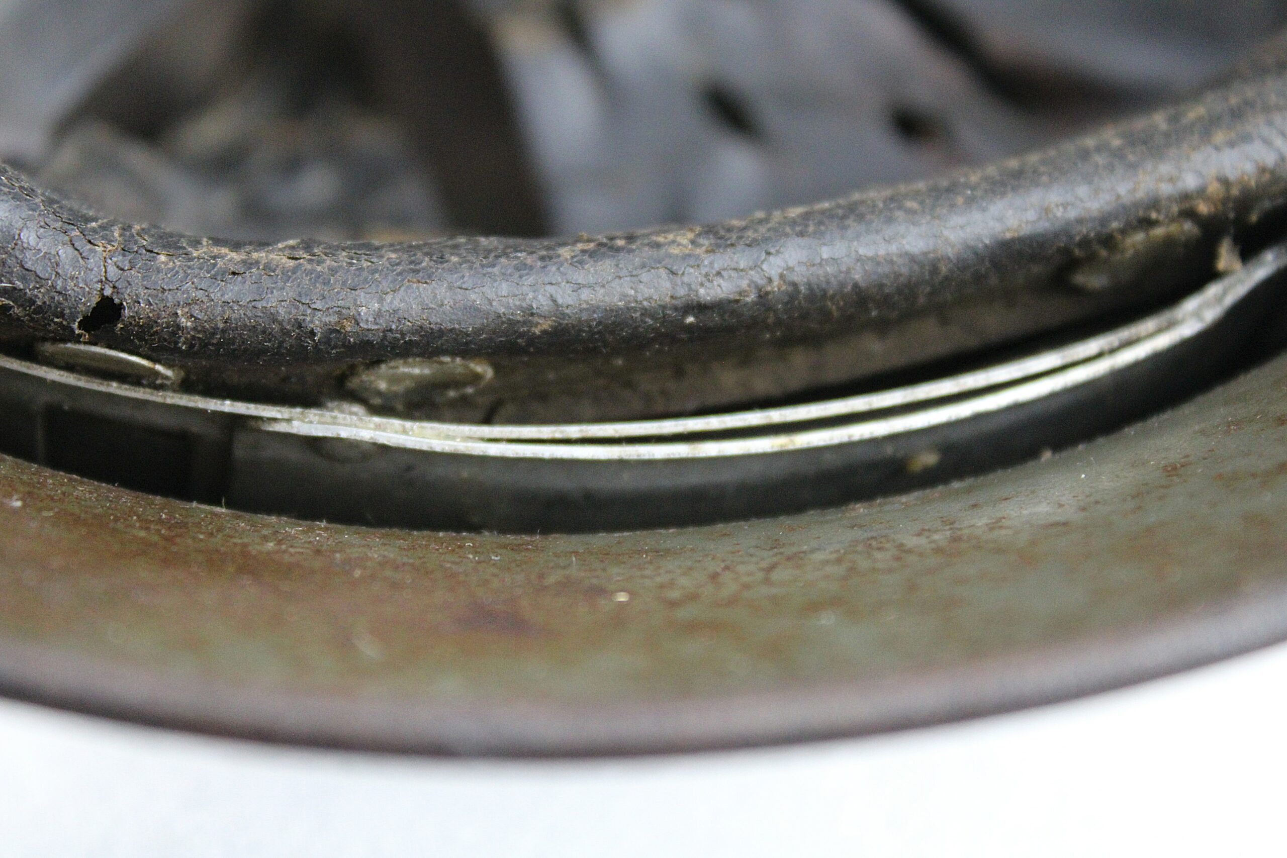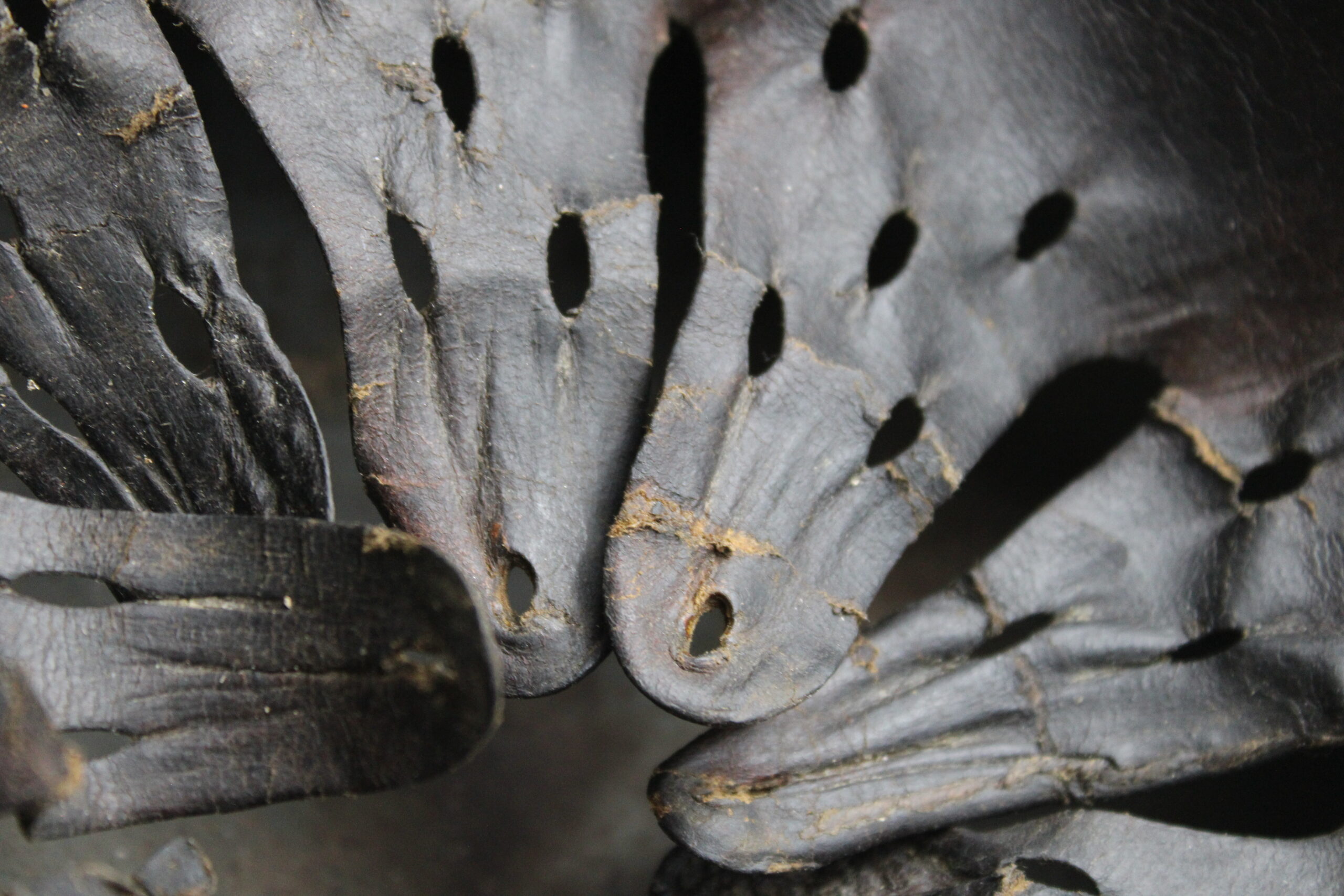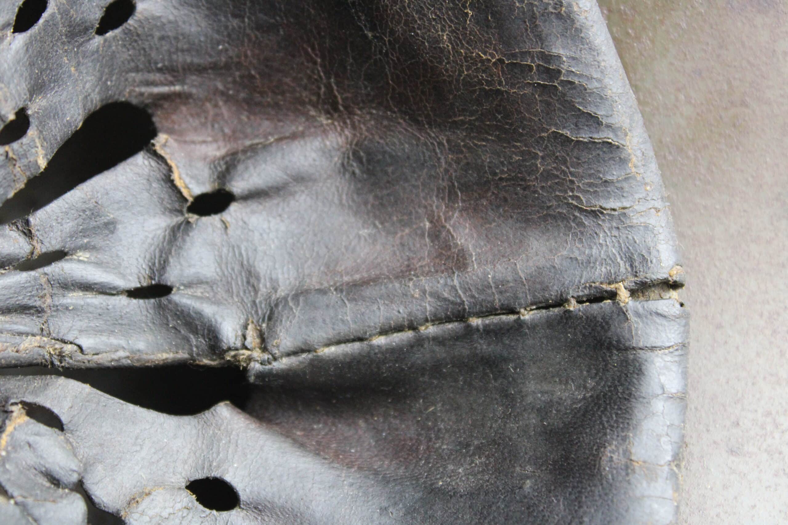 Emplacement de l’aigle de la Heer bien visible. Cerclage aluminium renforcé en place, maintenu par ses 3 rivets. Cuir en place, l’intérieur est dans son jus d’usage conforme à l’intégralité de la pièce.