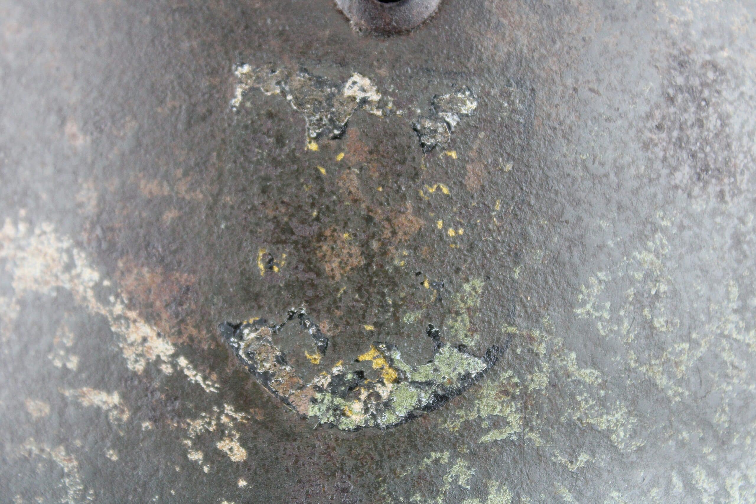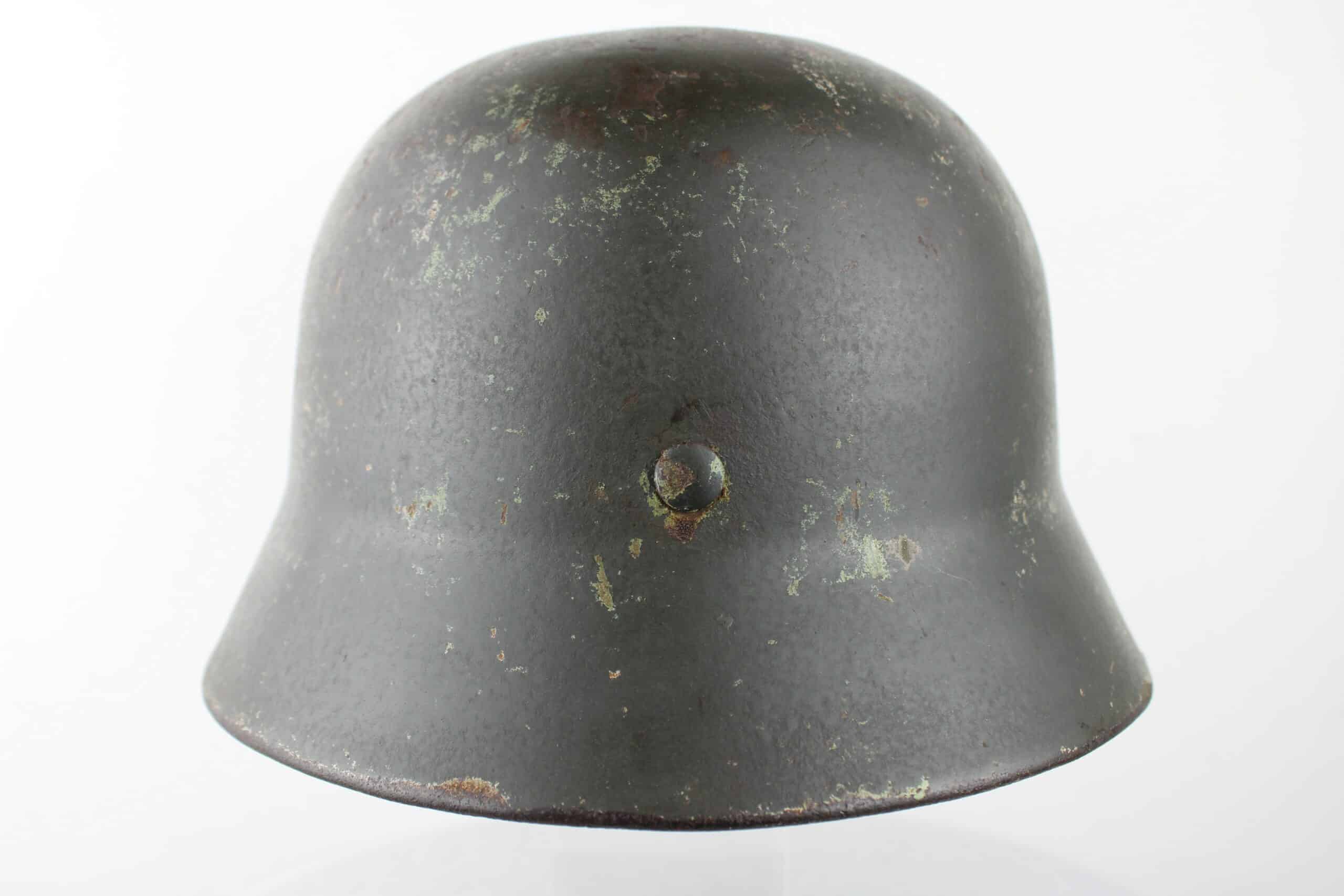 (Français) Casque allemand de la Kriegsmarine Modèle 35 avec très beaux restes de camouflage sable tortue typique de l’artillerie cotière.