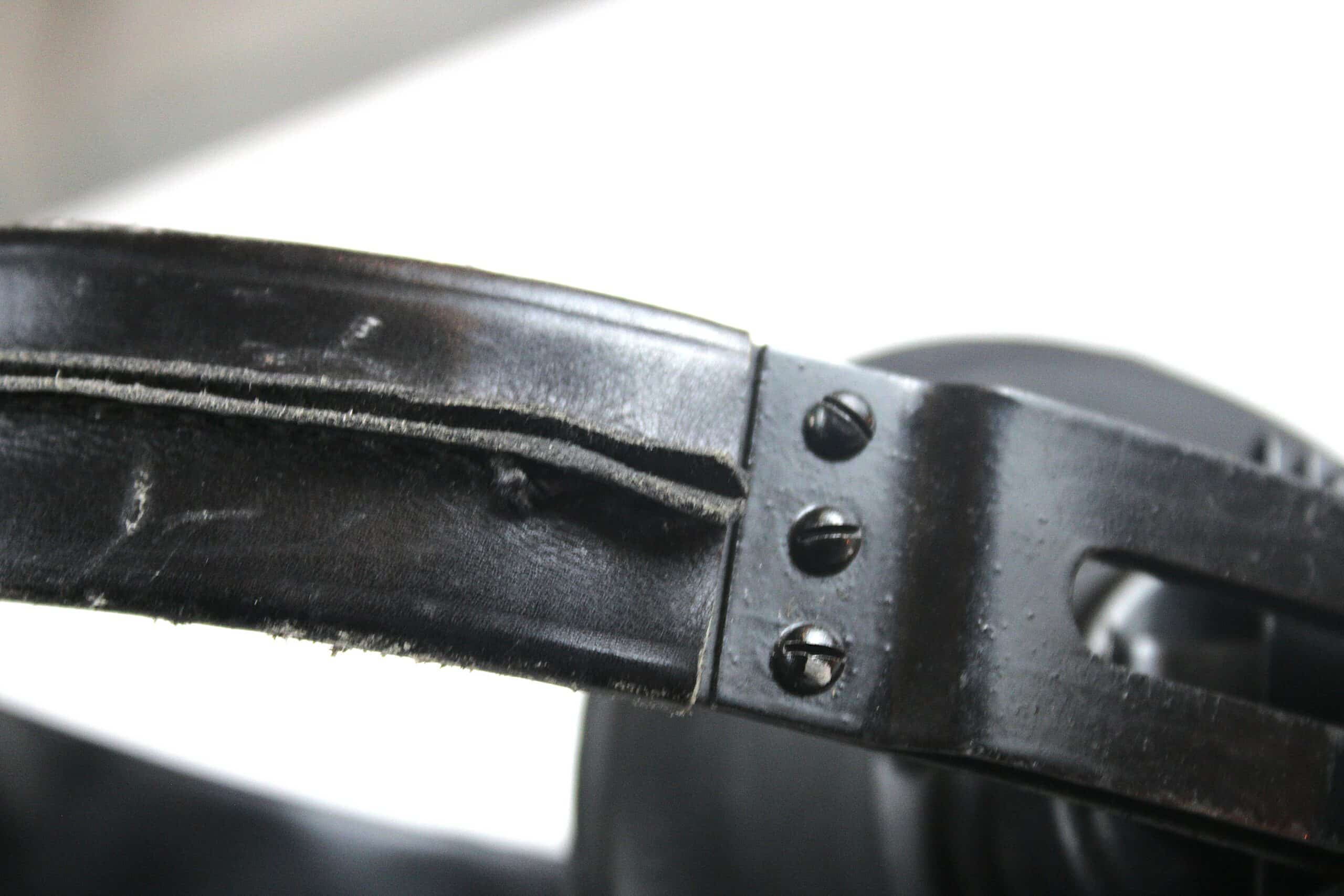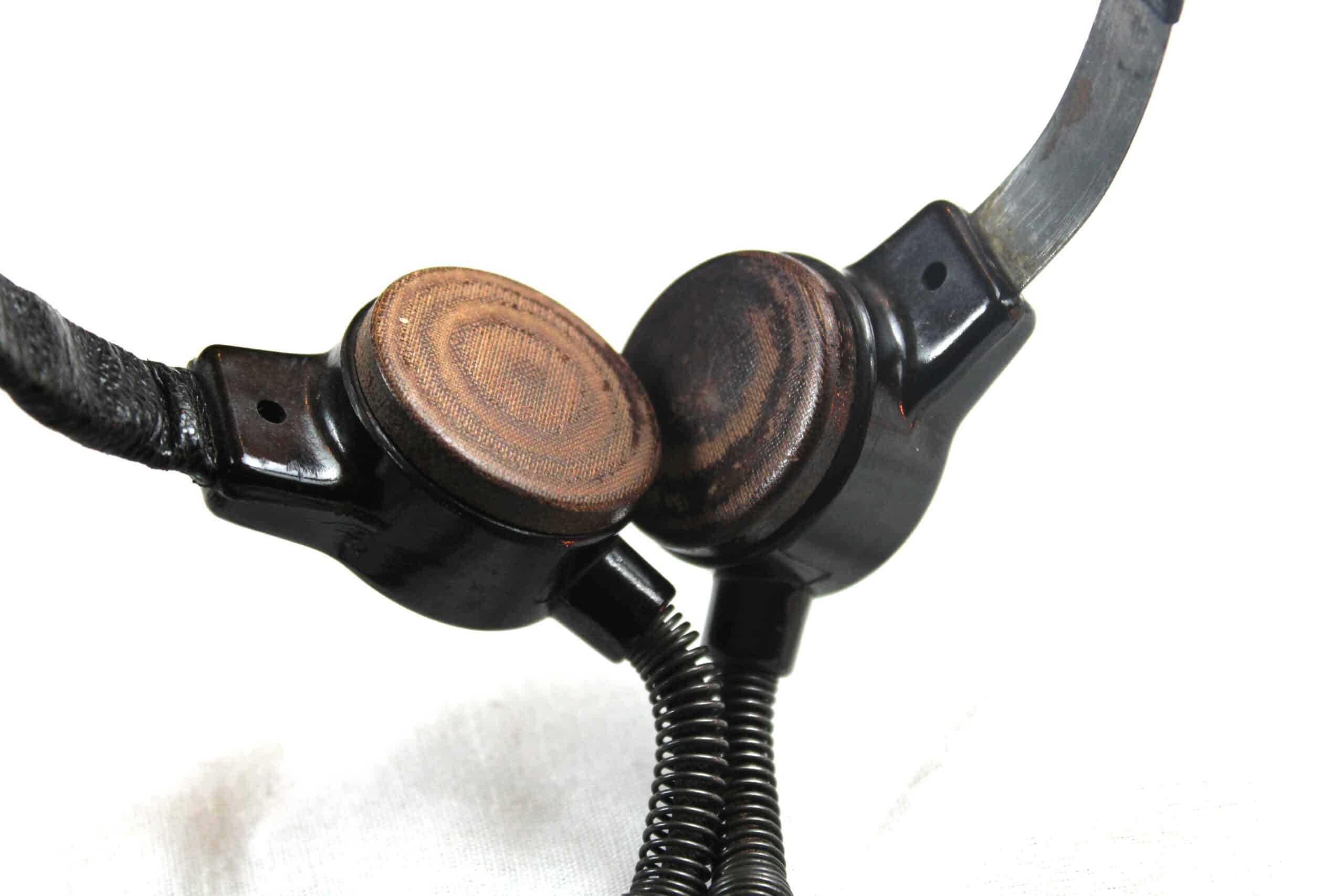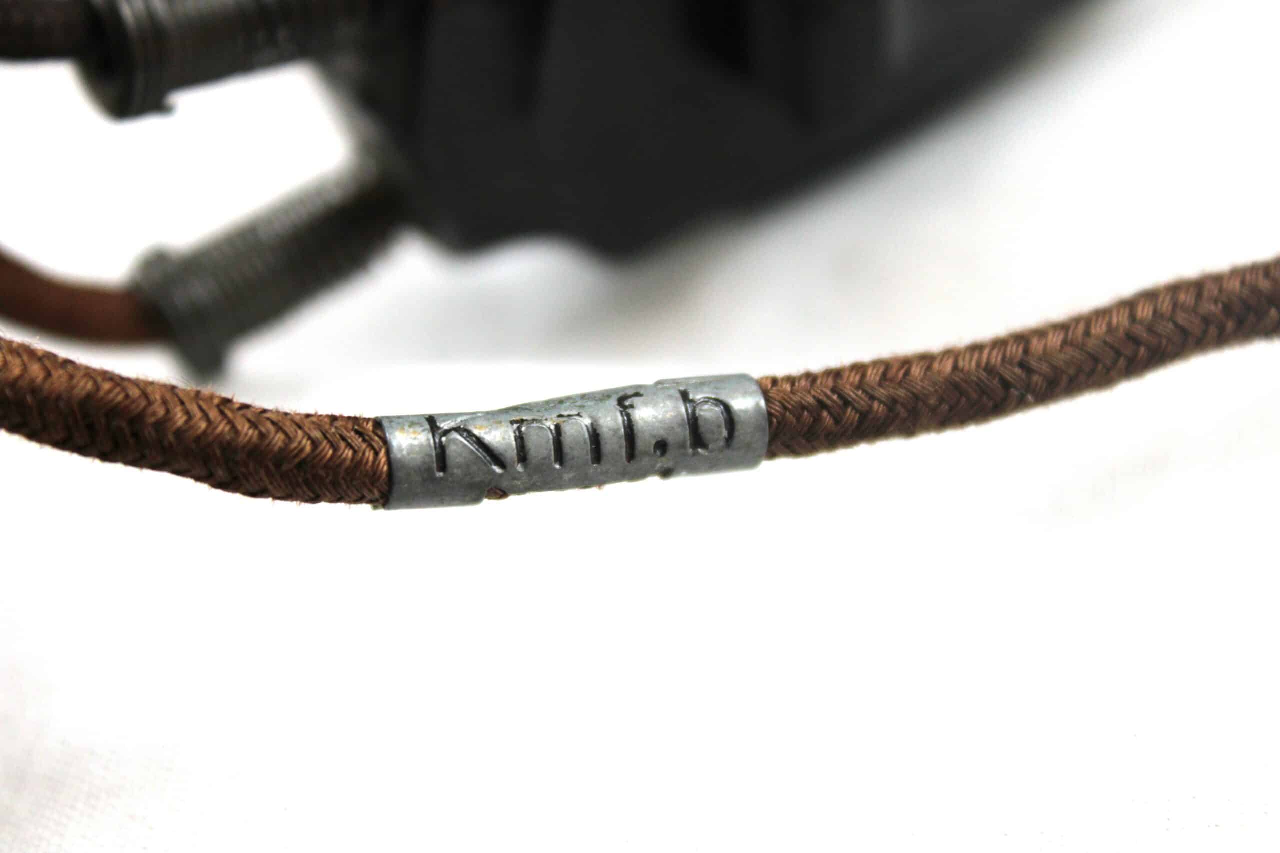Un casque écouteurs spécifique modèle Dfh.B fabrication SABA bien marqué et daté de 1943 avec ses WaffenAmt, les parties métalliques sont peintes en noir , arceau recouvert de son cuir, visserie entièrement présente, se démonte sans difficulté. Cordon présent dans toute sa longueur et prise en très bon état. Les coussinets sont en revanche des repro de fabrication américaine.
