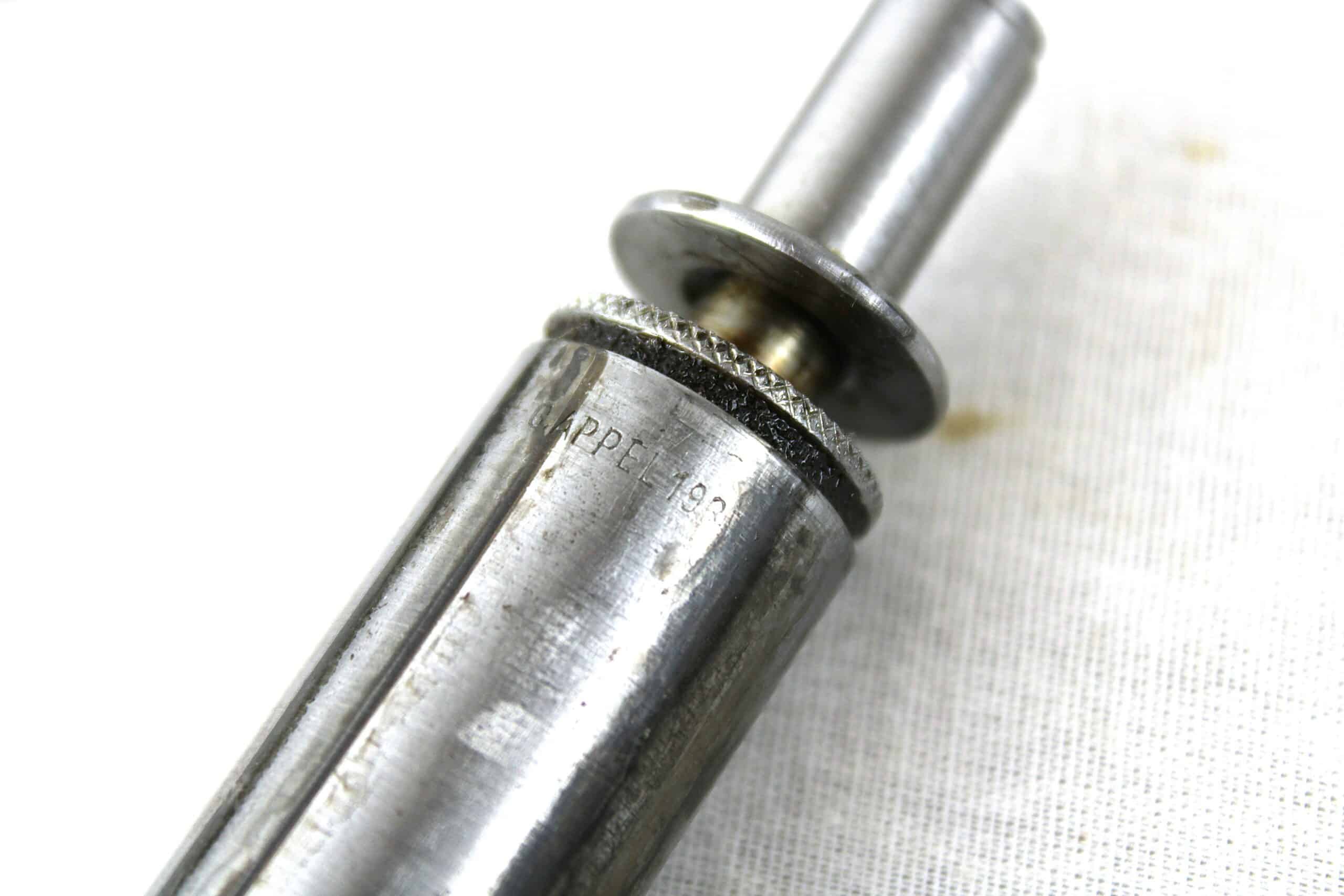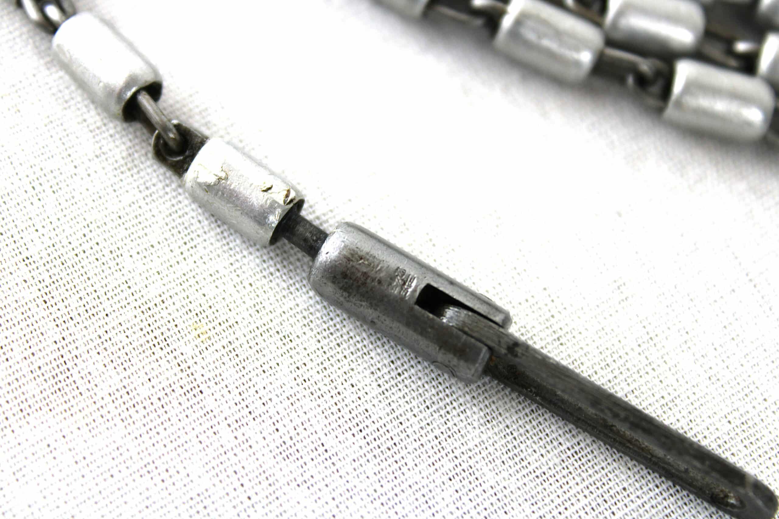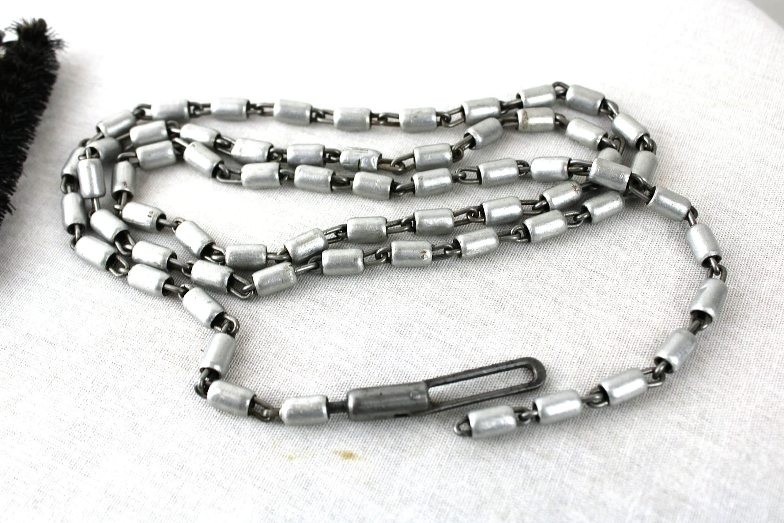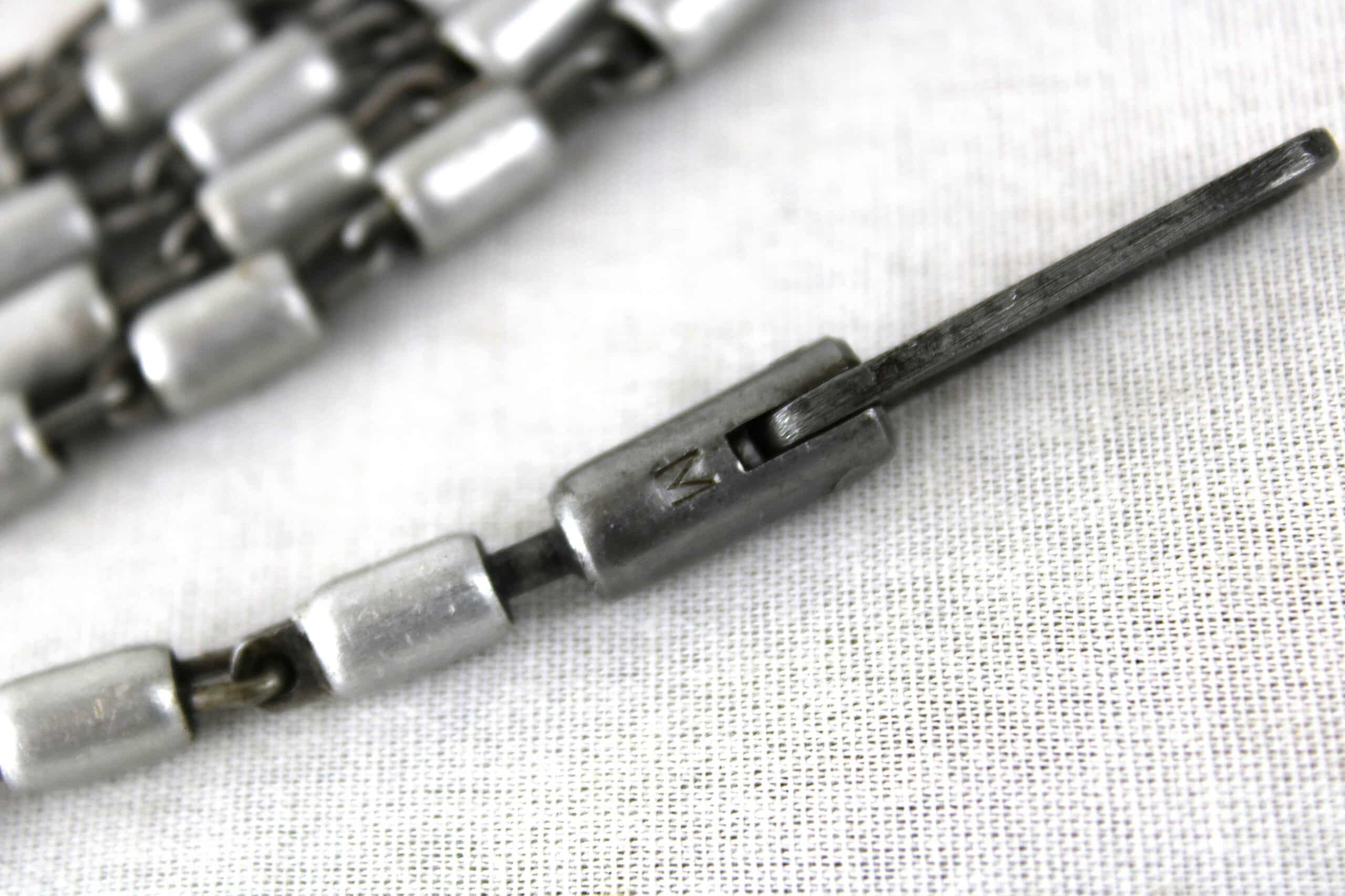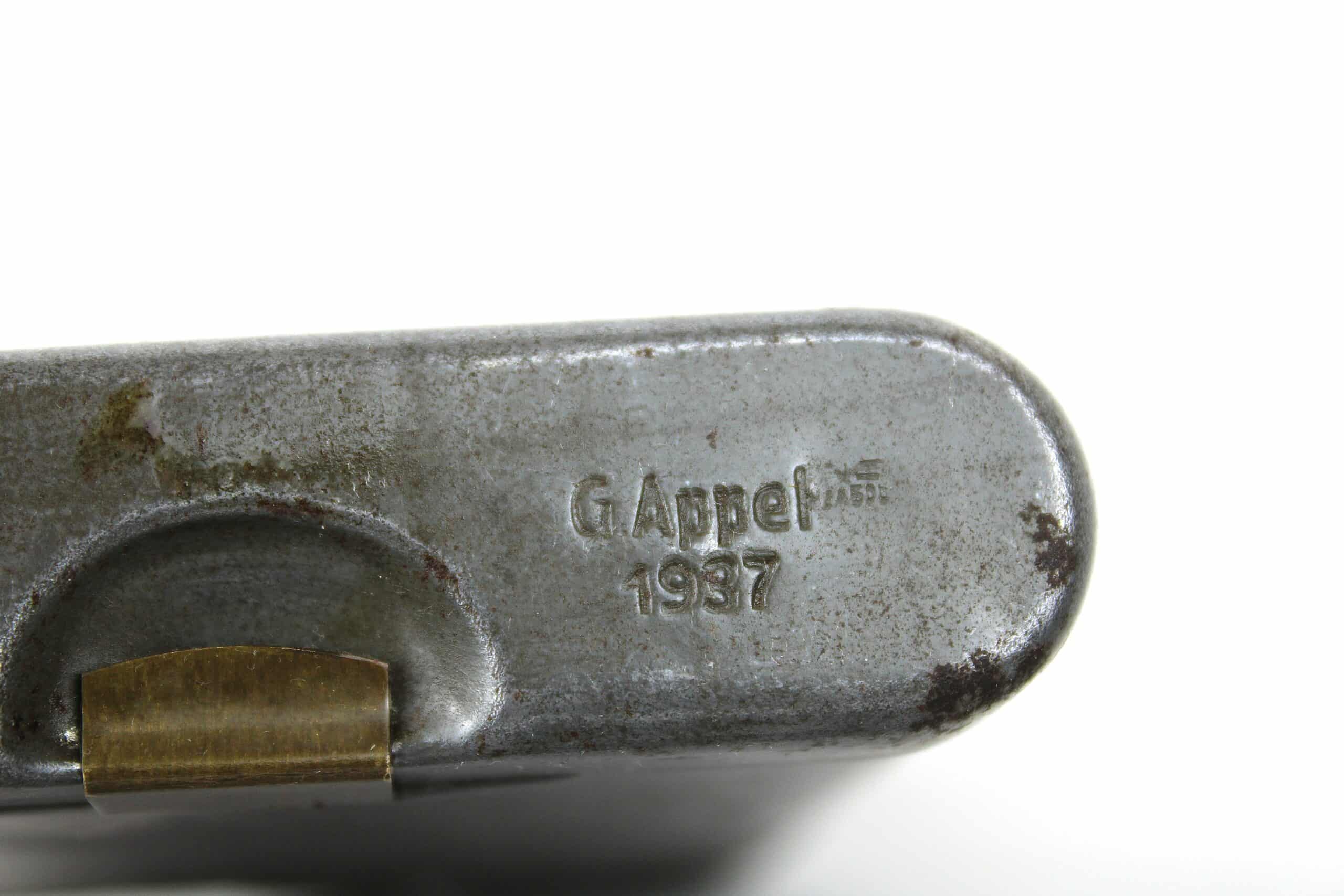 Boite en bon état avec ses fermeture en laiton, bien marquée avec Waffen Amt; Huilier fonctionnel et plein en acier, bien marqué G.Appel 1937; cuillère du même fabricant et même année; chaine en très bon état avec Waffen Amt et marquage M ? (Kriegsmarine?) ; les deux écouvillons en bon état avec leurs crochets de chaine.
