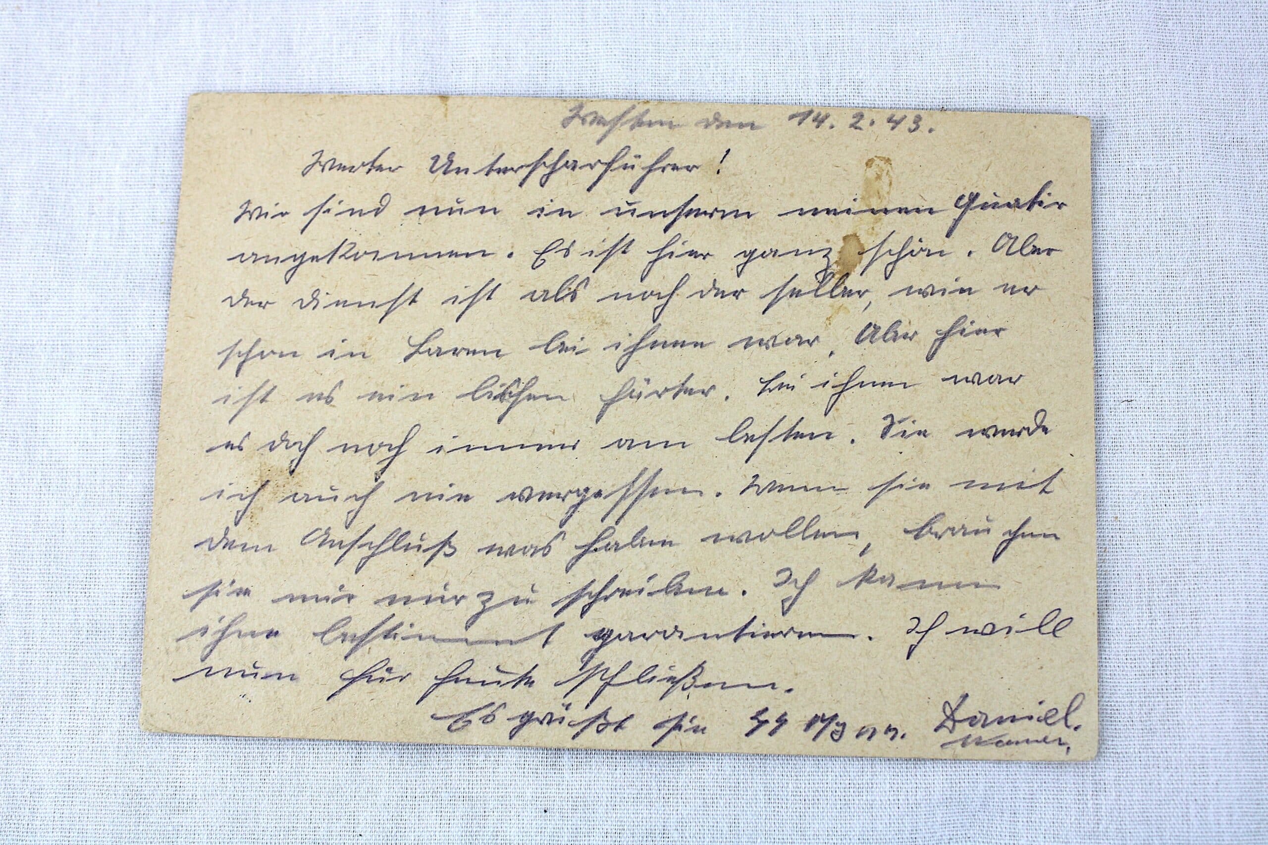 Lettre recto verso écrite par le SS Mann Daniel Werner de la 9eme SS panzergrenadier division Hohenstaufen.
