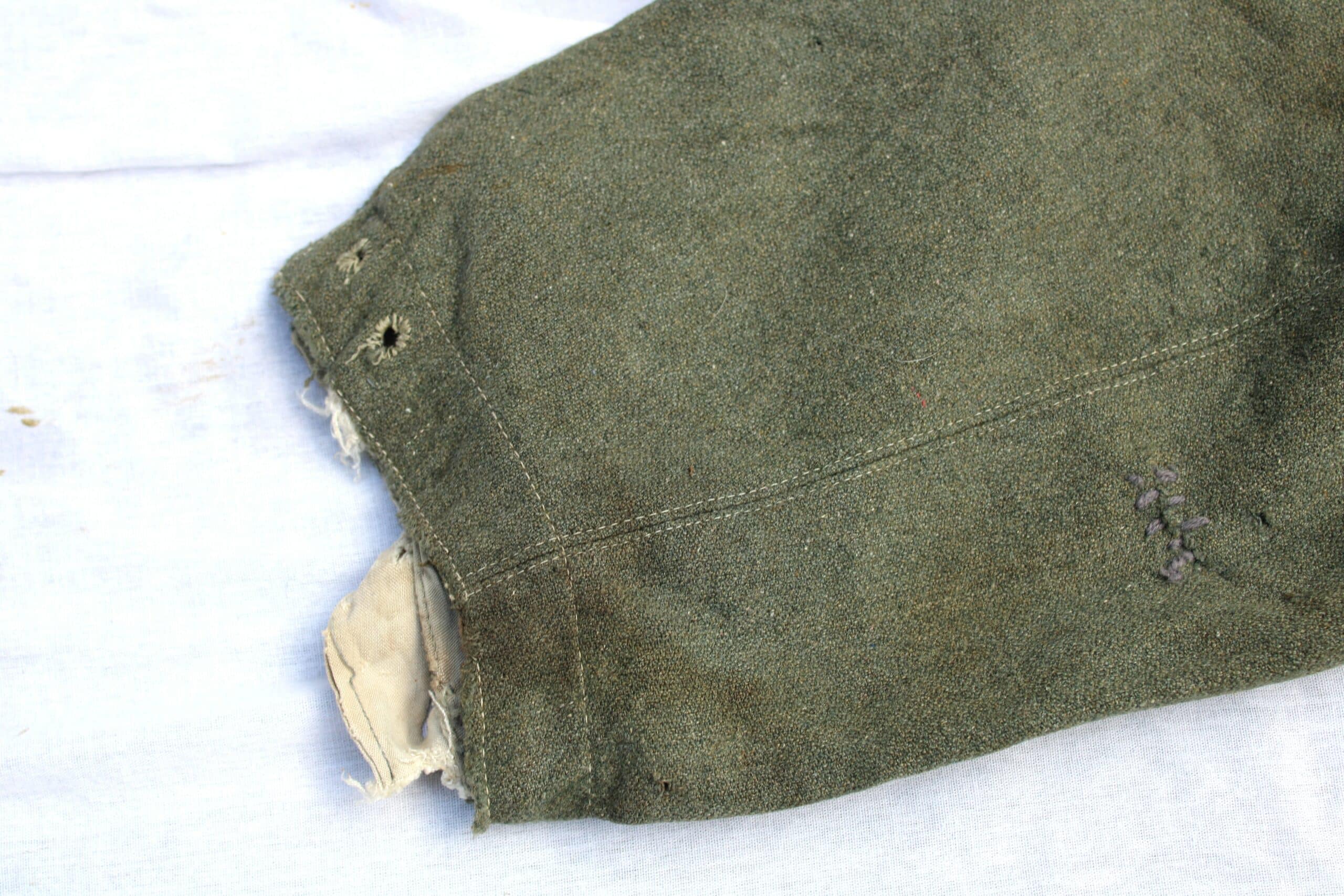 Rare pantalon modèle 43 de fabrication spécifique pour la Waffen SS, avec son marquage code “910” .