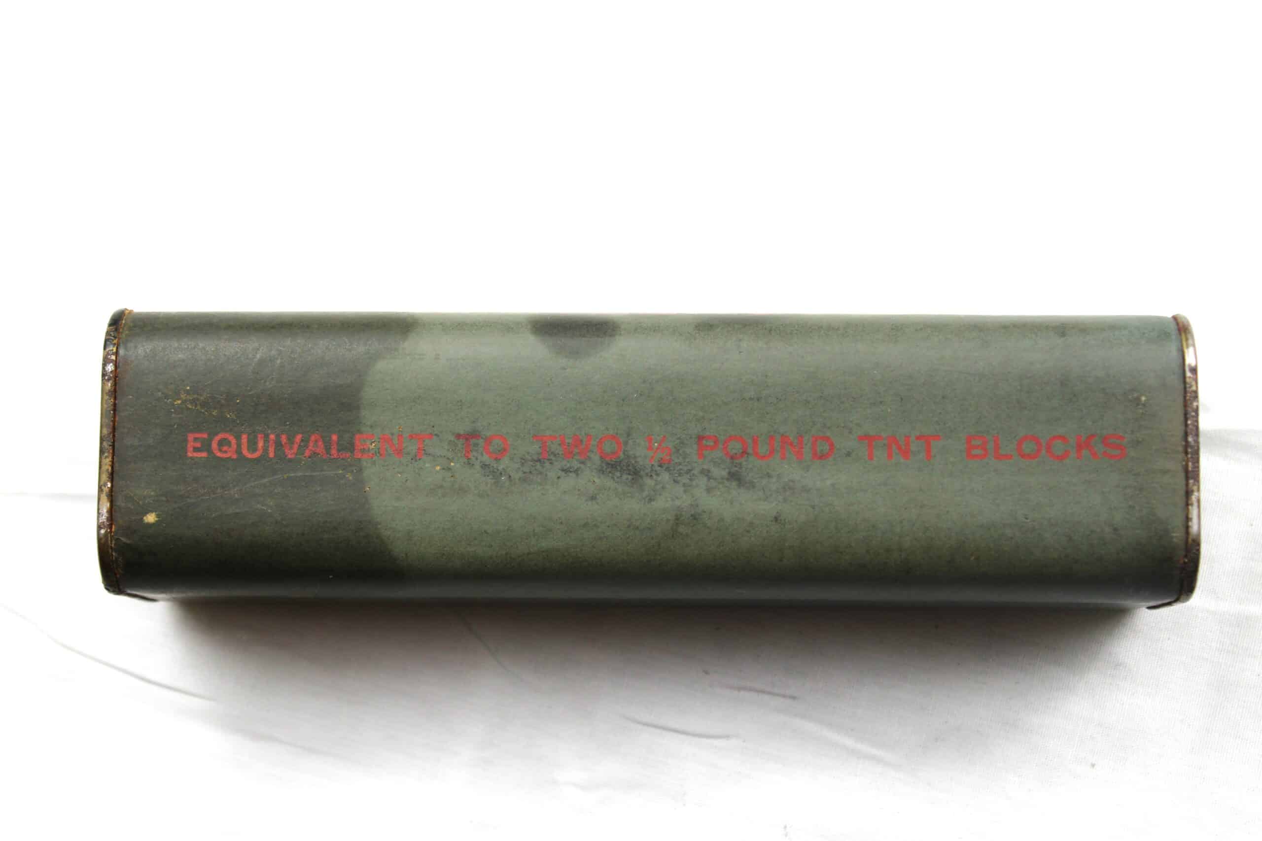 Block TNT 1 Pound Block TNT 1 Pound 90 € Catégories : AMERICAINS Armement AJOUTER AU PANIER Nos méthodes de paiement 100% sécurisés Block de TNT 1 pound US WW2 Block en teinte grise , de fabrication KANKAKEE Ordnance , bonne pièce évidemment vide de toute matière , il ne reste que l’enveloppe carton avec ses deux extrémités métal. Block TNT 1 Pound Le produit a été ajouté avec succès