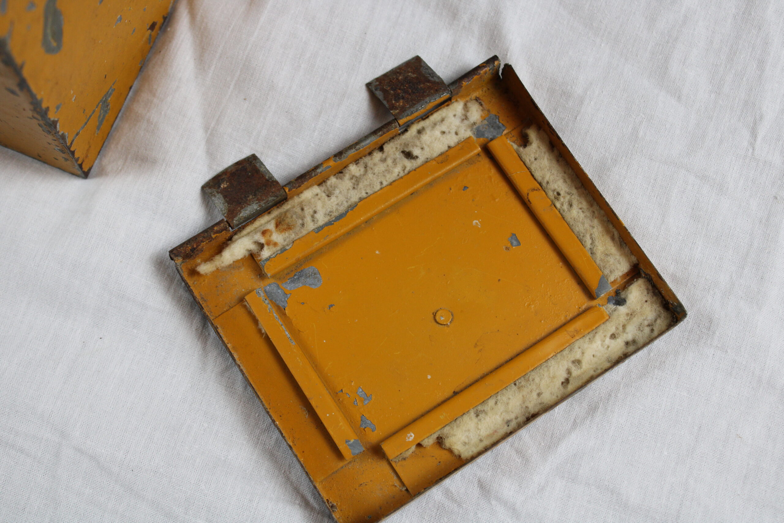 Intérieur en bon état , reste de bande en feutrine d’étanchéité du couvercle.