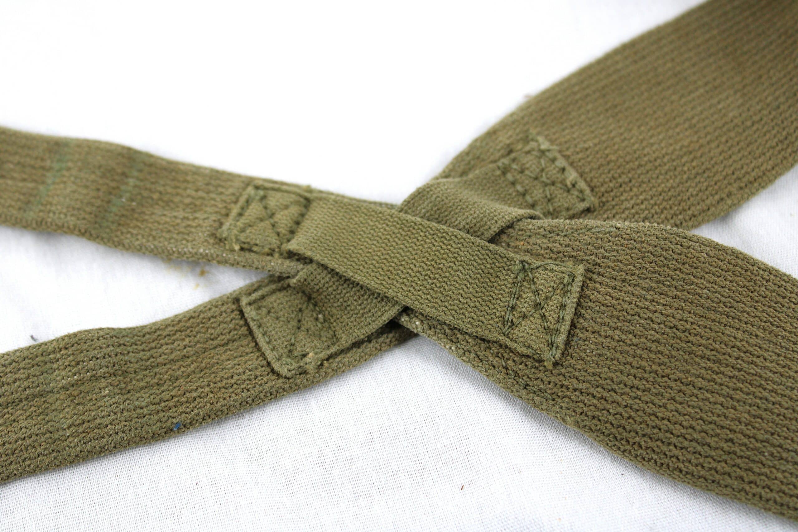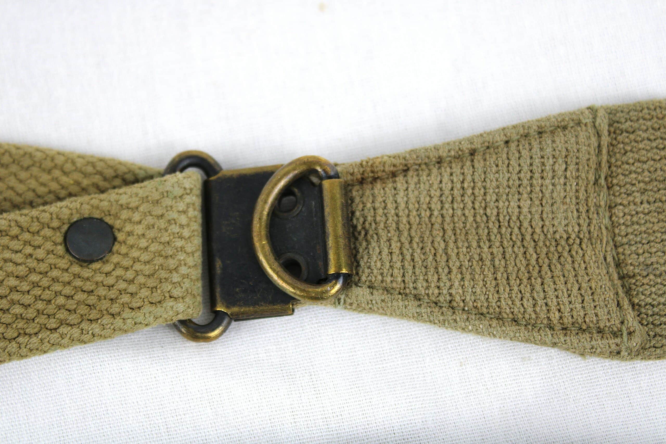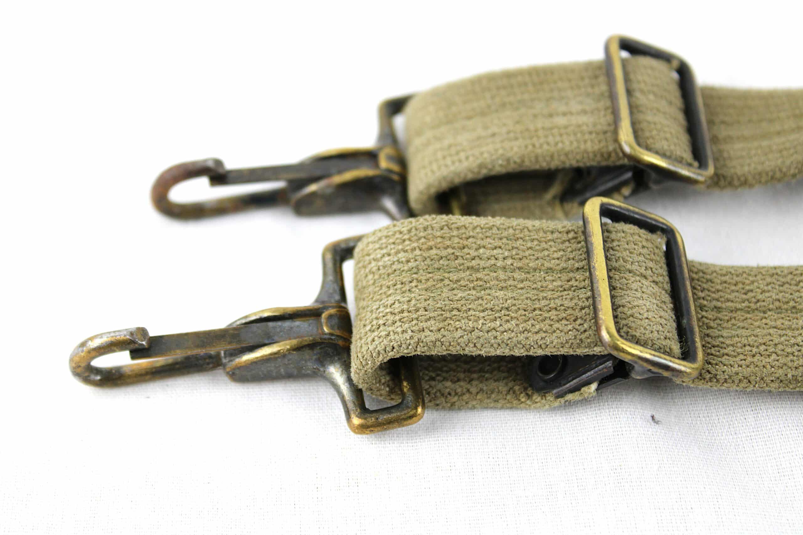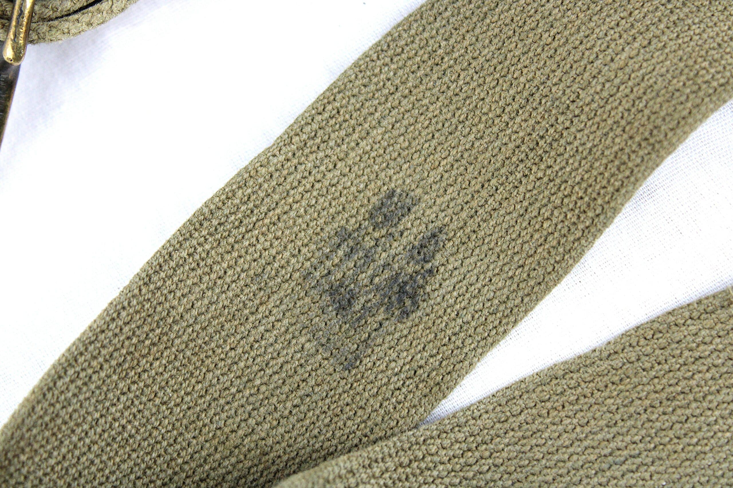 Bouclerie et partie métal en laiton, tous présent et sans défaut, la toile est solide, marquage fabricant bien présent mais illisible.