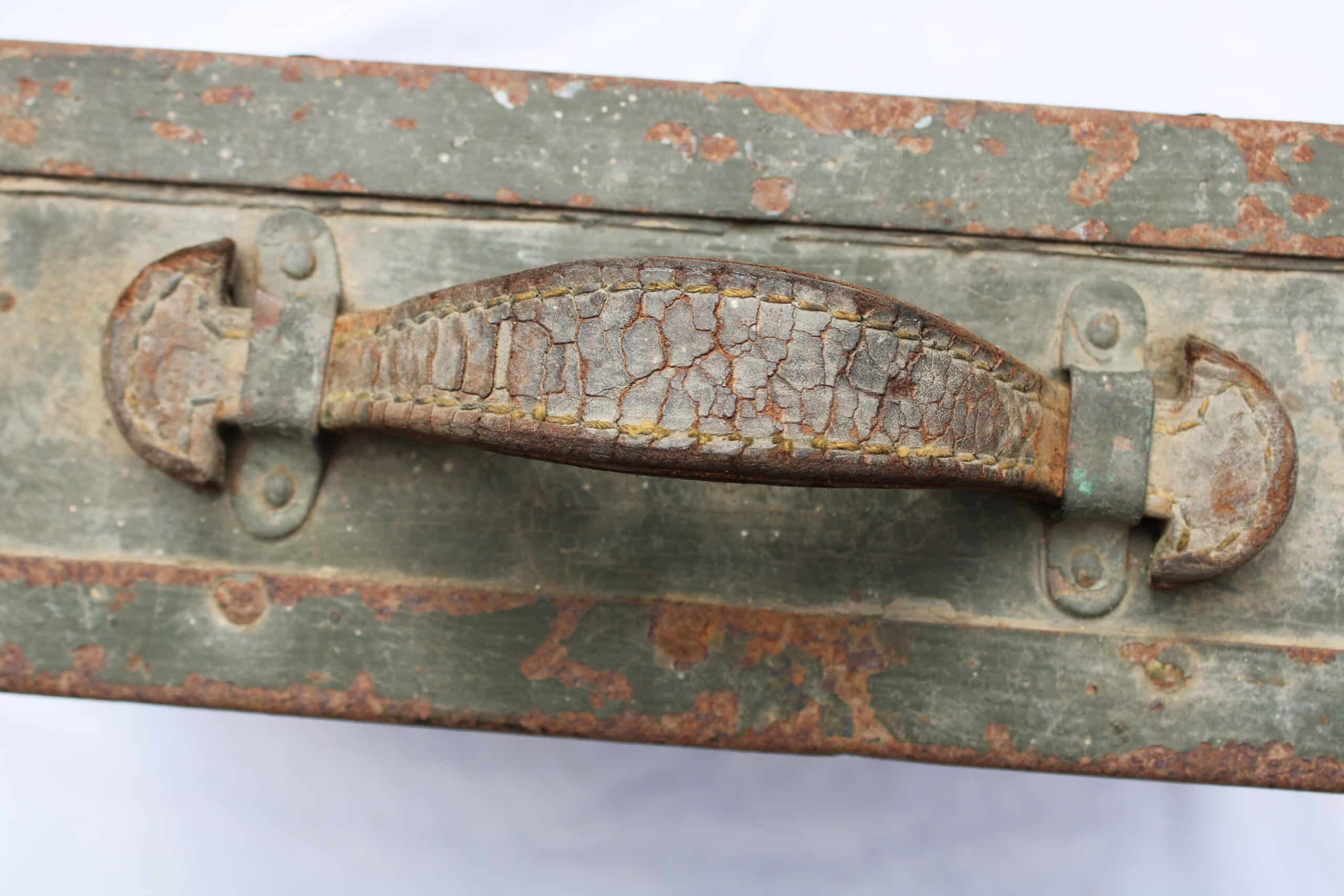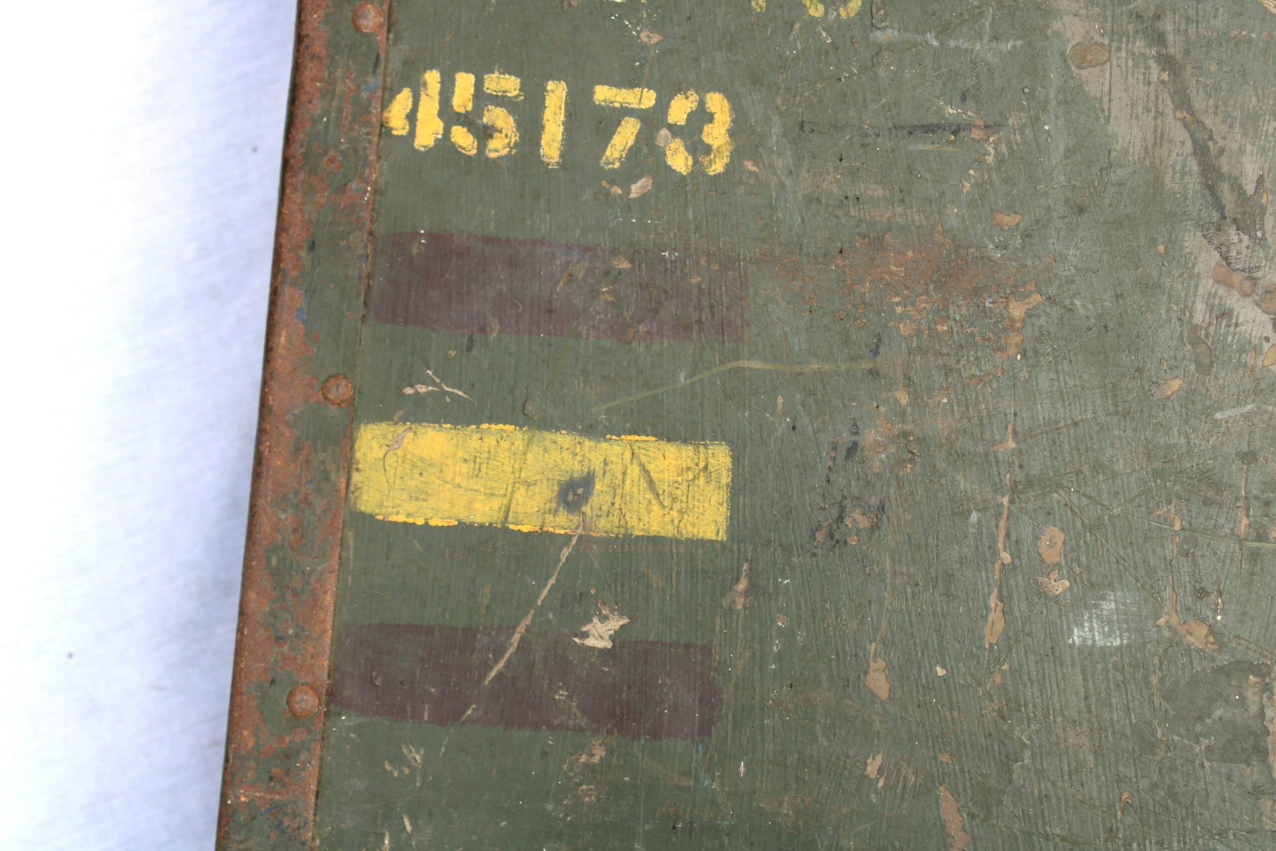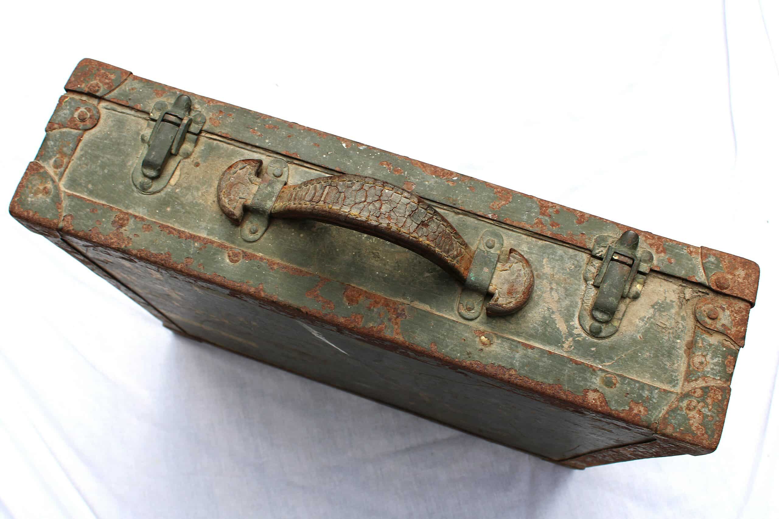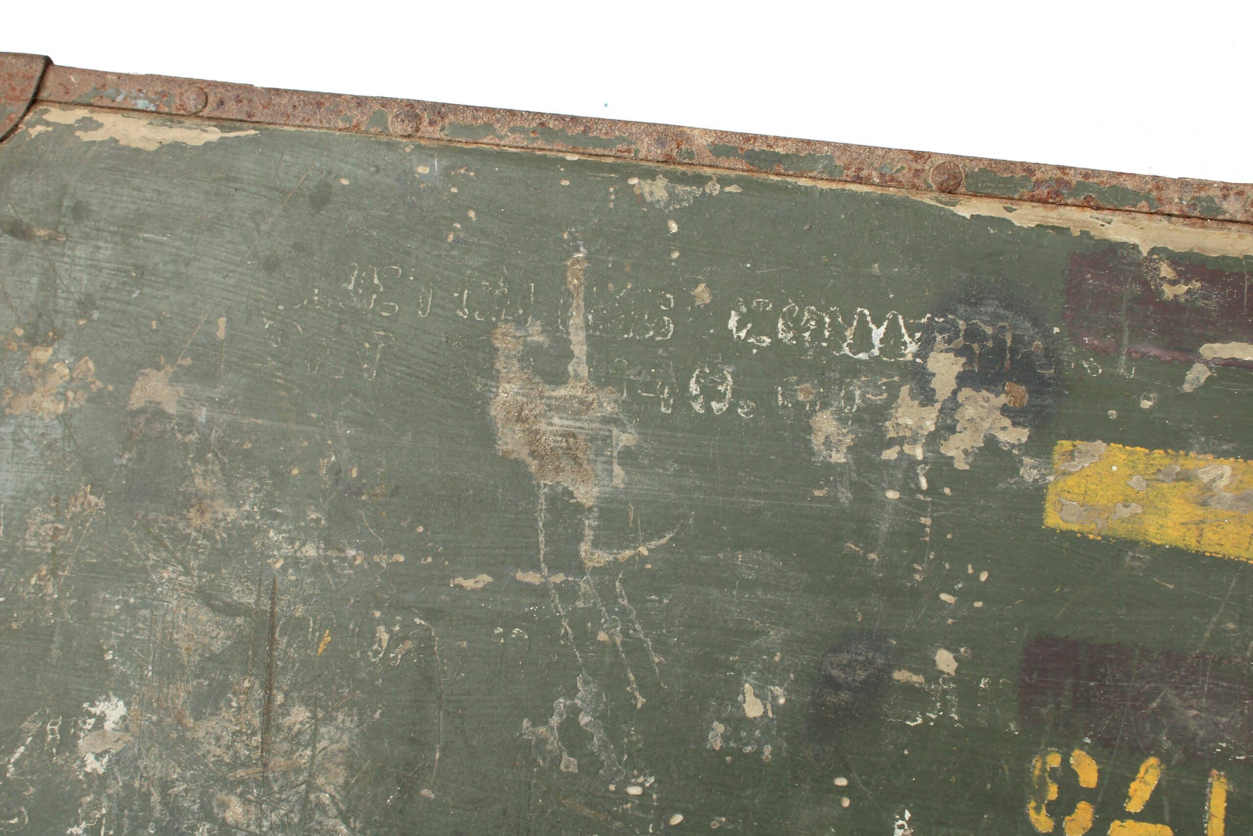 Caisse destinée au transport du kit « Sketching Map Board » de l’Engineer , superbe code TQM peint sur les deux faces, poignée cuir en bon état, système de fermeture présent et fonctionnel, la caisse possède un jus incroyable.