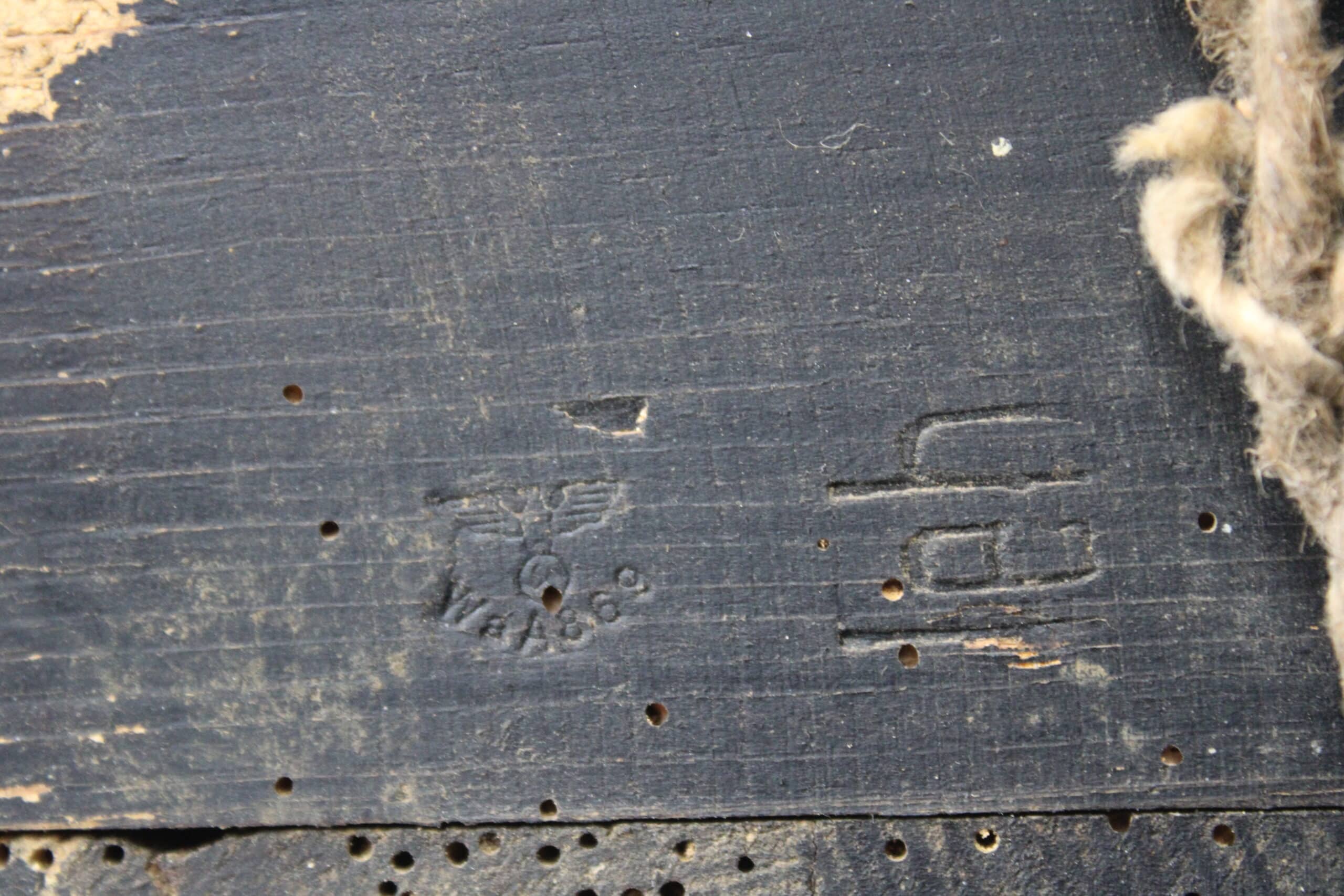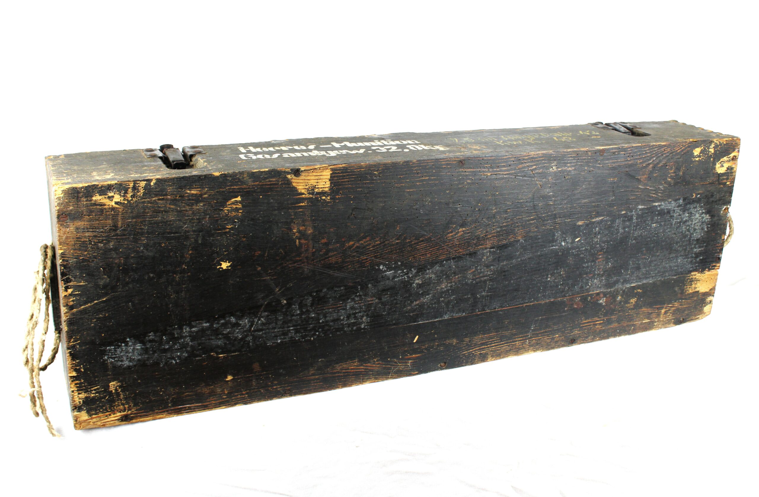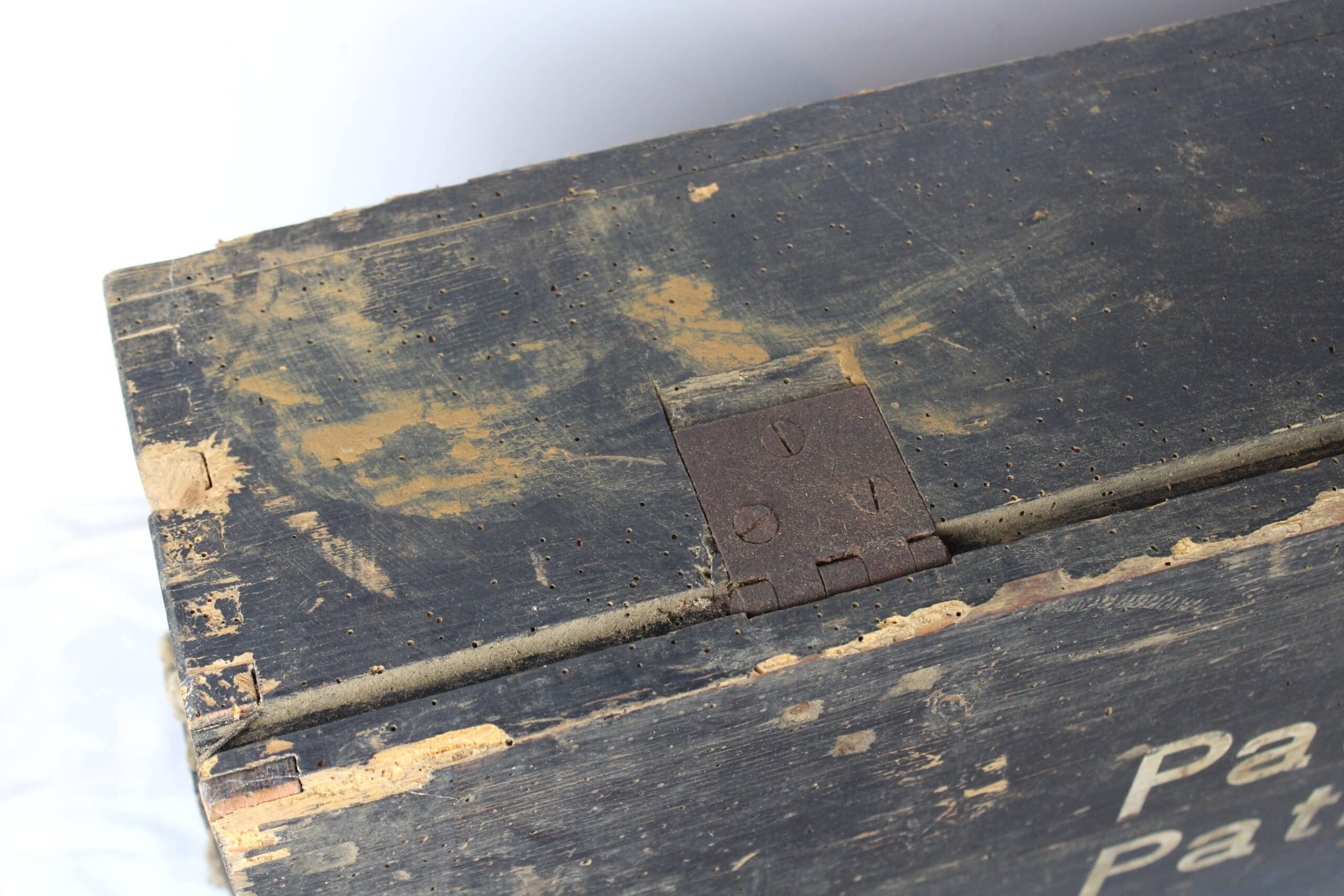Très beaux marquages sur l’ensemble de la pièce, étiquette présente sur le coté droit de la caisse et à l’intérieur indiquant que celle-ci est destinée au transport d’obus explosifs.