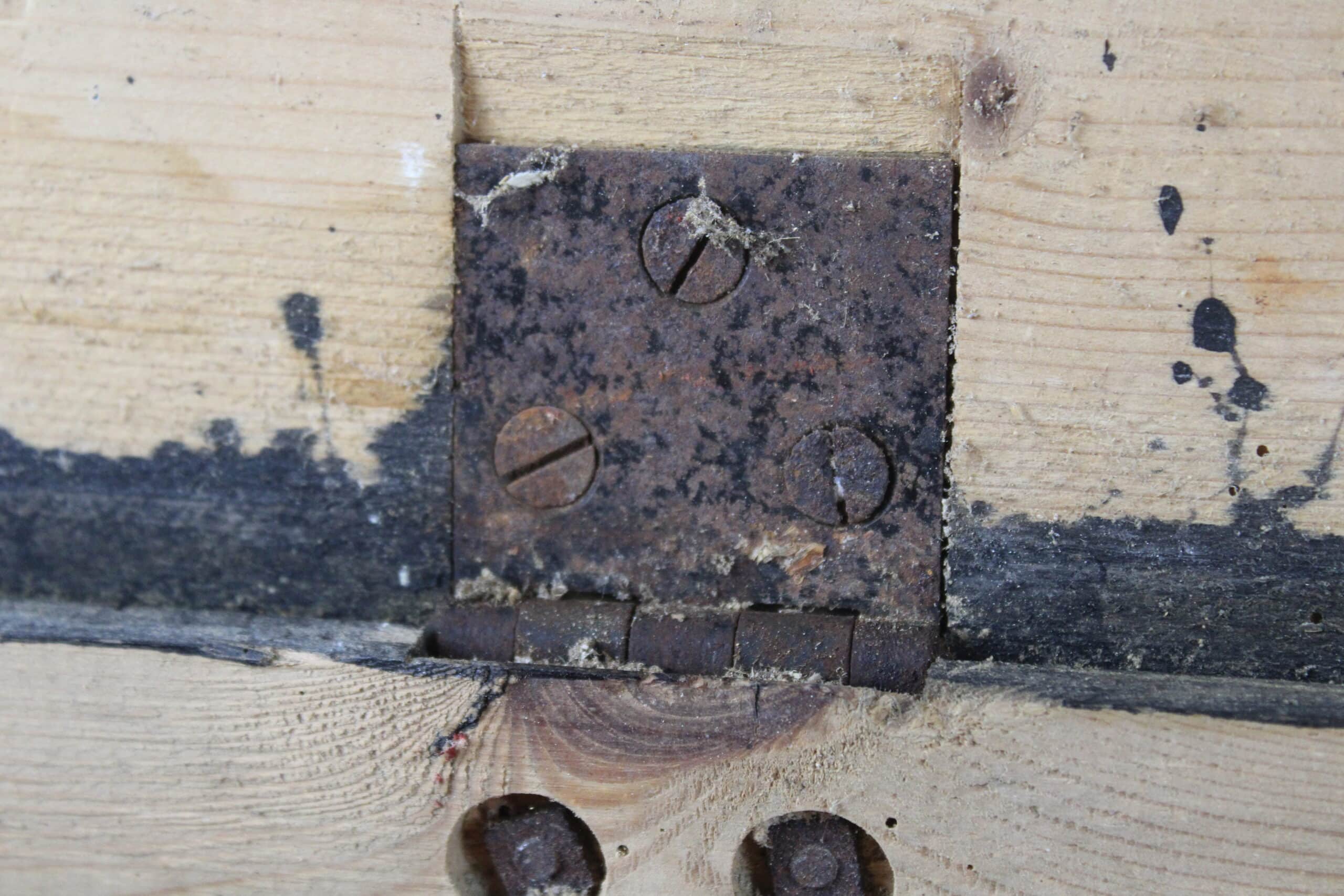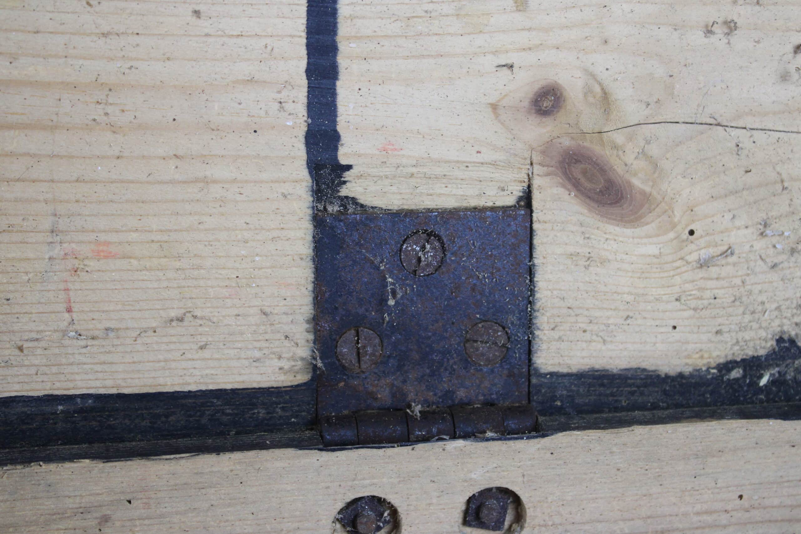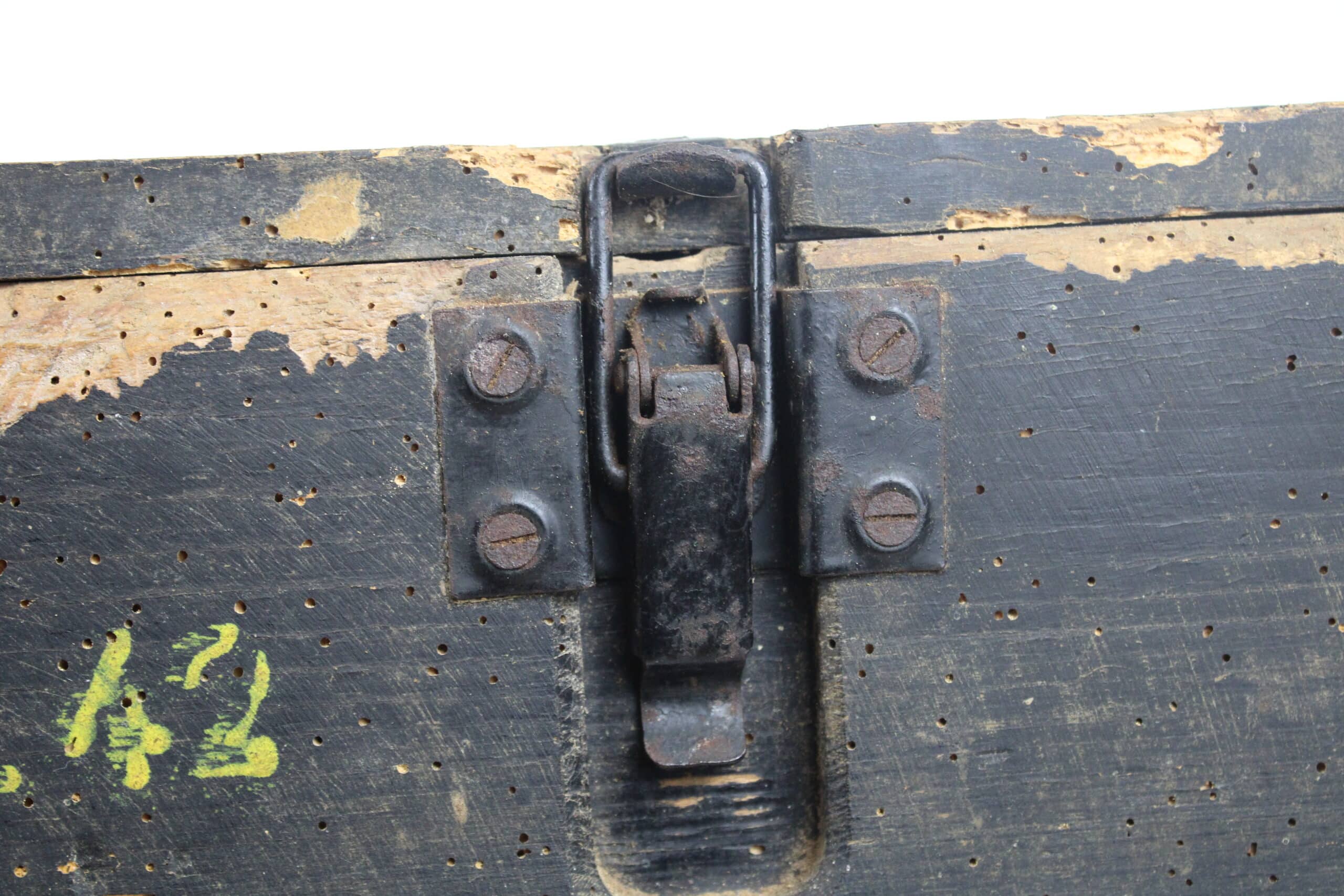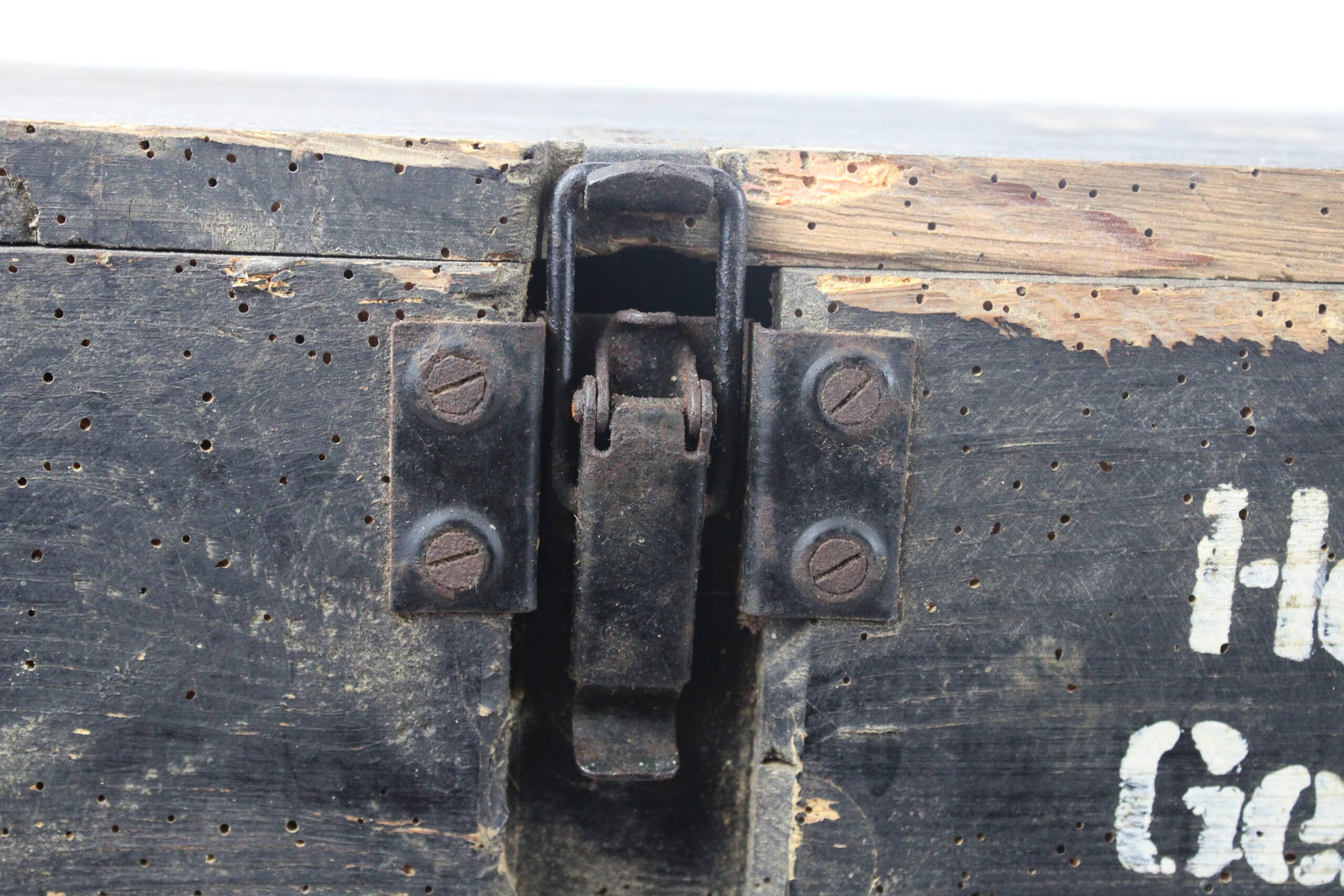 Jolie caisse dans son jus de grange, modèle peinte, fermant par 2 crochets de fermeture présents et en parfait état de fonctionnement.
