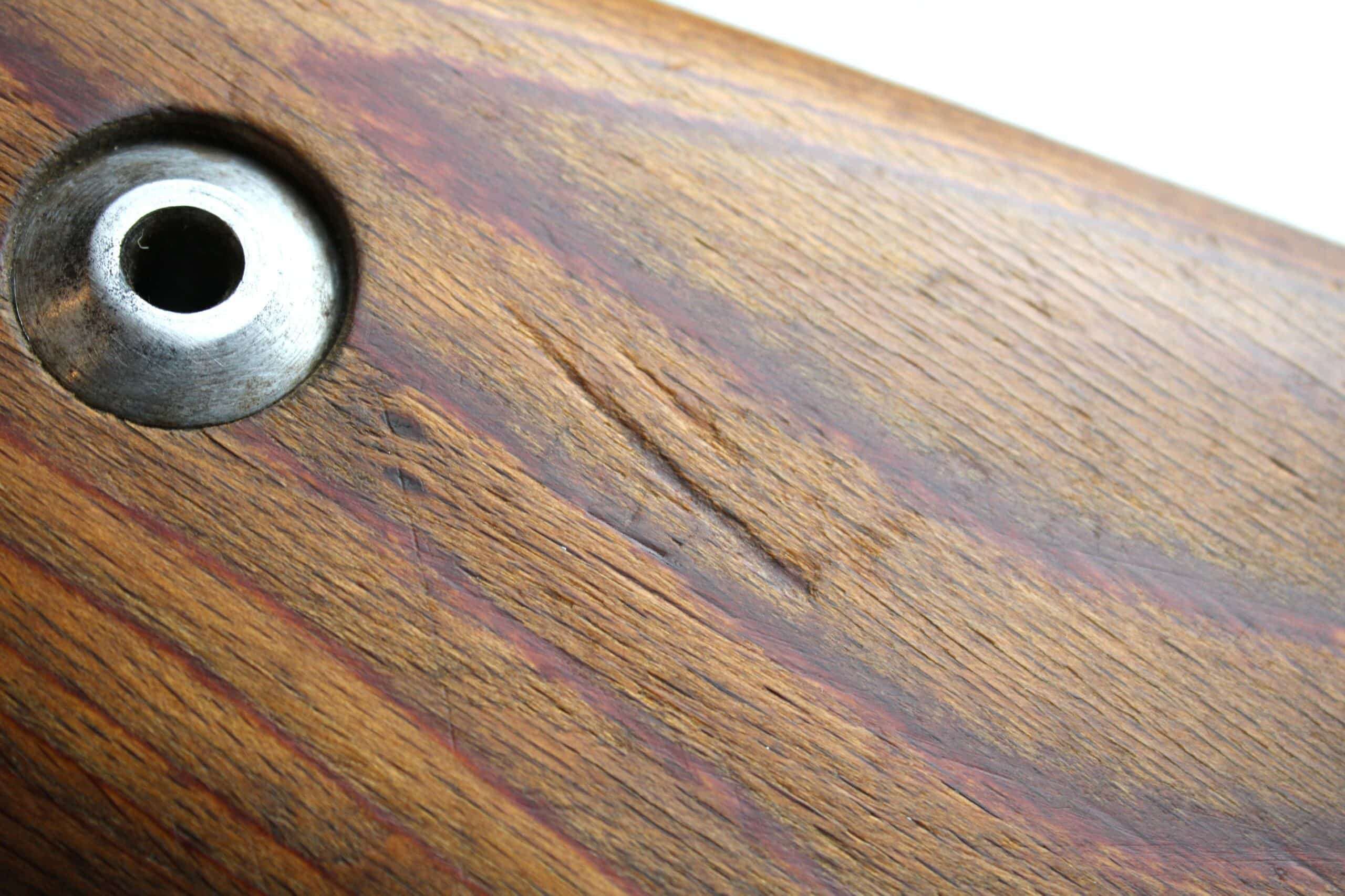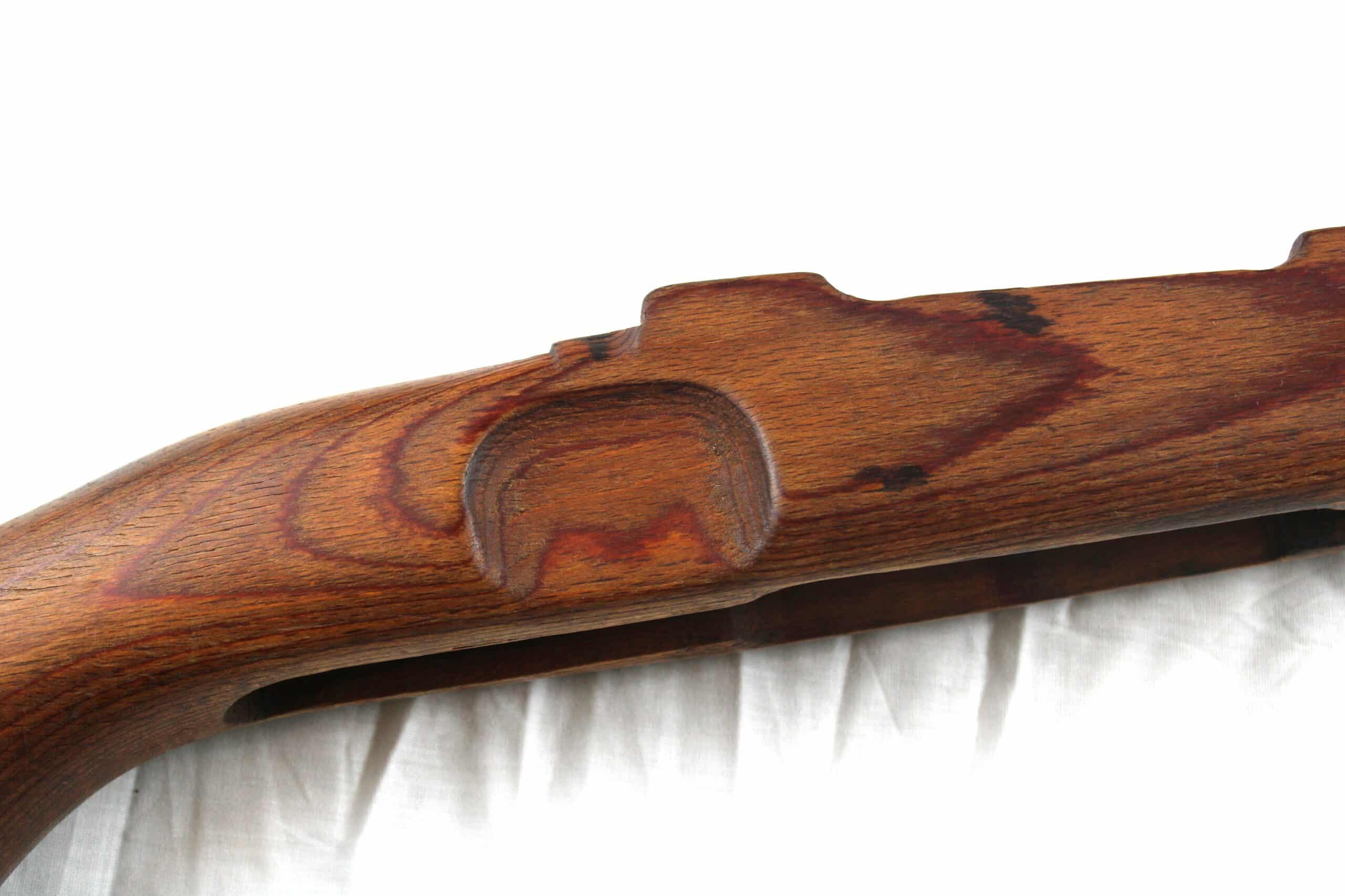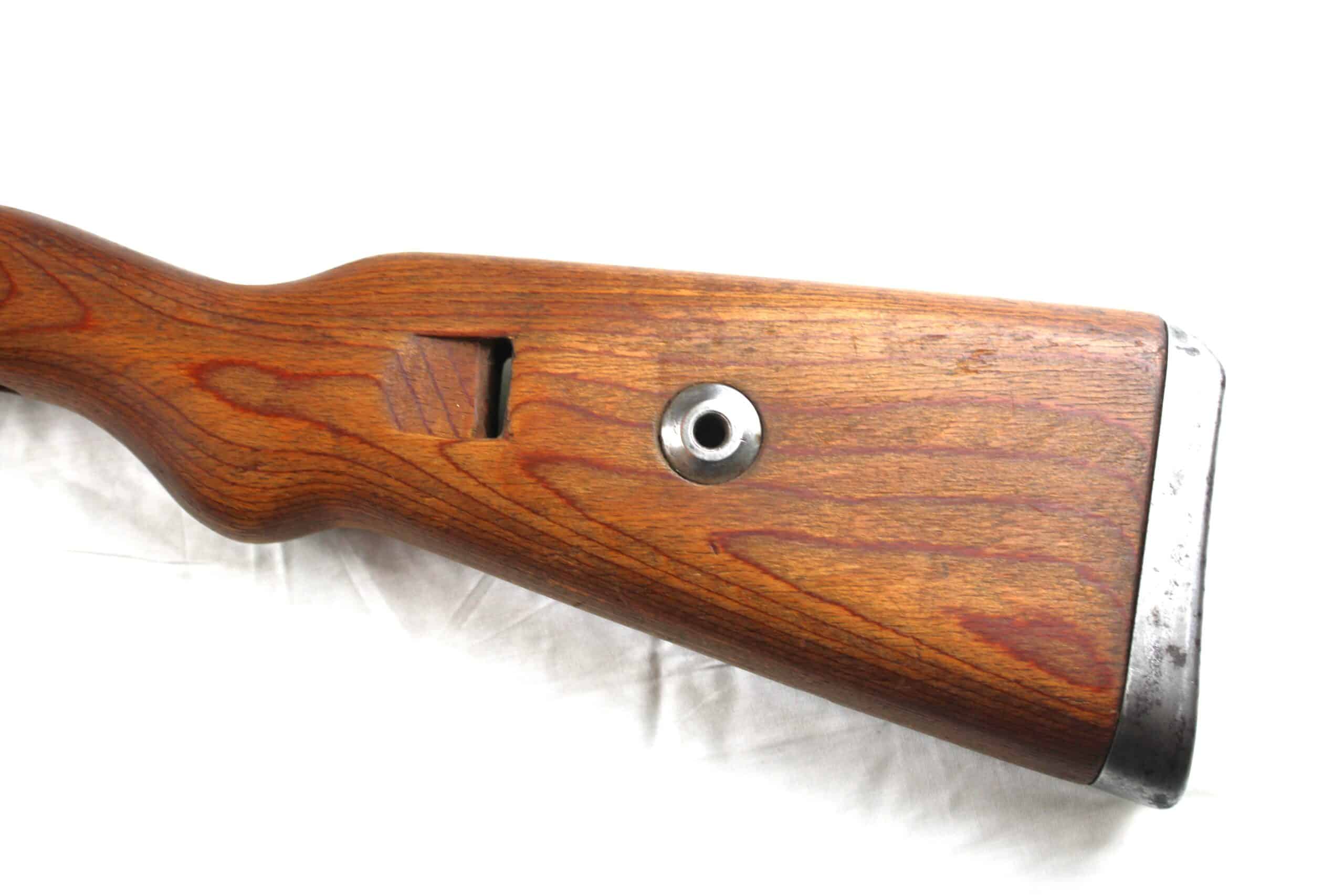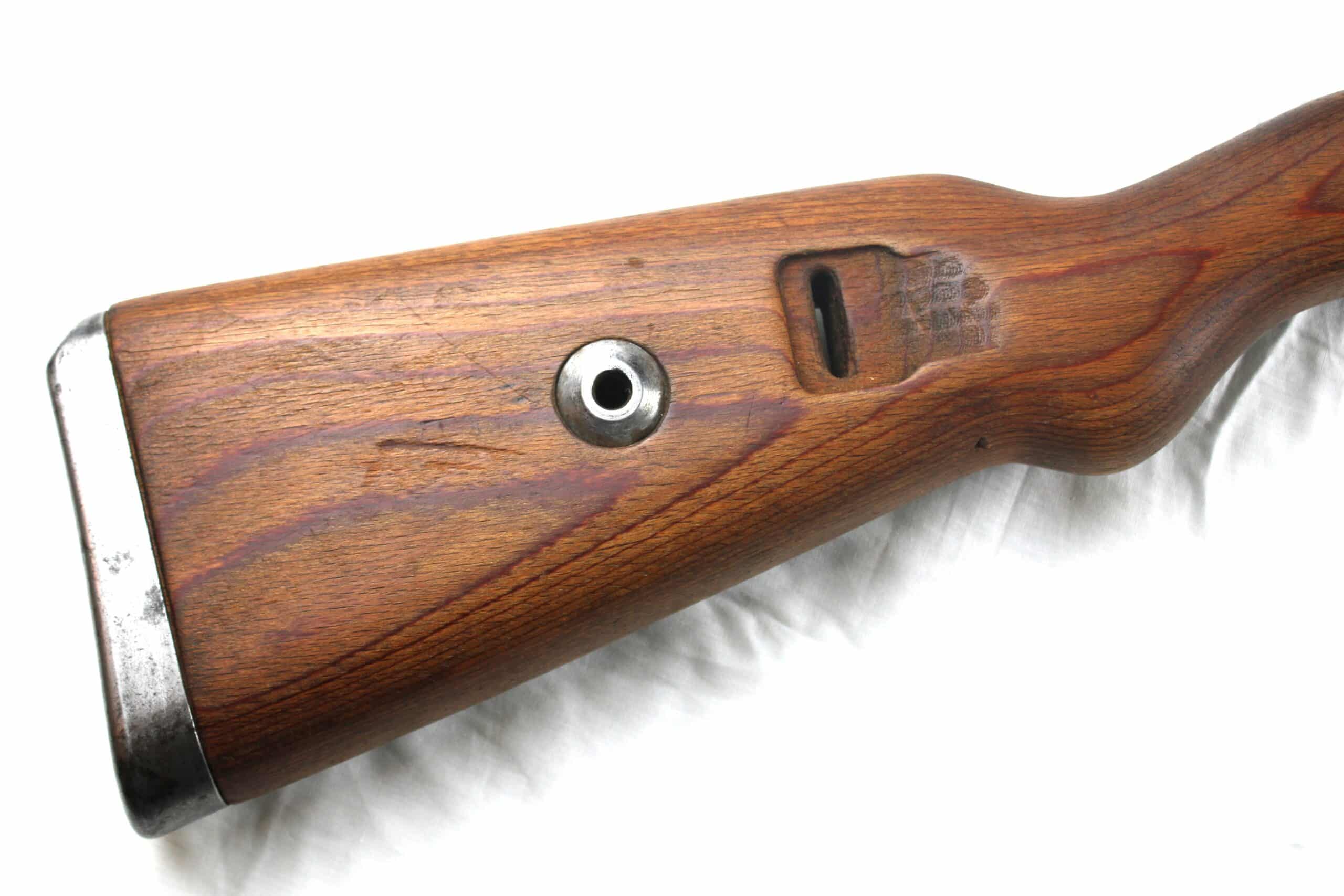 Cette crosse parfaitement originale de mauser 98K avec la découpe spécifique du bois sur le coté gauche pour le passage de la lunette ZF41.