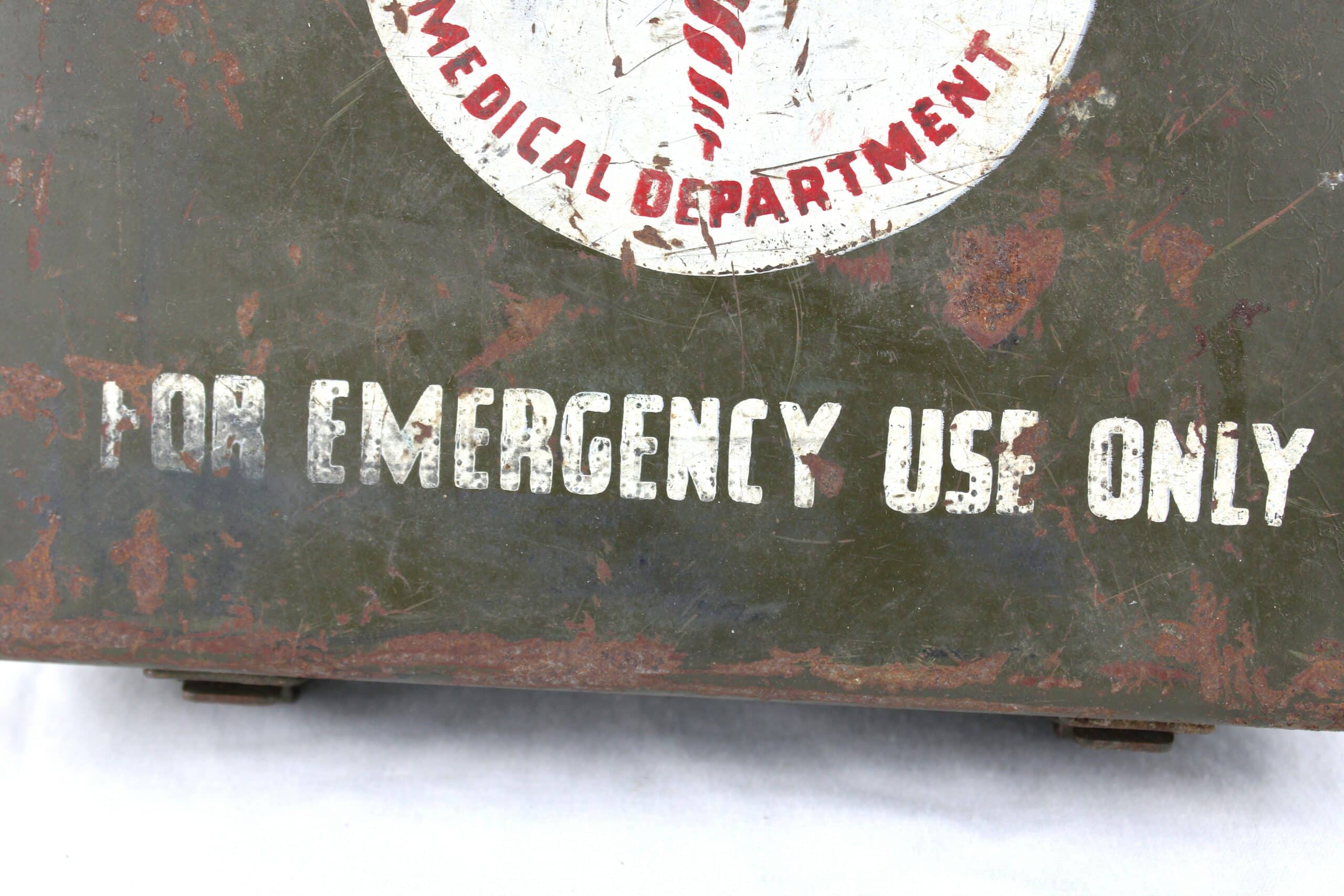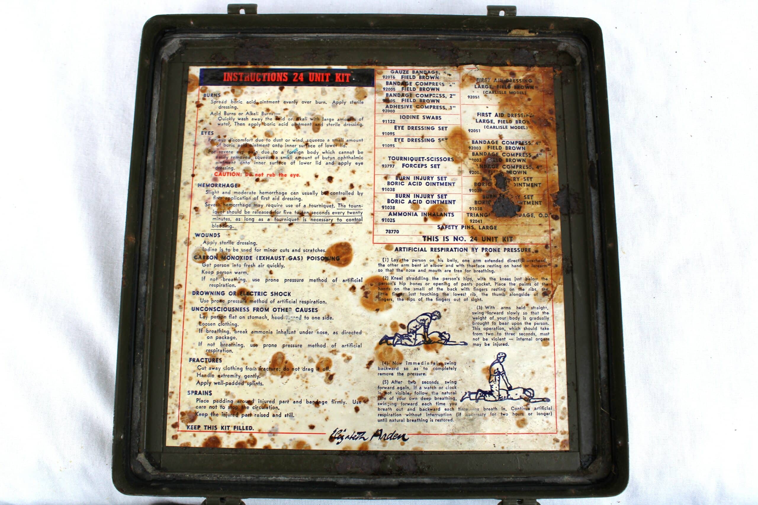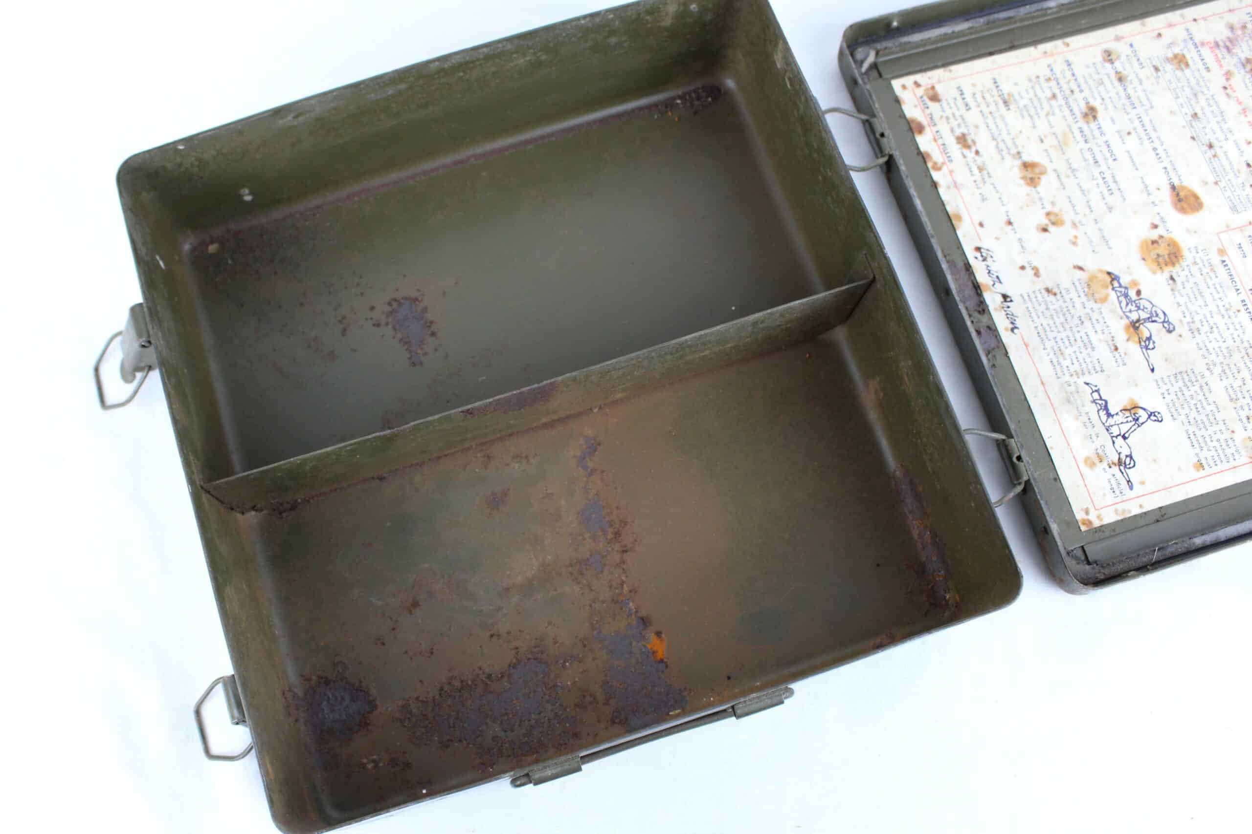 Cette caisse First Aid du 1er type est de fabrication 42-43 , en usage dans les Véhicules, y compris blindés et chars.