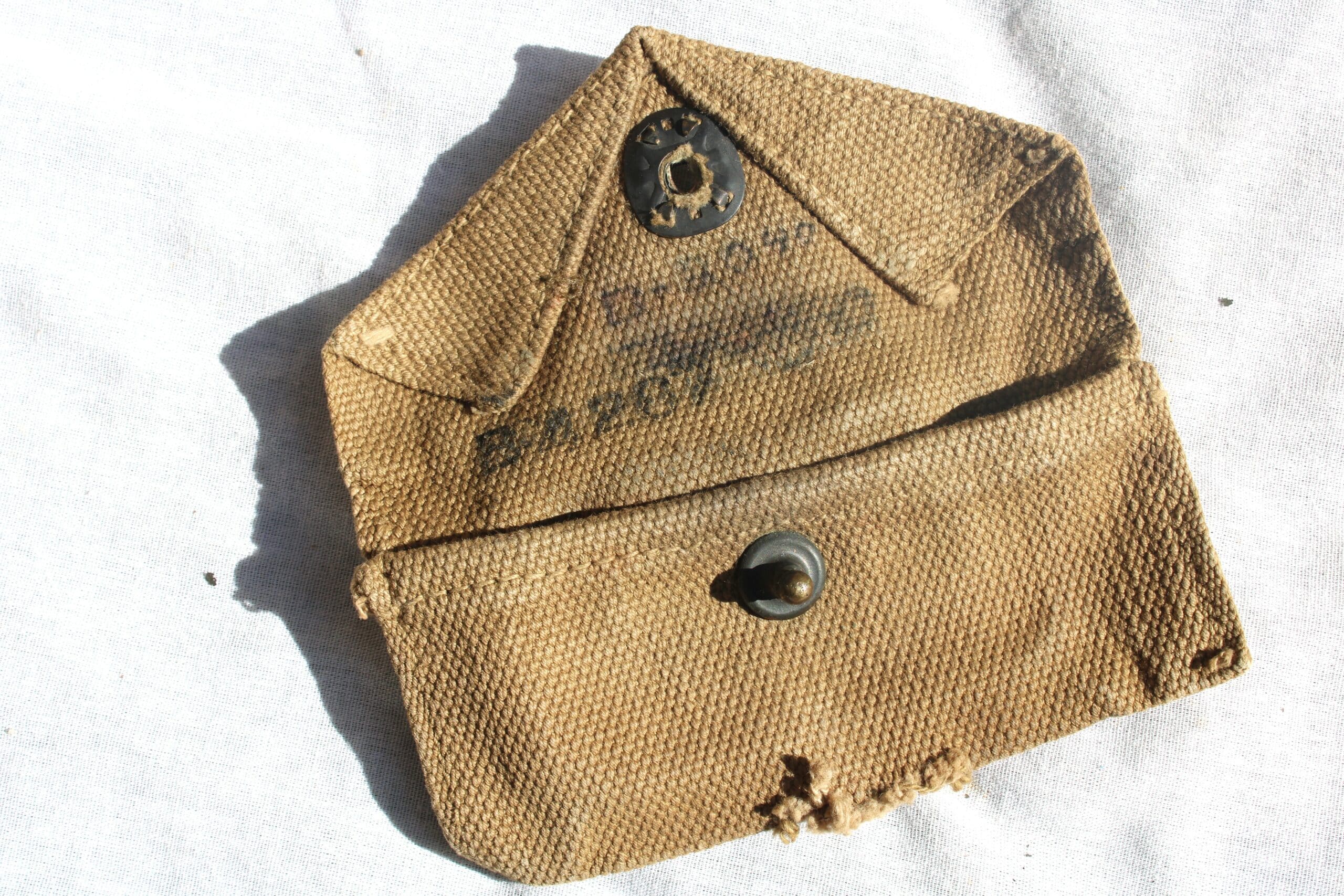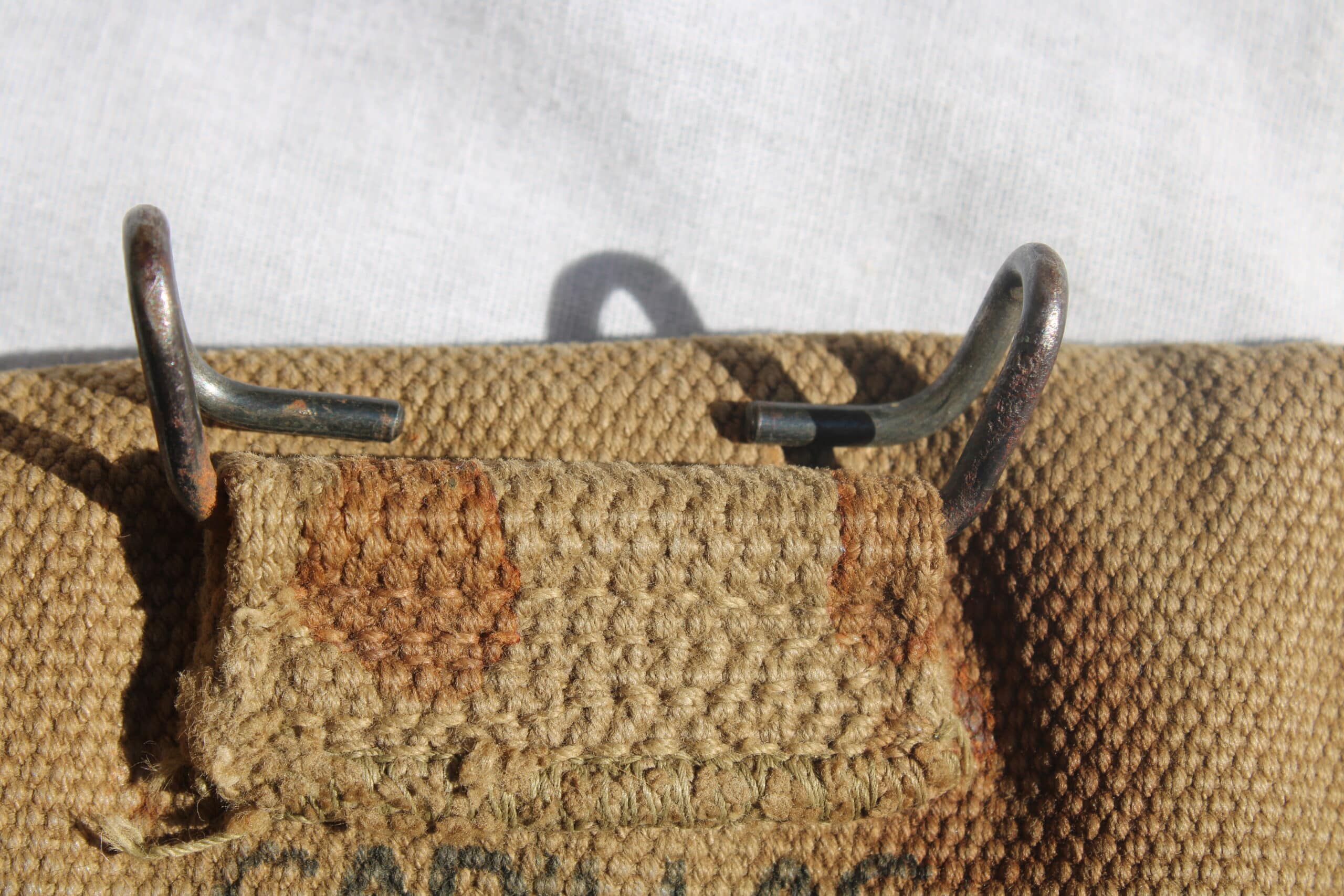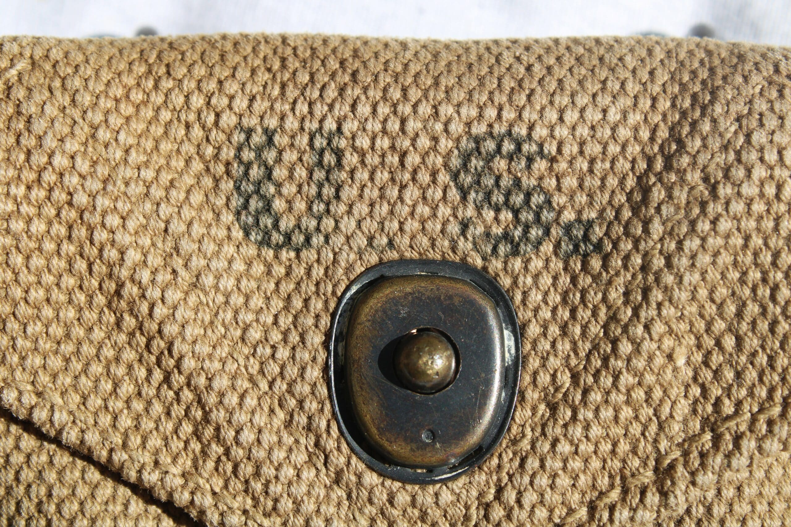 fermeture en bon état , marquage US frontal parfait, marquage fabricant à l’arrière et daté 1942, crochet de ceinturon présent, Laundry Number inscrit dans le rabat.