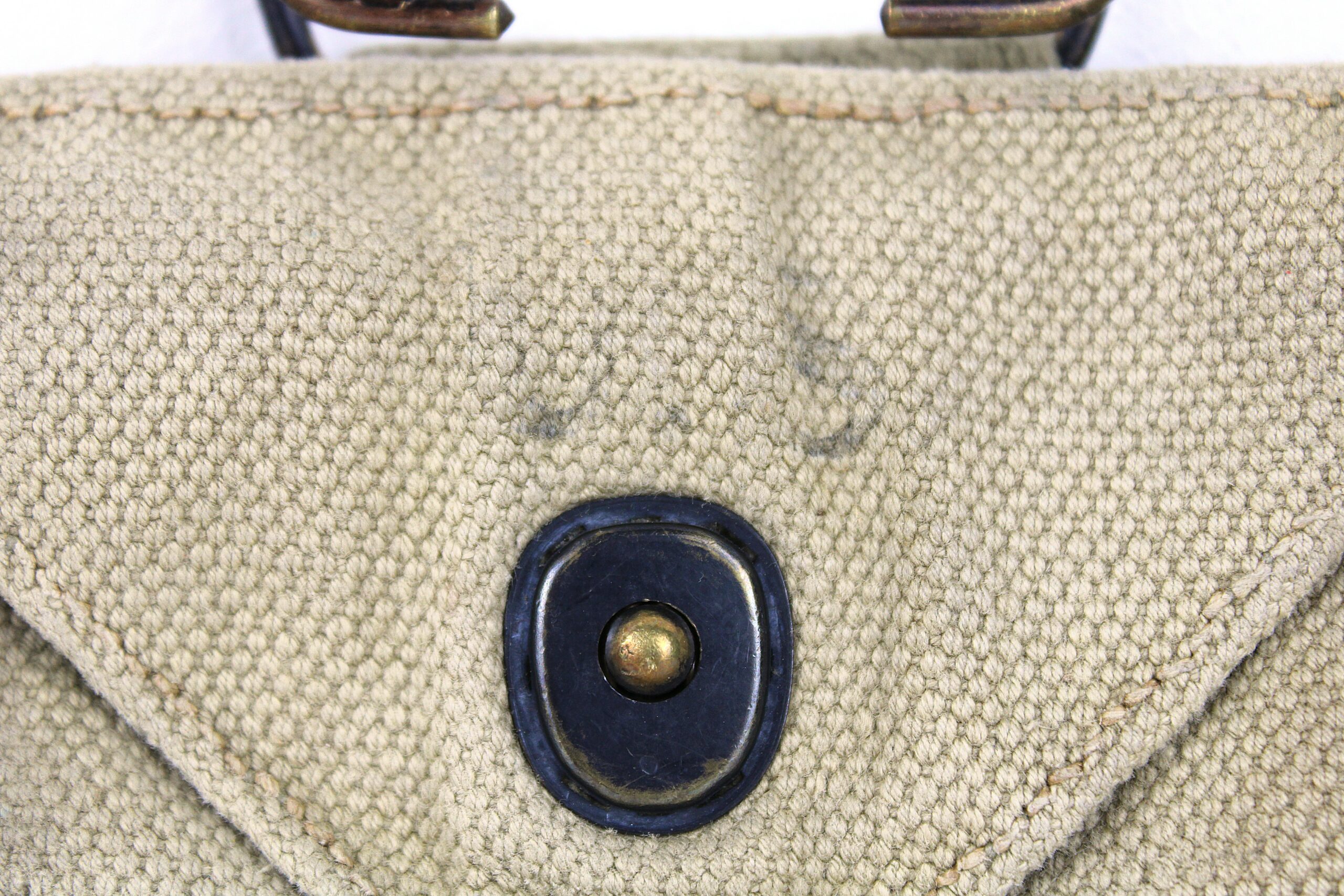 fermeture en bon état , marquage US frontal visible, marquage fabricant à l’arrière et daté 1942, crochet de ceinturon présent .