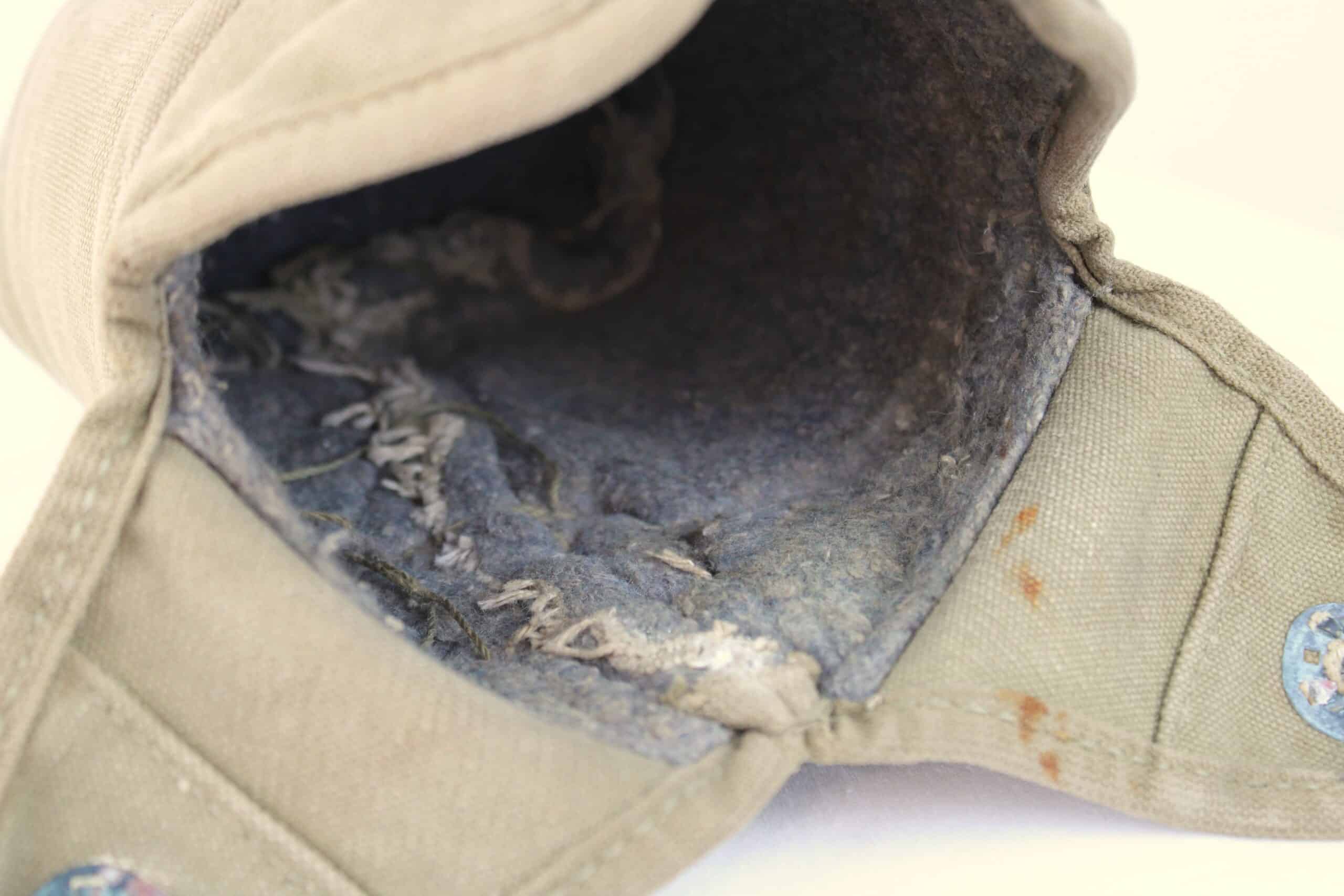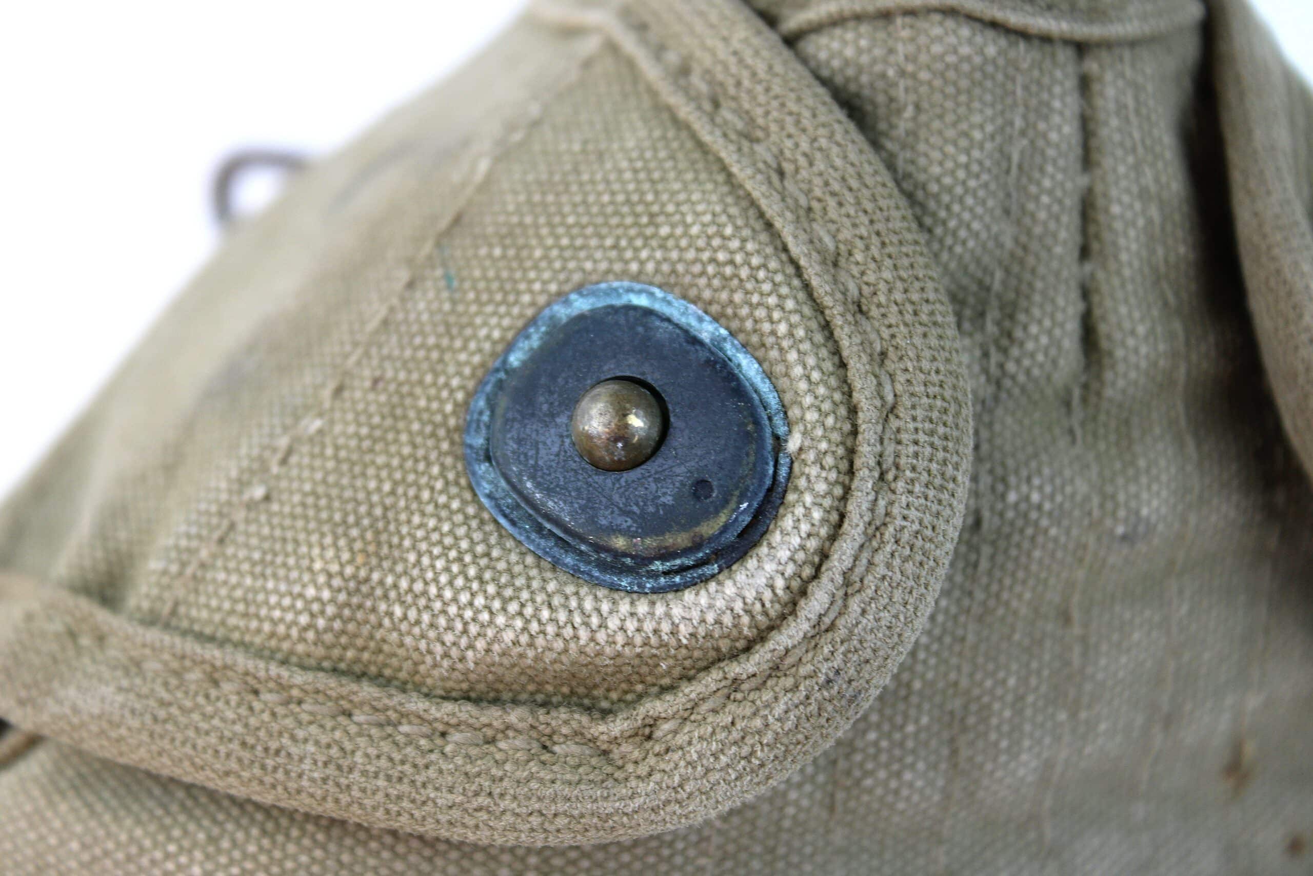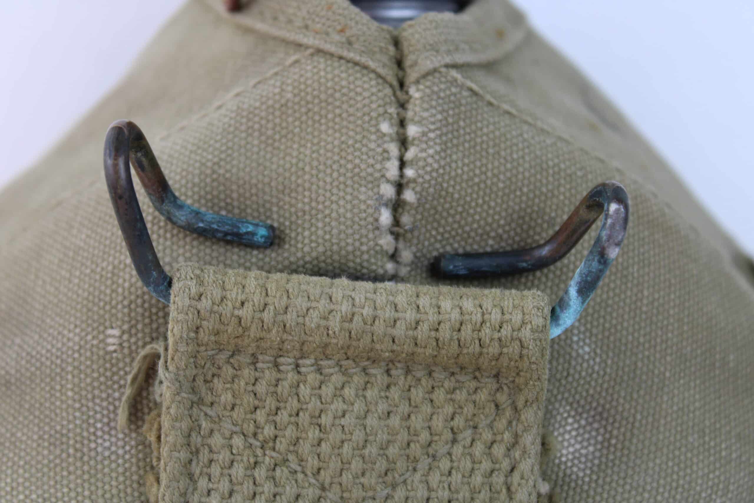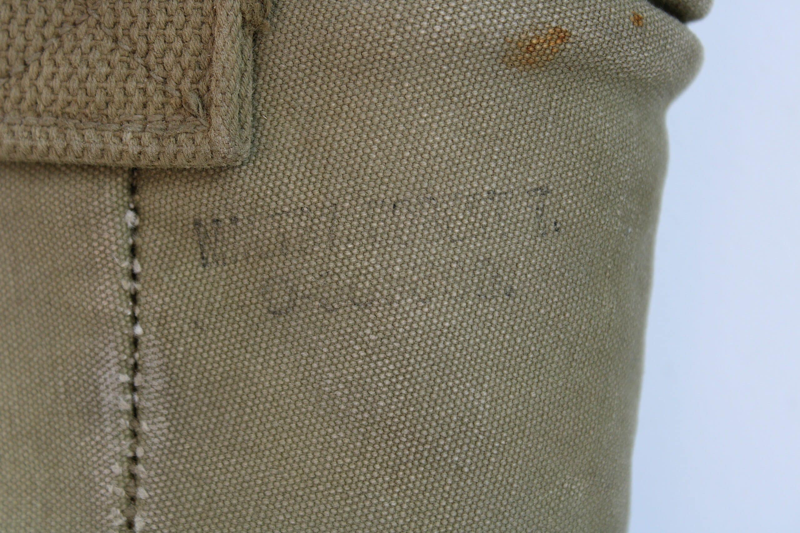 Housse en bon état bien marquée et datée 1942 , doublure en feutrine bien présente , pressions fonctionnelles mais une se sépare de la toile, semble sans gravité dans l’immédiat; crochet présent ,marquage US invisible