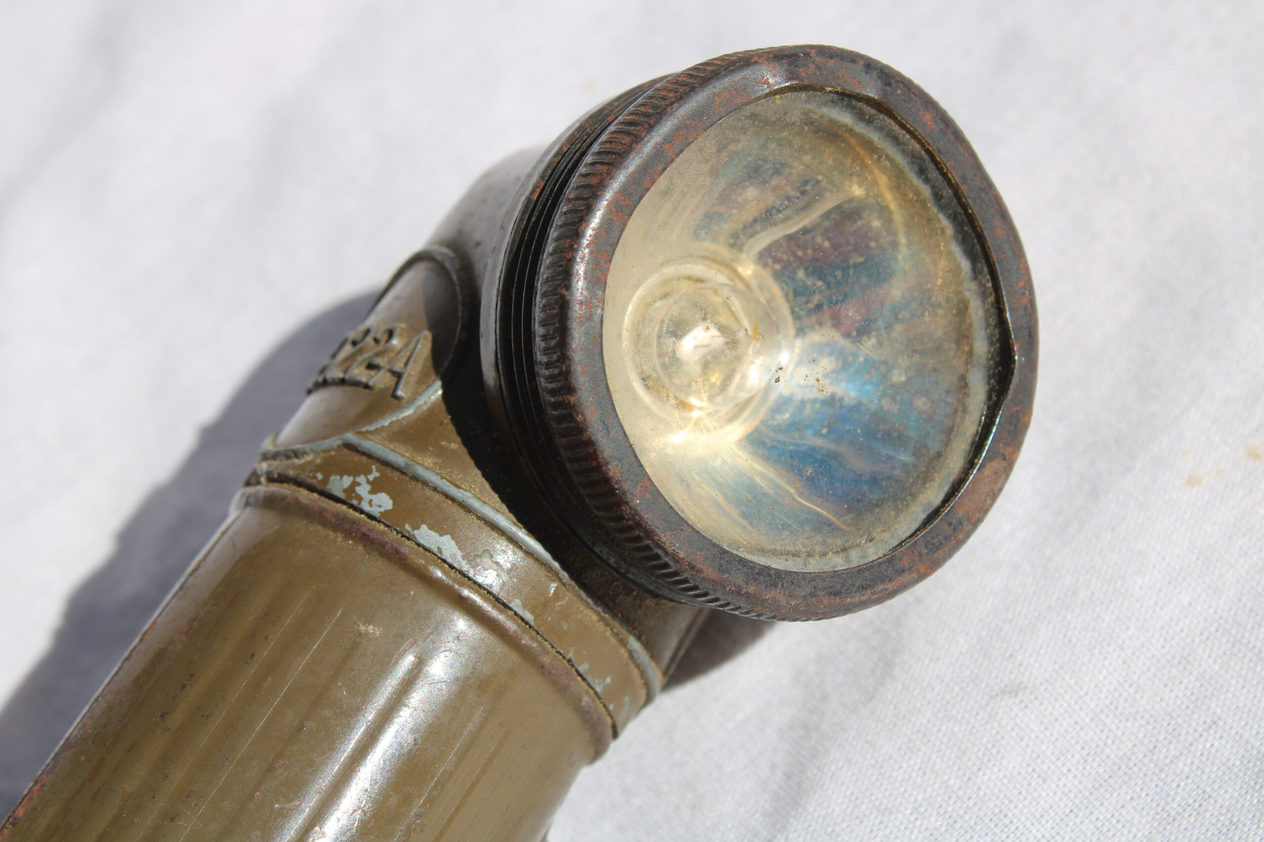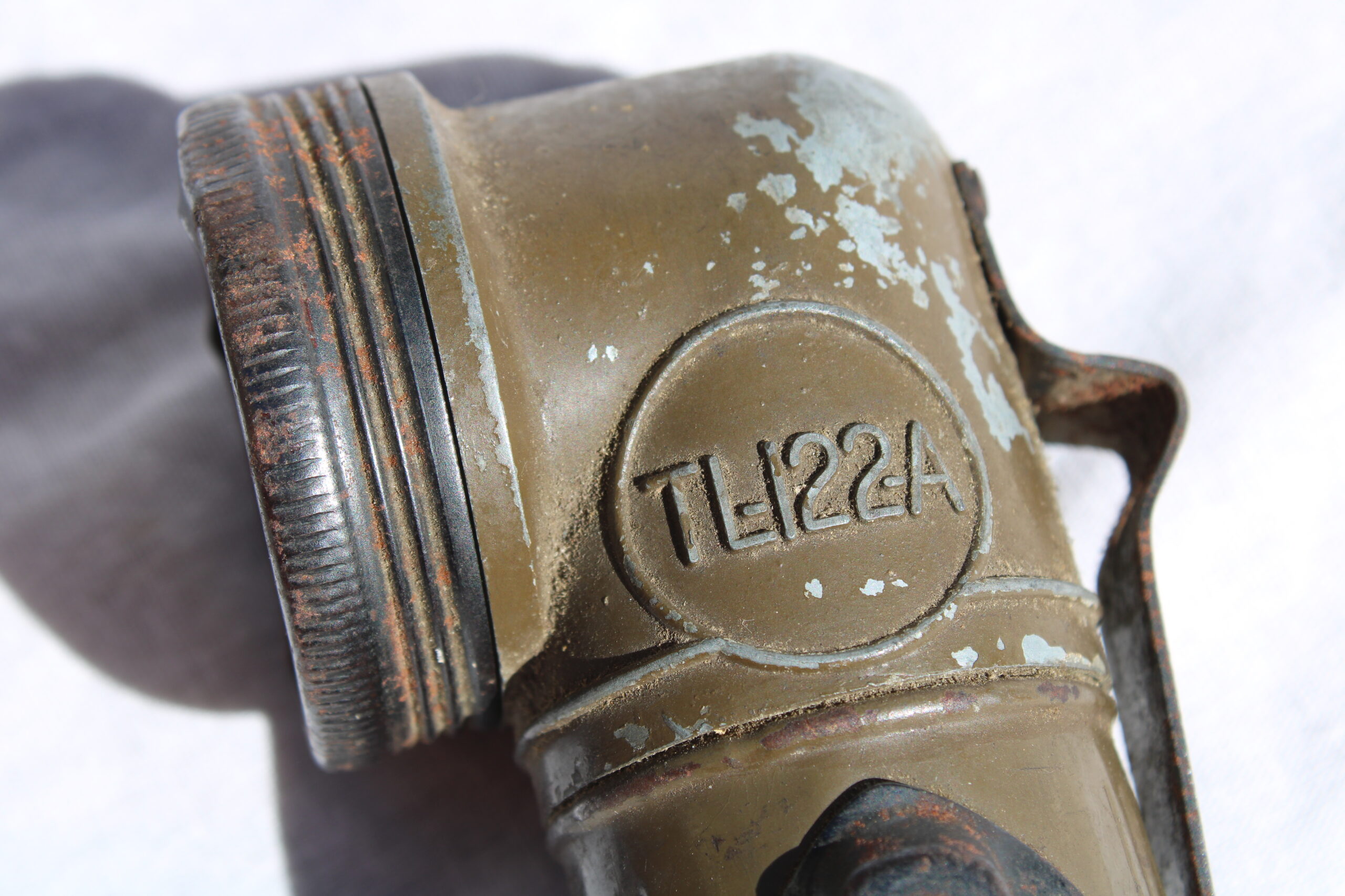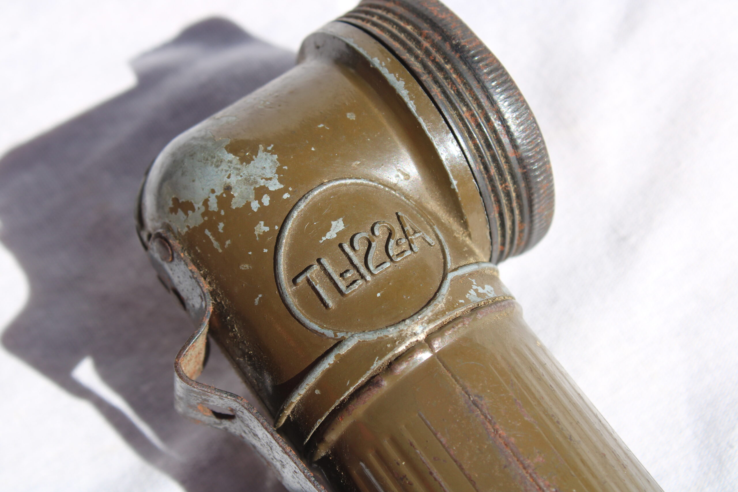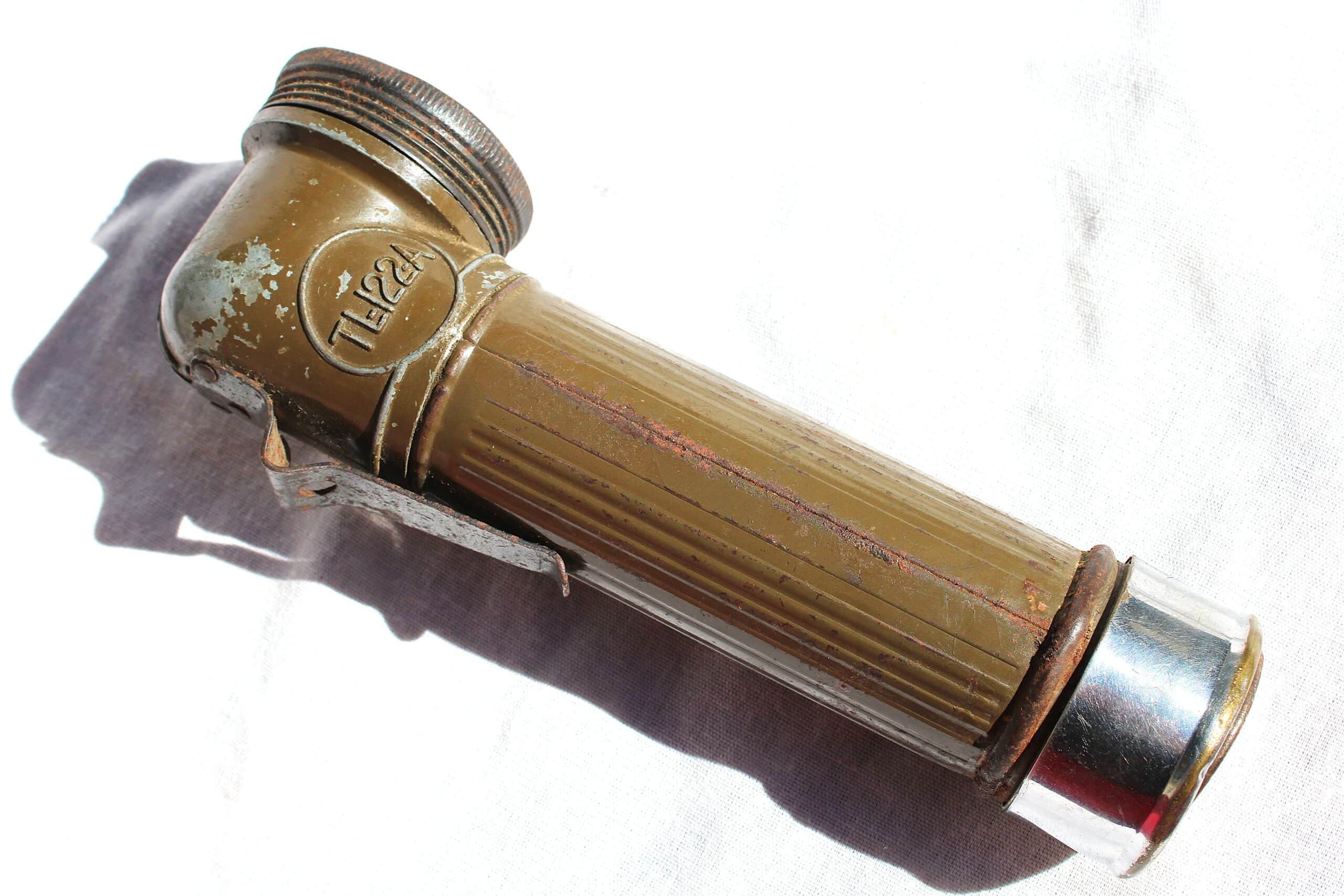 Bonne lampe précoce TL-122-A de la marque « Swivel-Head », les modèles 122-A sont fabriquées avant septembre 1943 donc en usage dans l’US Army sur tout les théâtres d’opération.