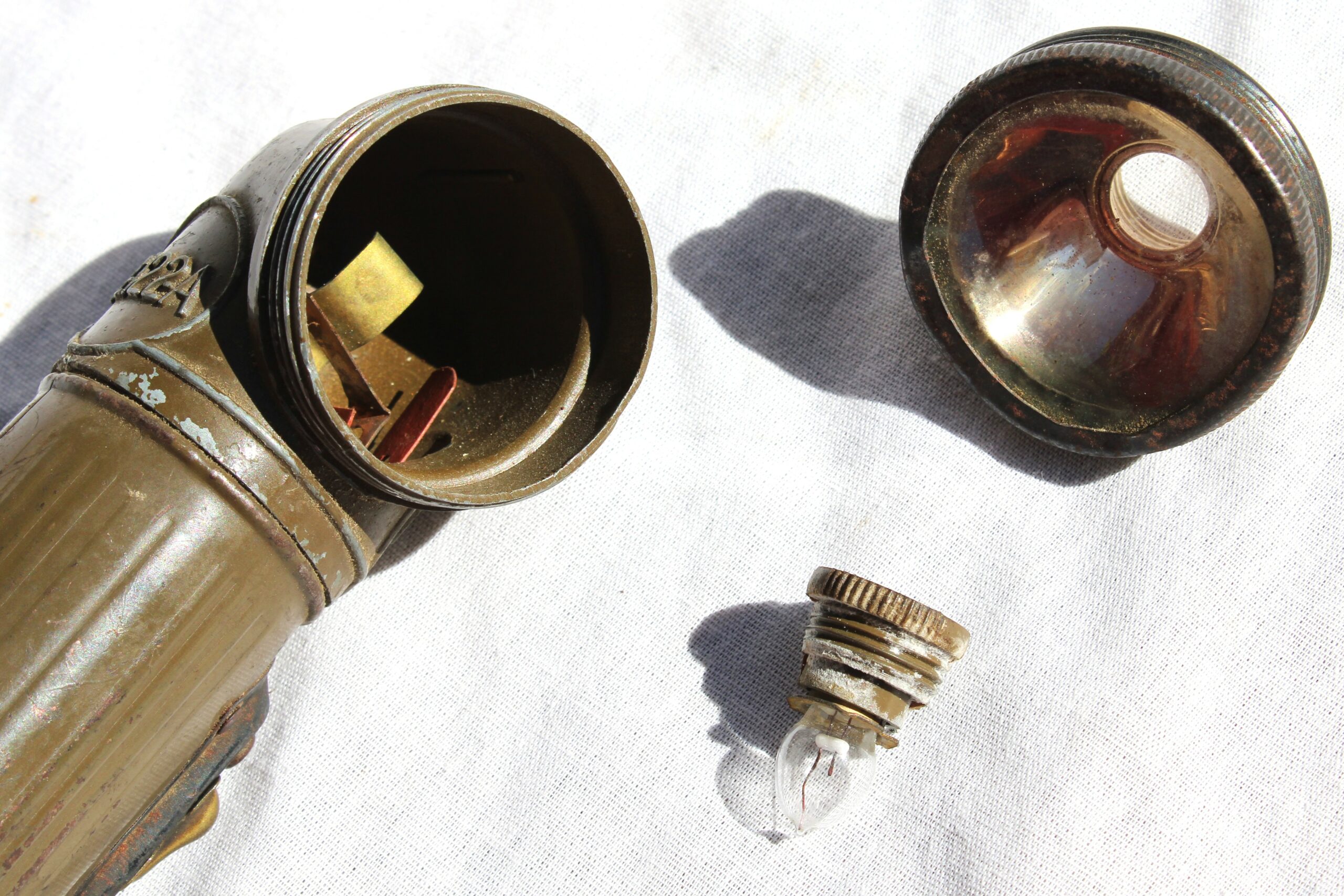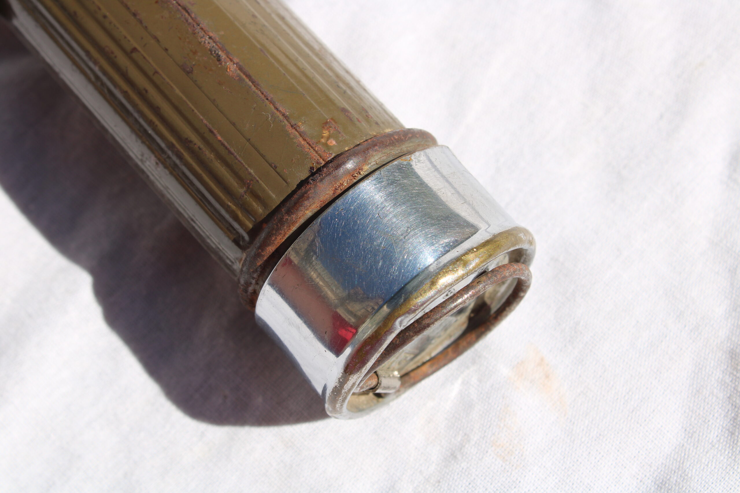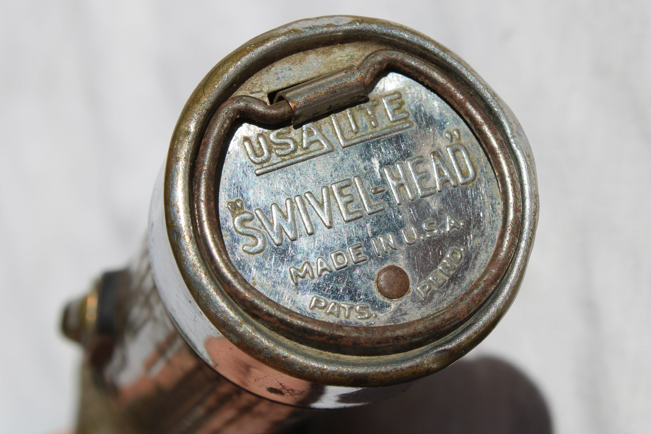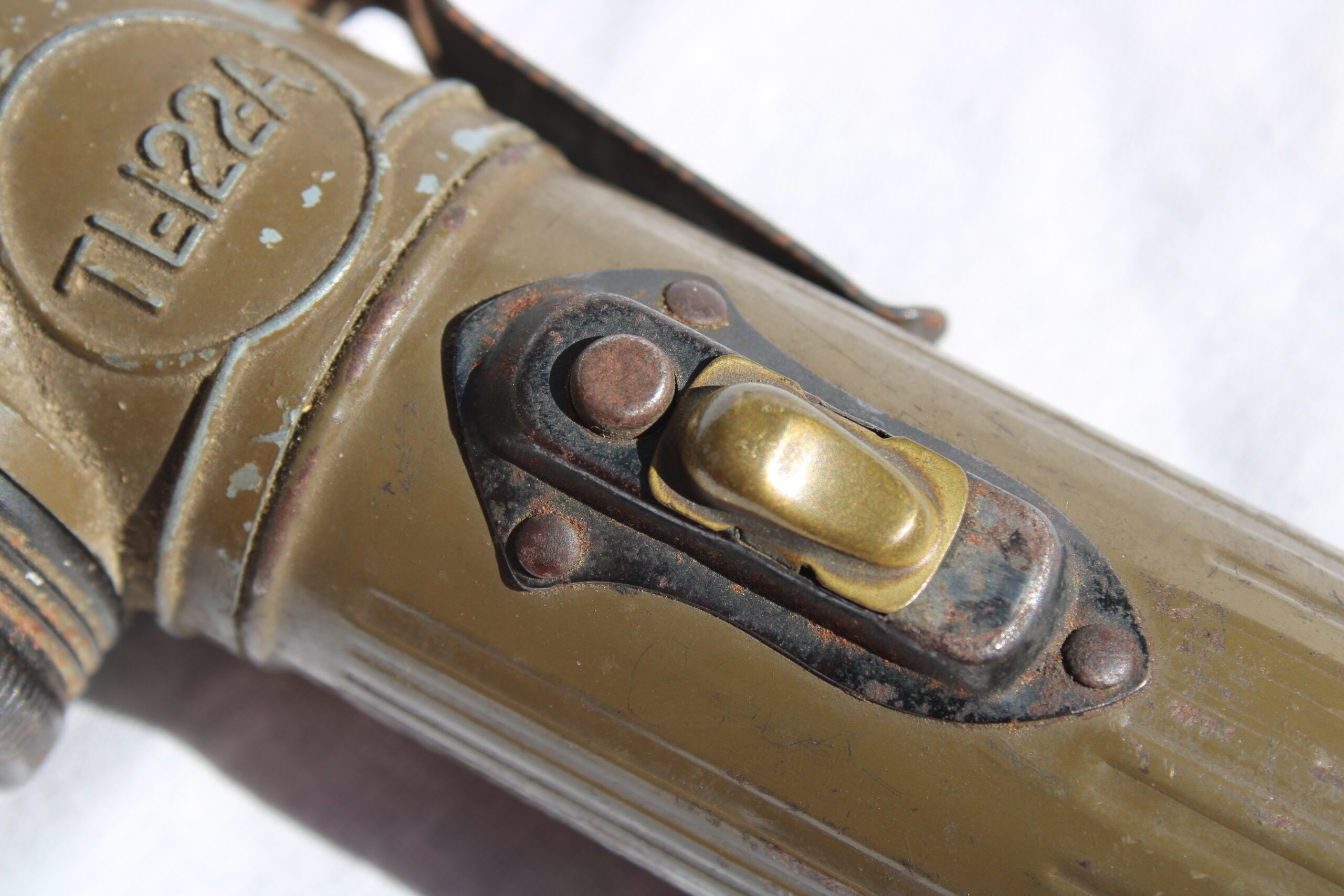 Bonne lampe précoce TL-122-A de la marque « Swivel-Head », les modèles 122-A sont fabriquées avant septembre 1943 donc en usage dans l’US Army sur tout les théâtres d’opération.