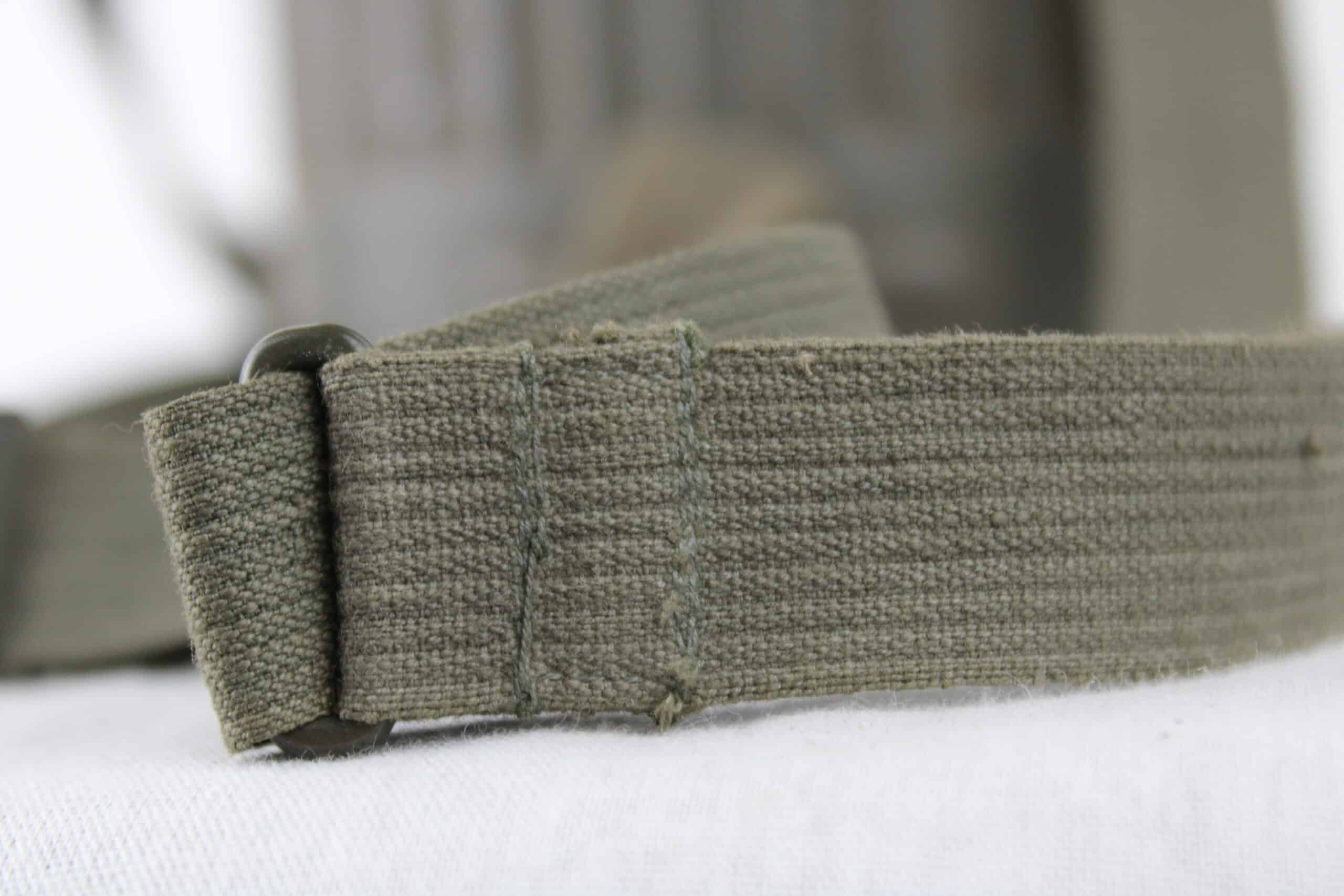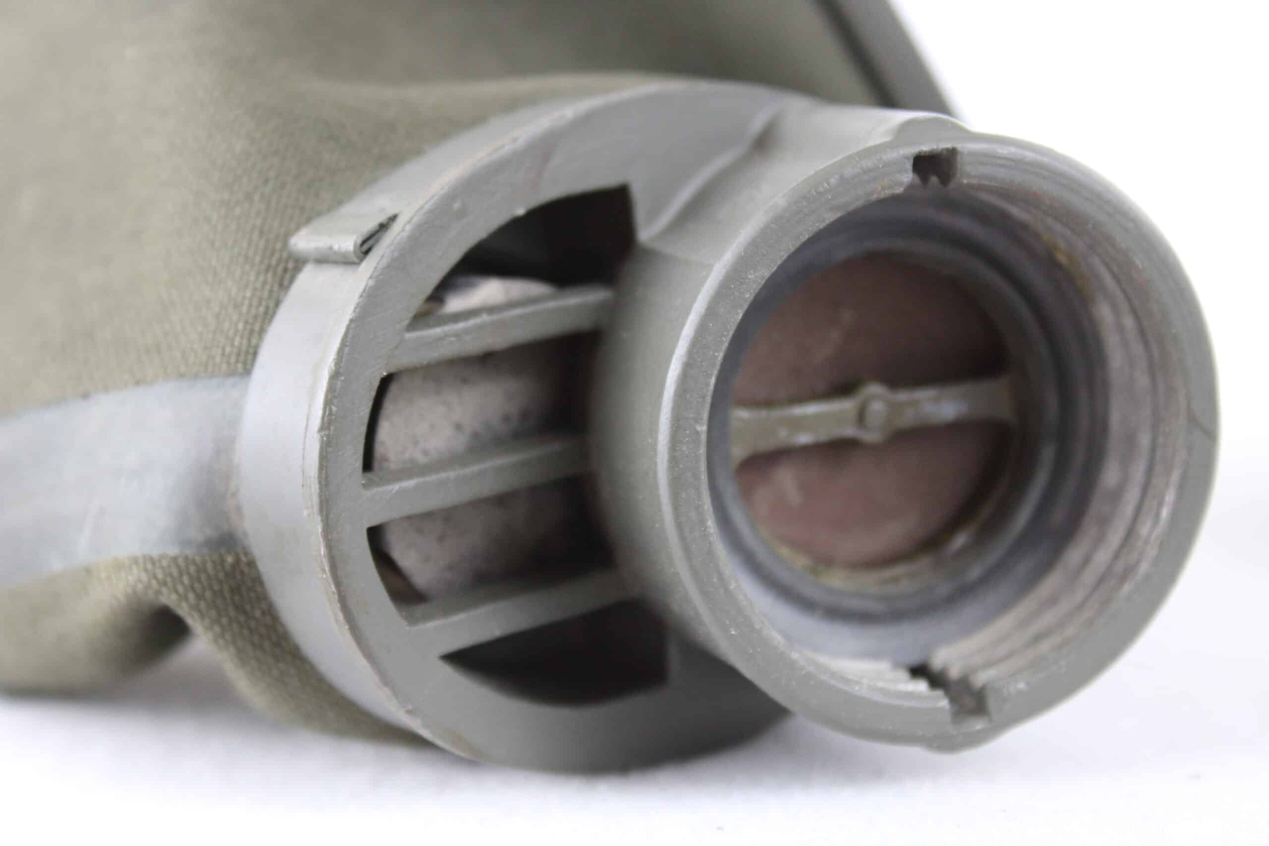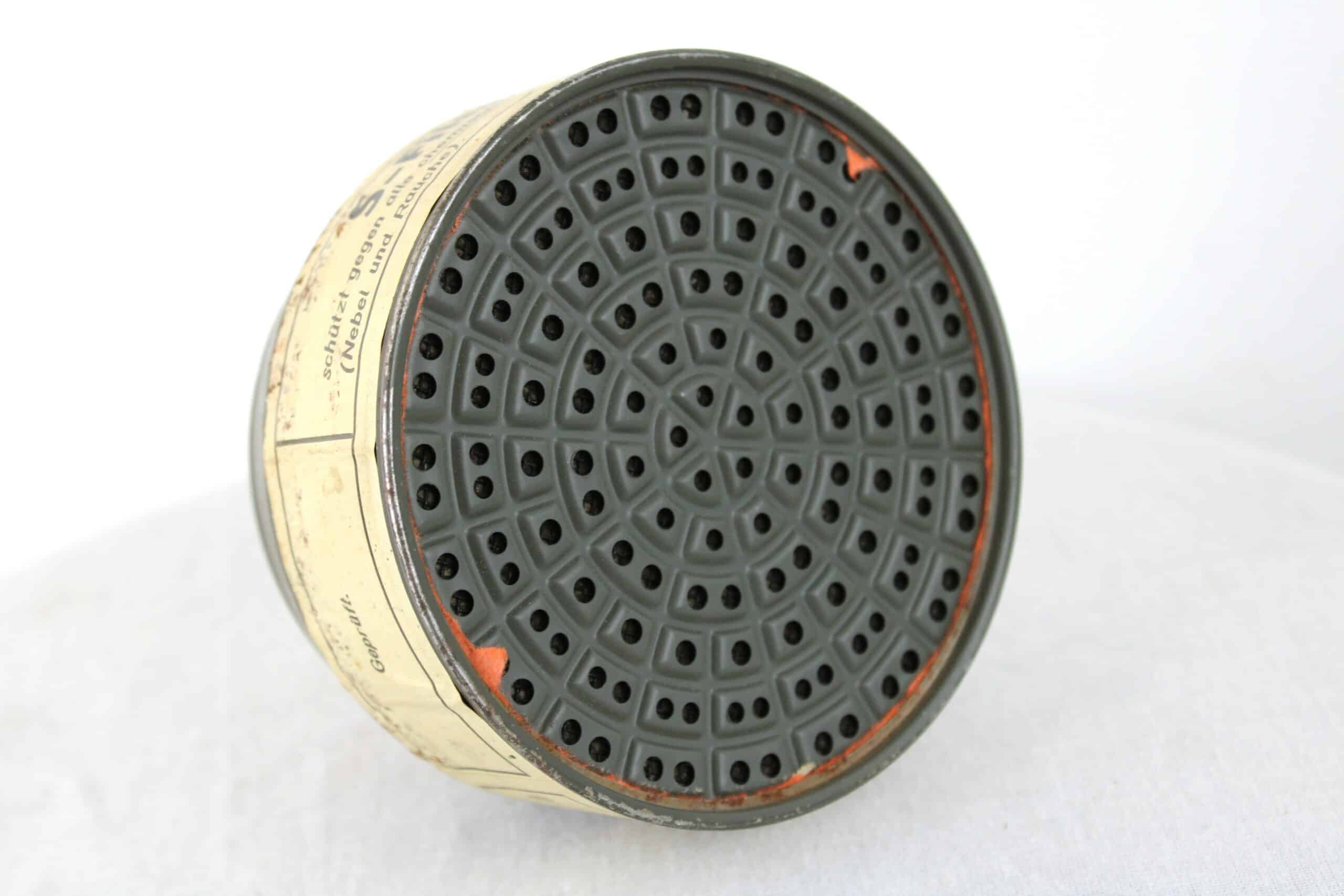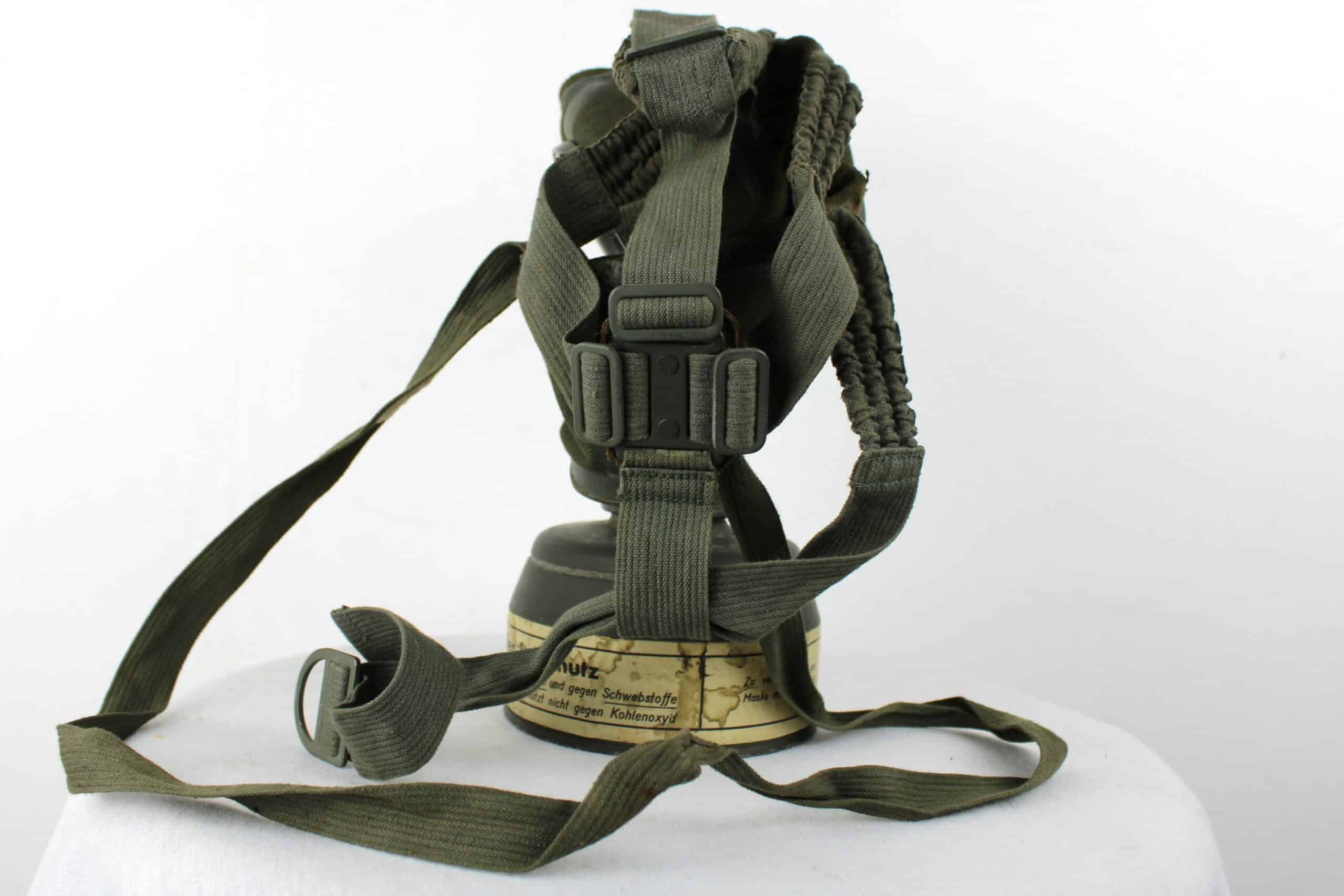 Boitier typique avec fermeture à levier, sangle longue cousue d’origine, sangle courte avec crochet bien présente et en parfait état. Le masque est un modèle combat de la heer de taille 2, bien marqué et daté de 1938 avec ses WaffenAmt; dans son rabat frontal se trouve un tampon de réception de la Luftschutz. La cartouche est dans un état similaire avec son papier encore présent dans son intégralité.