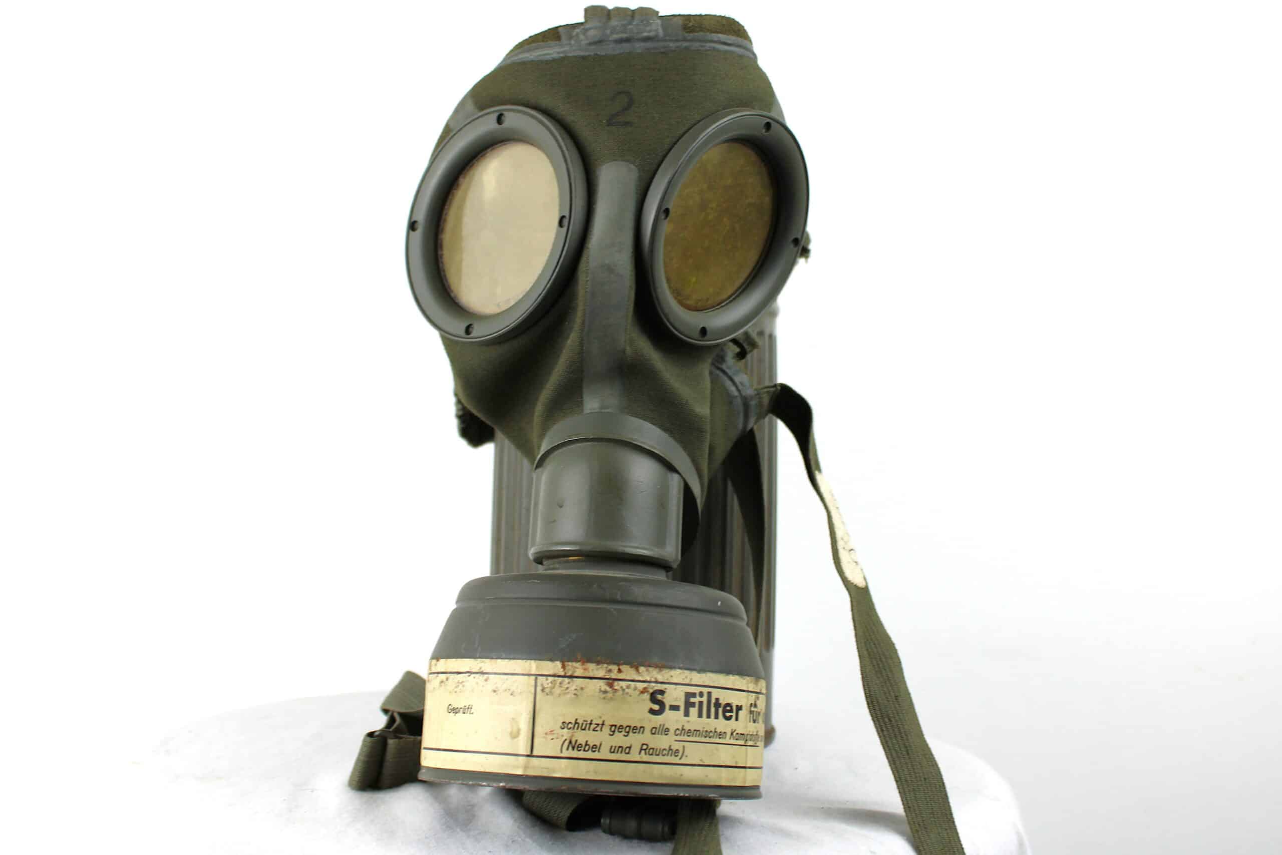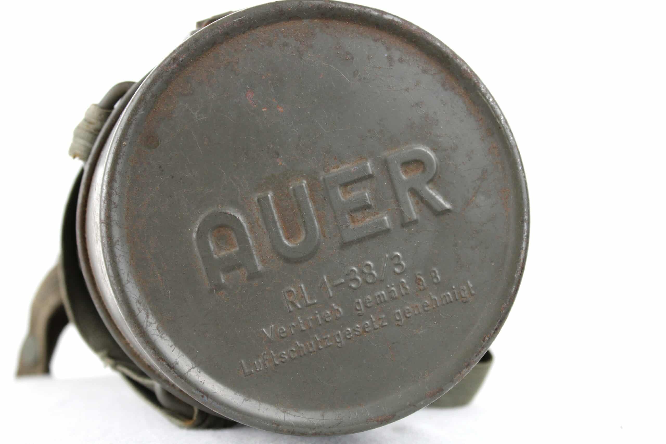 Masque anti-gaz complet, fabrication AUER destiné à la Luftschutz, l’ensemble est dans un état quasi parfait.