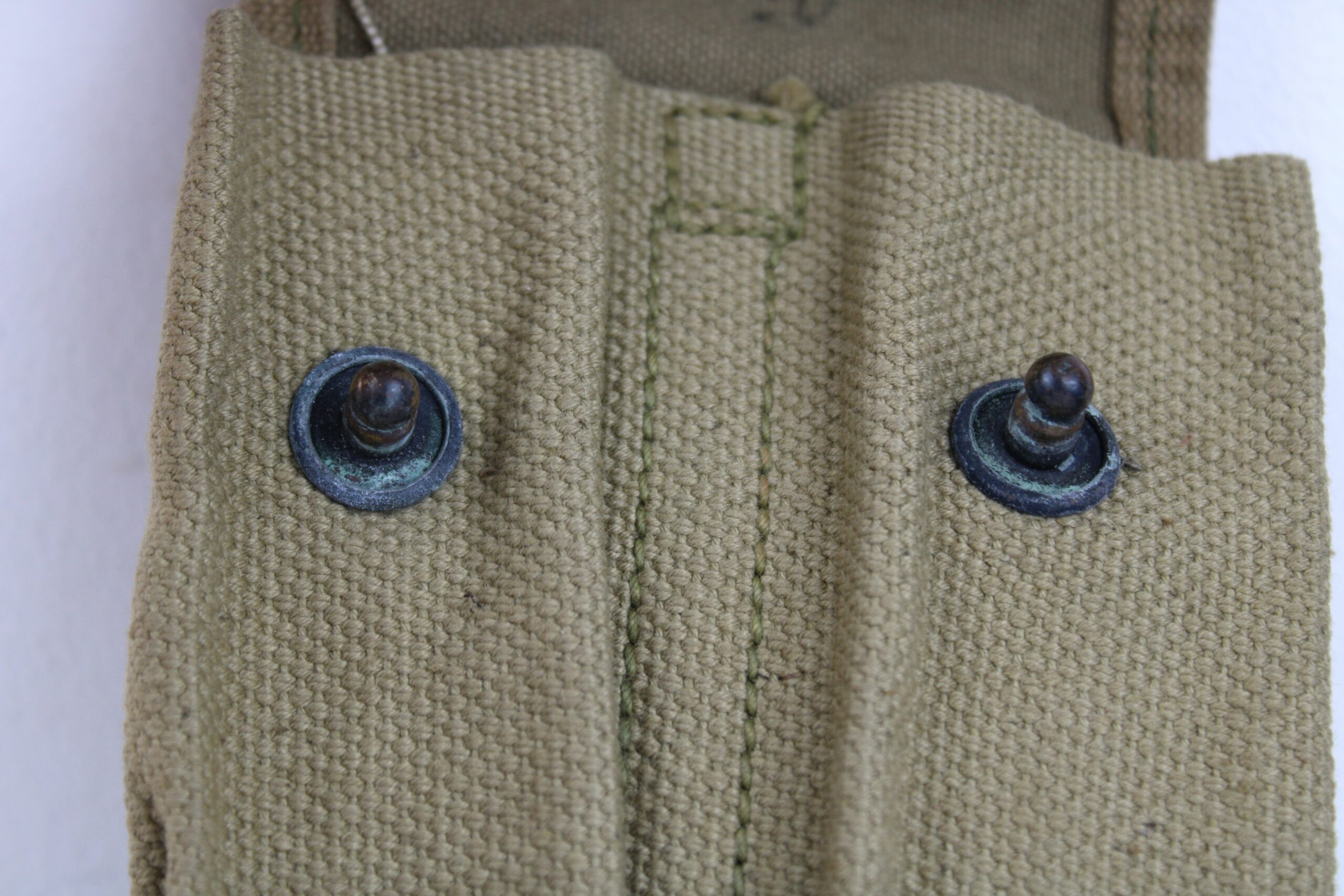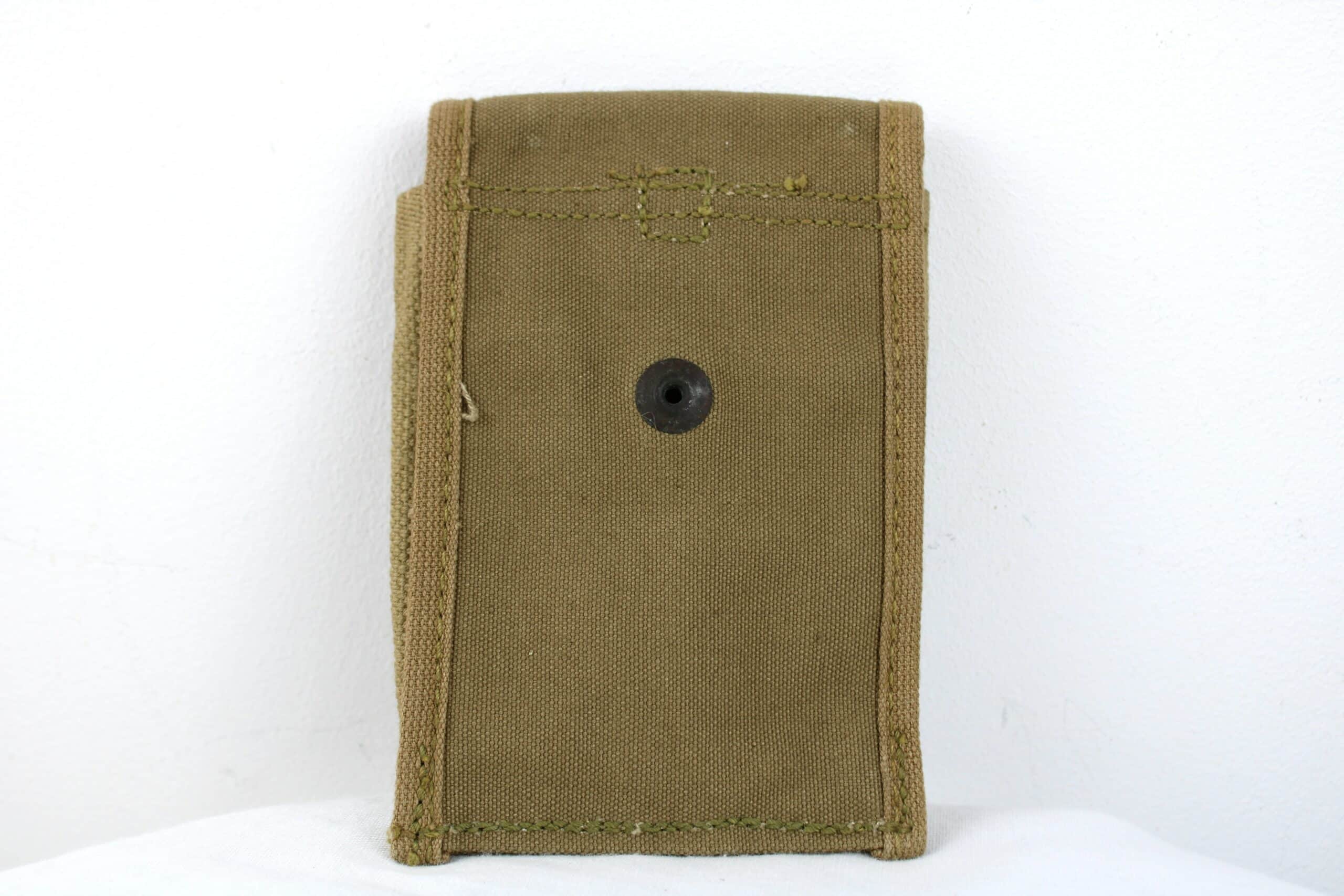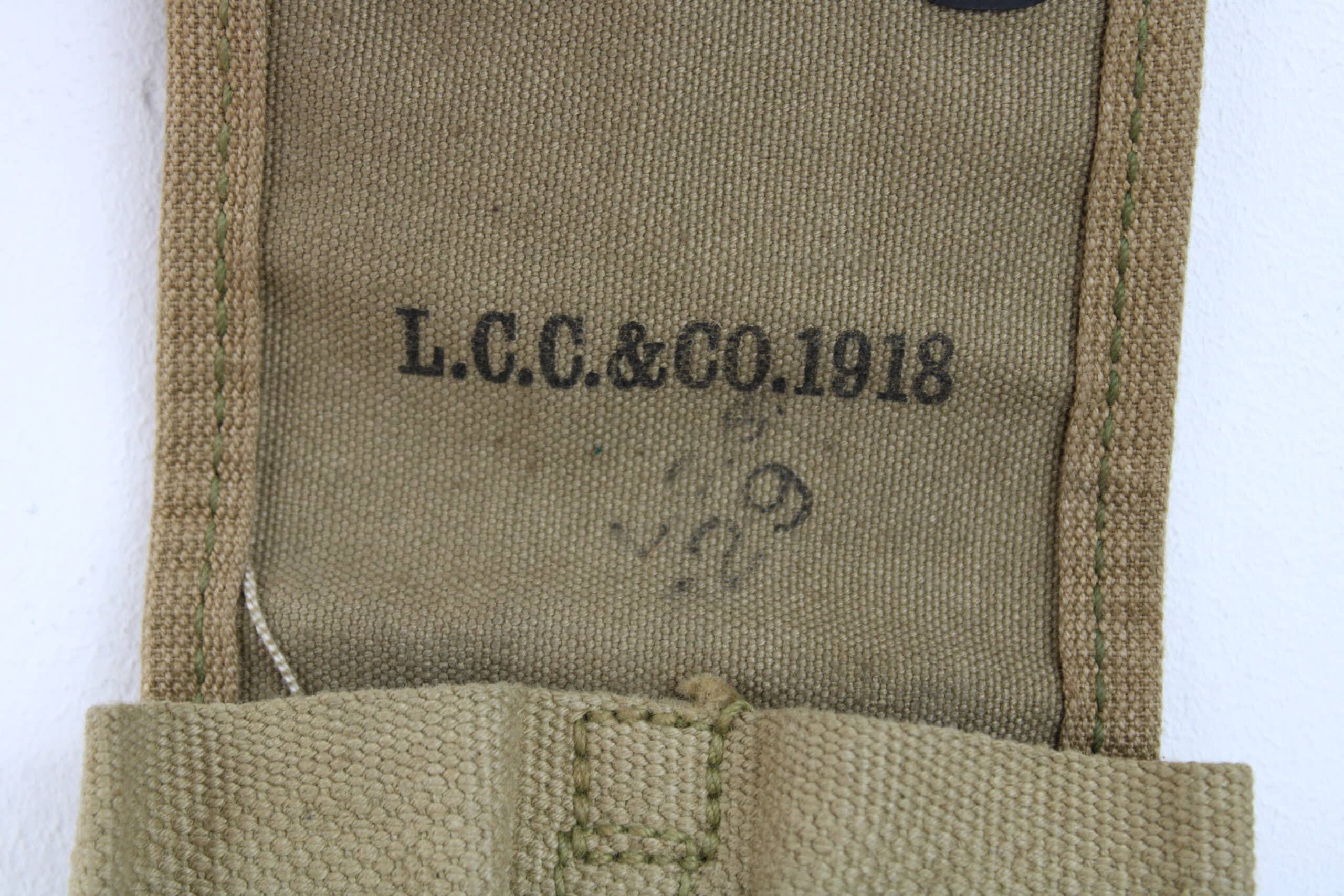 Pouch prévu pour le transport de deux chargeurs de Colt .45 model 1911. Fabrication de 1918 en parfait état neuf de stock, les stocks seront largement utilisés durant la seconde guerre comme en témoigne de nombreuses photos.